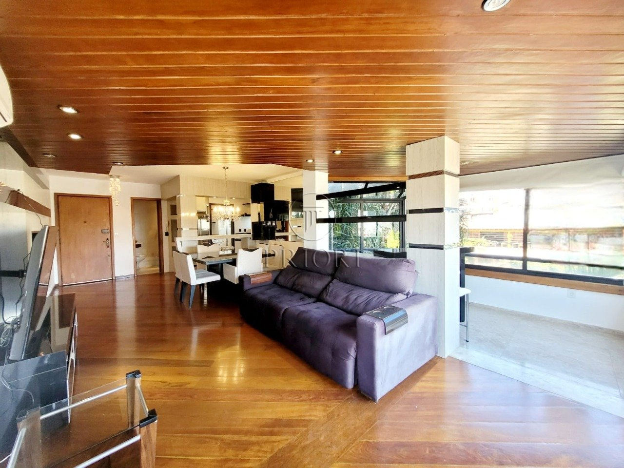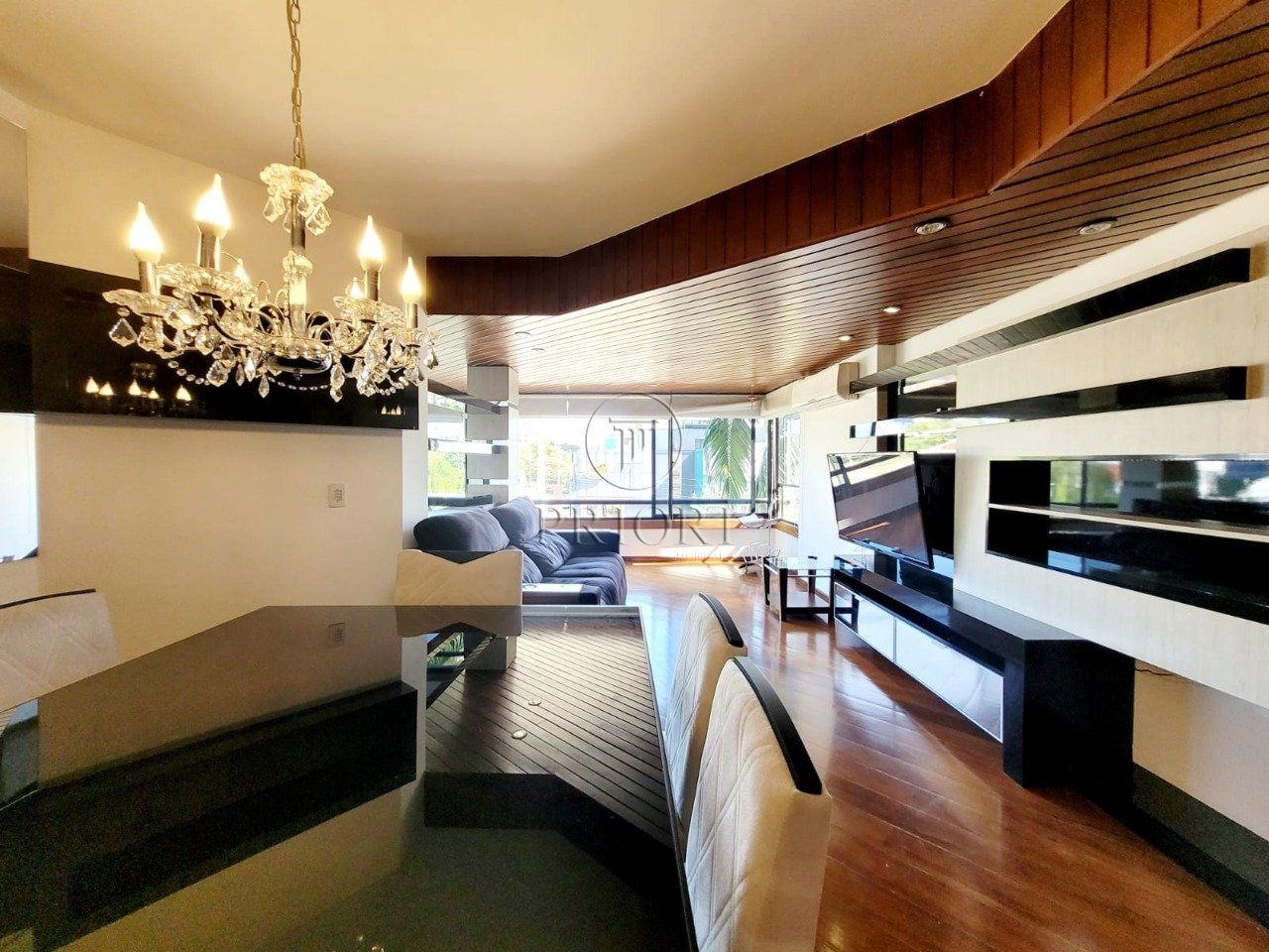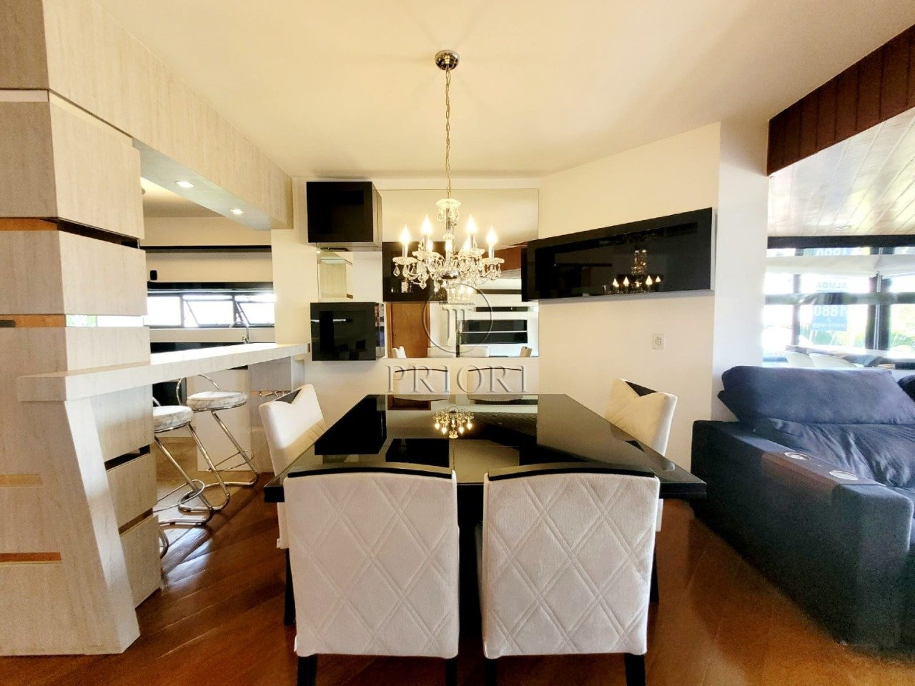 Apartamento com 112m² de área privativa, mobiliado e com uma vaga de garagem.