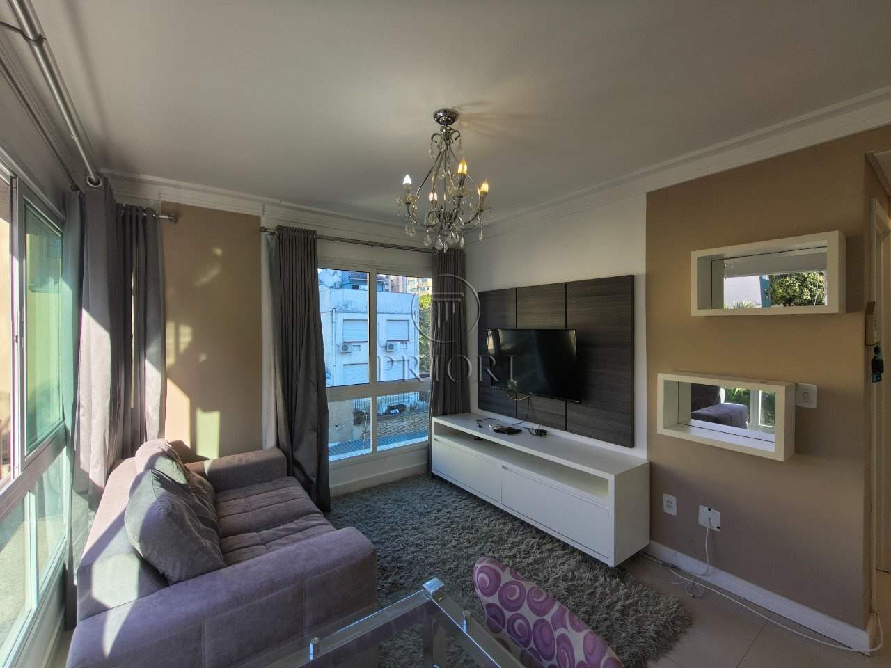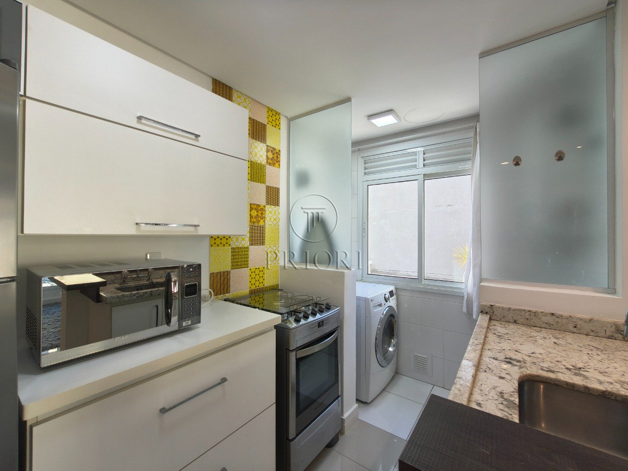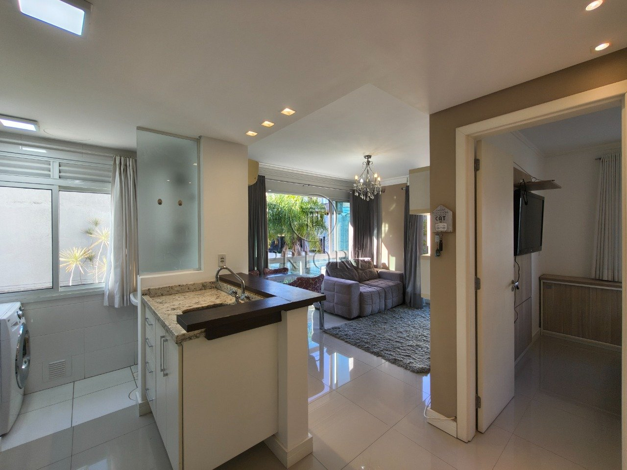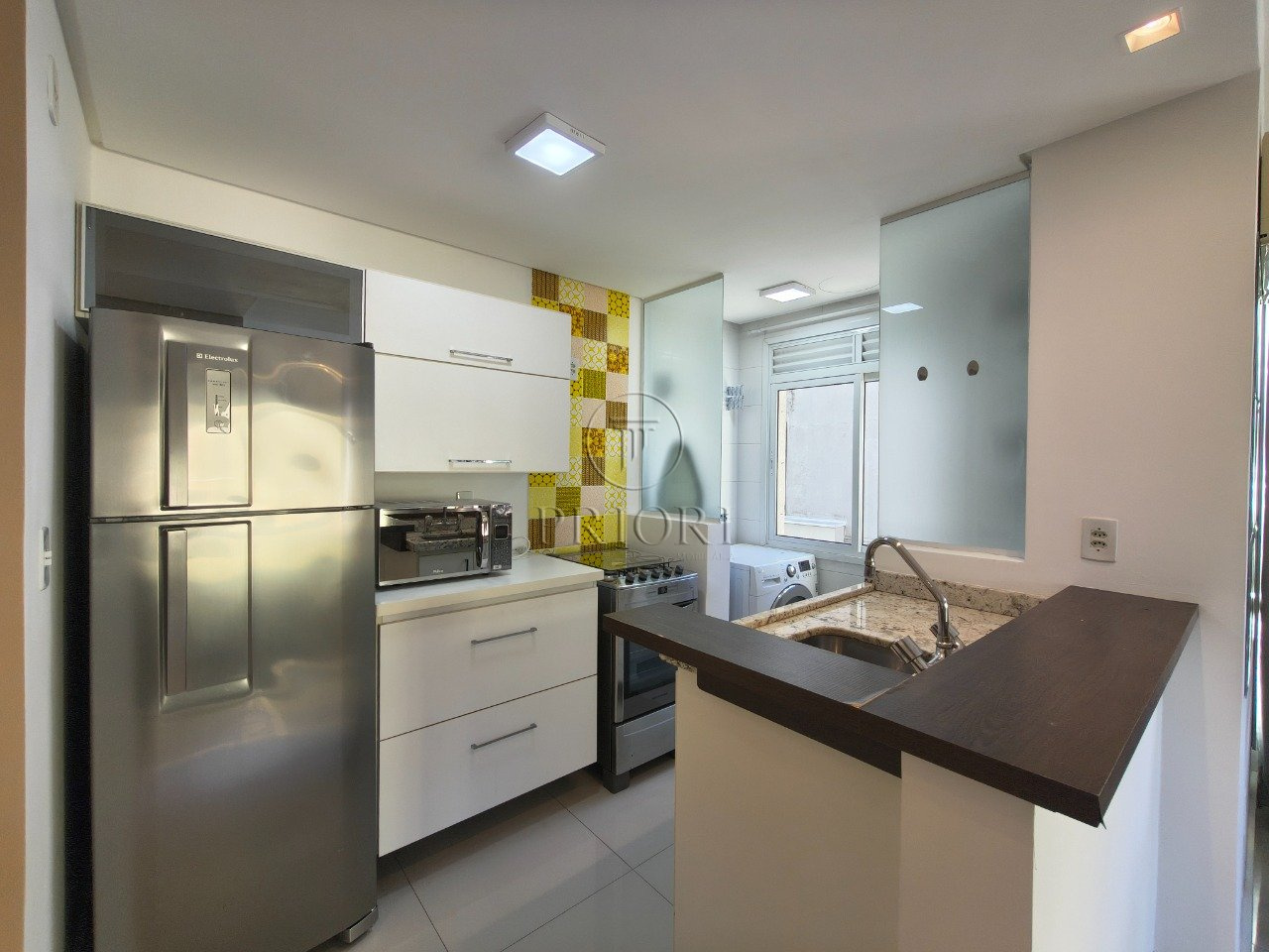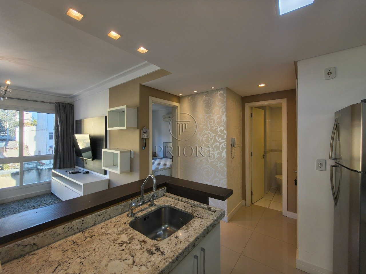 Apartamento totalmente mobiliado e decorado com 45m² de área privativa, living com dois ambientes, cozinha integrada com área de serviço, banheiro social com aquecedor a gás, dormitório planejada e uma vaga de garagem coberta.