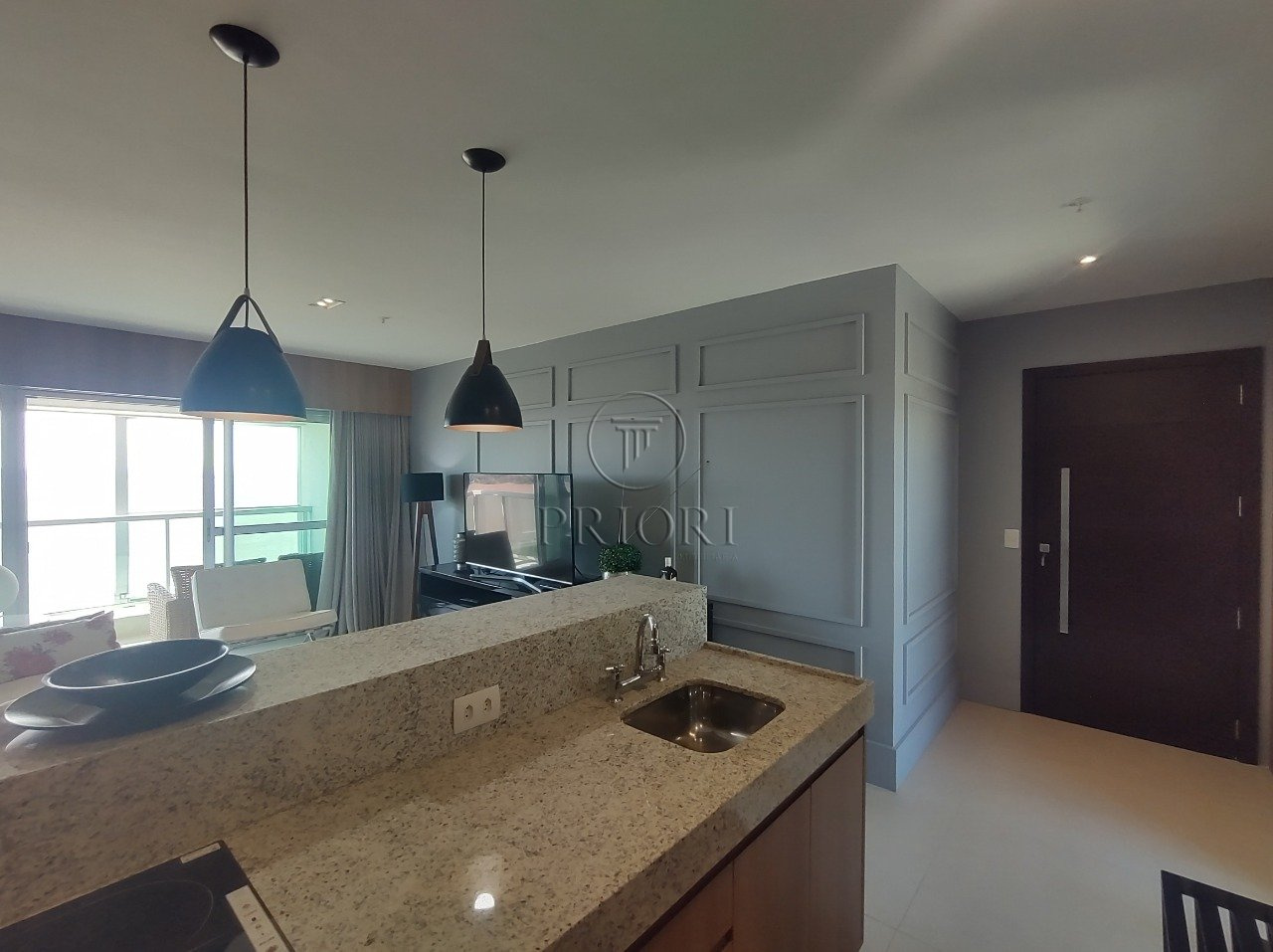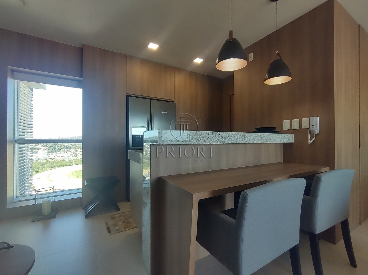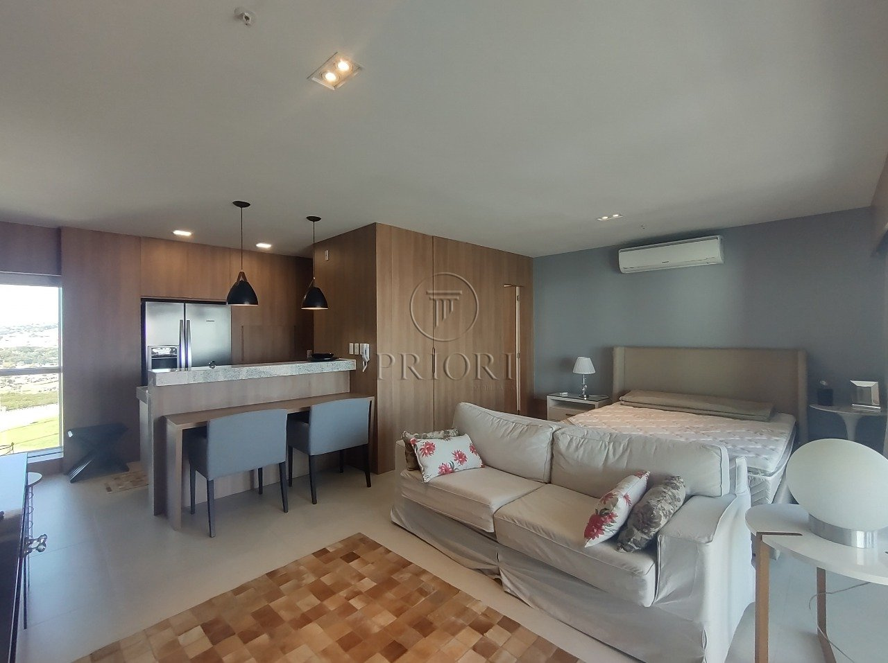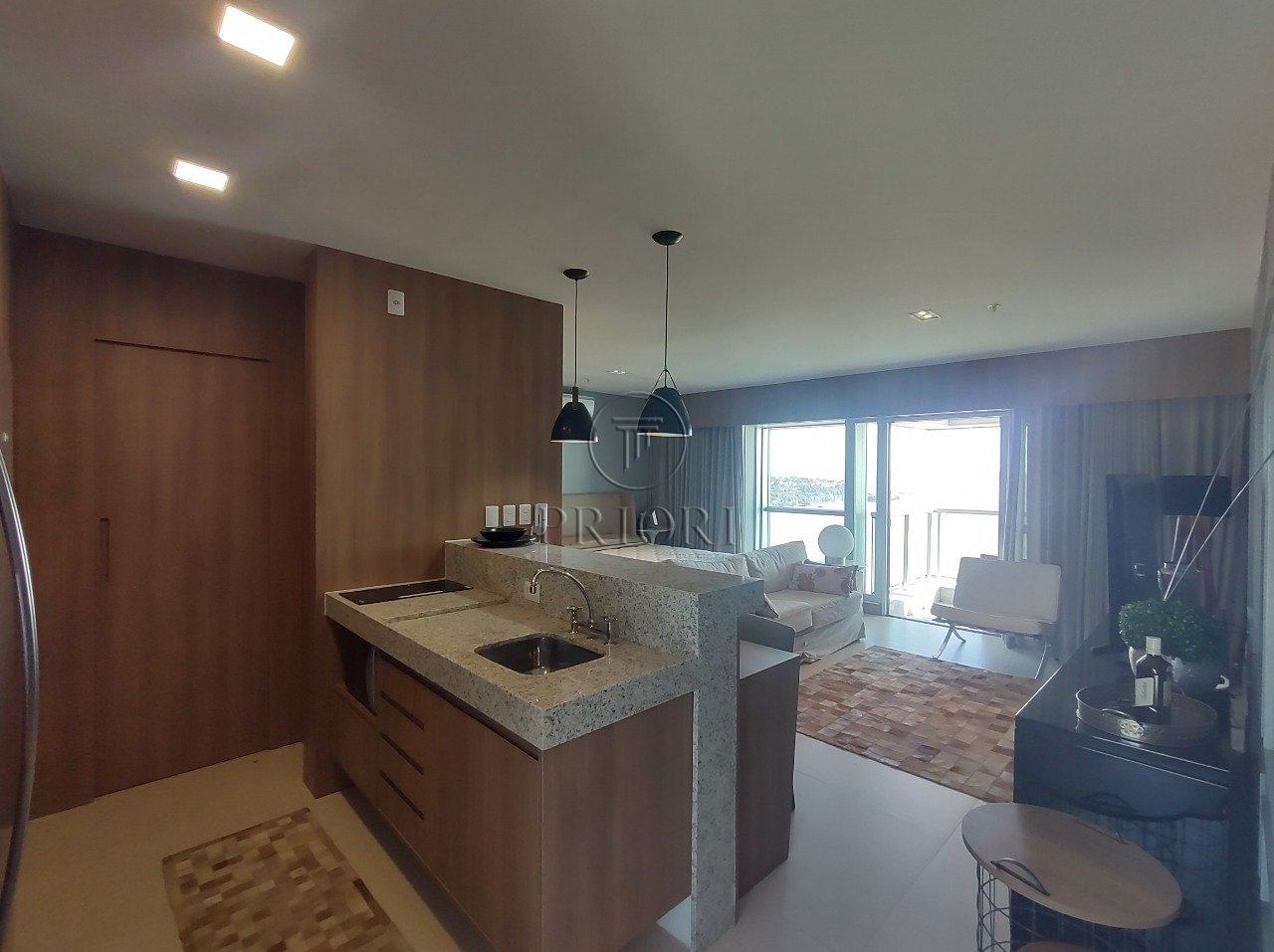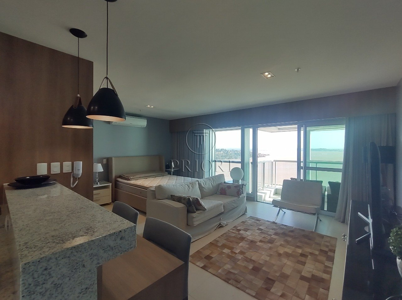 Apartamento loft totalmente mobiliado, decorado e equipado com 48m² privativos, amplo e aconchegante living, sacada aberta com poltronas e linda vista, dormitório com janela panorâmica seguindo a mesma linha da vista da sacada, um banheiro c/ chuveiro a gás, cozinha americana planejada e bancada com poltronas, além de uma vaga de garagem coberta.