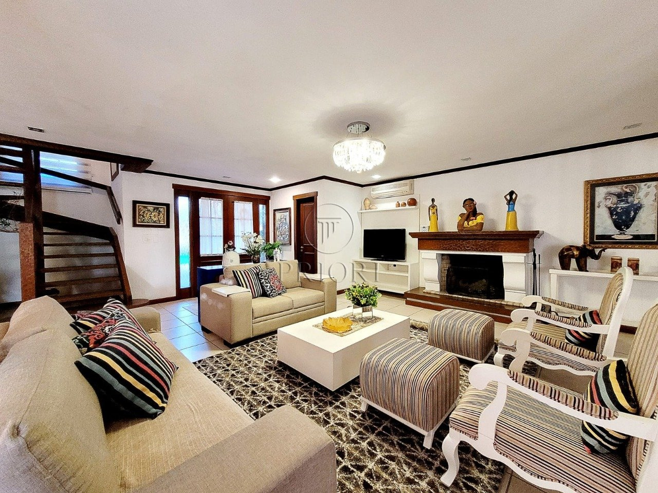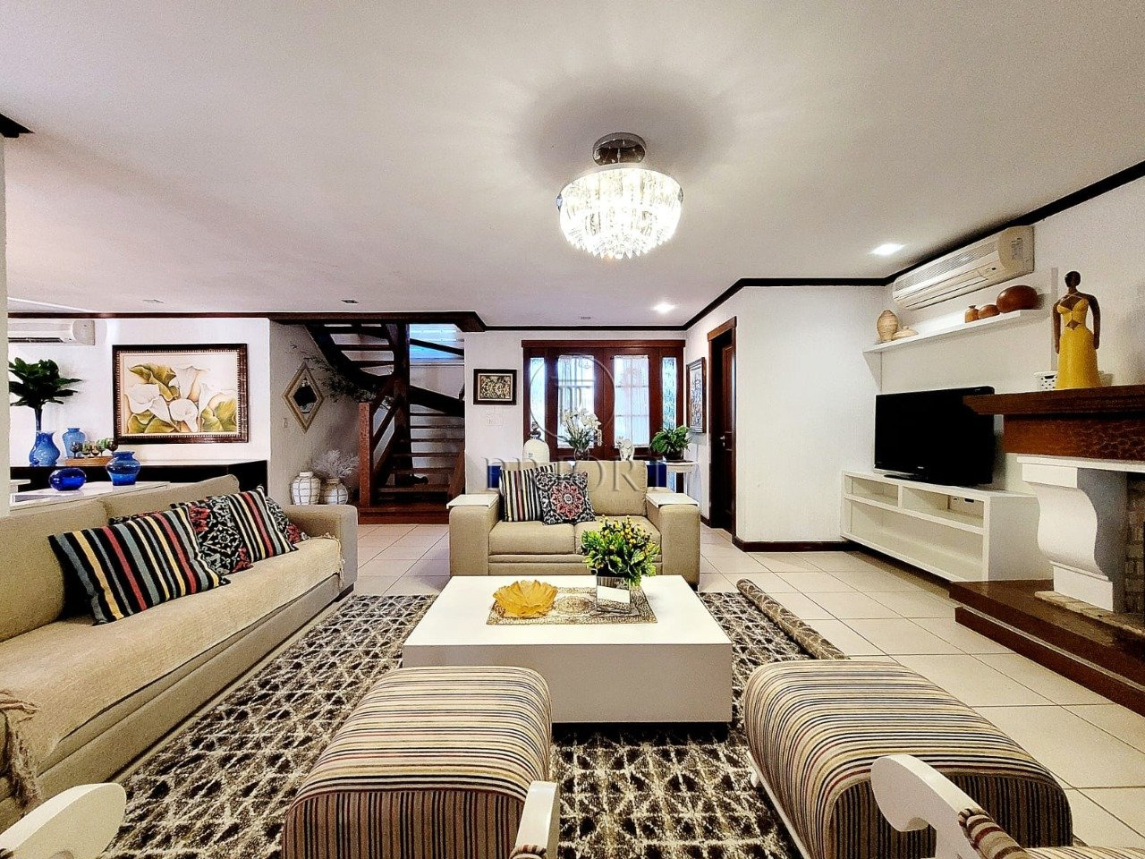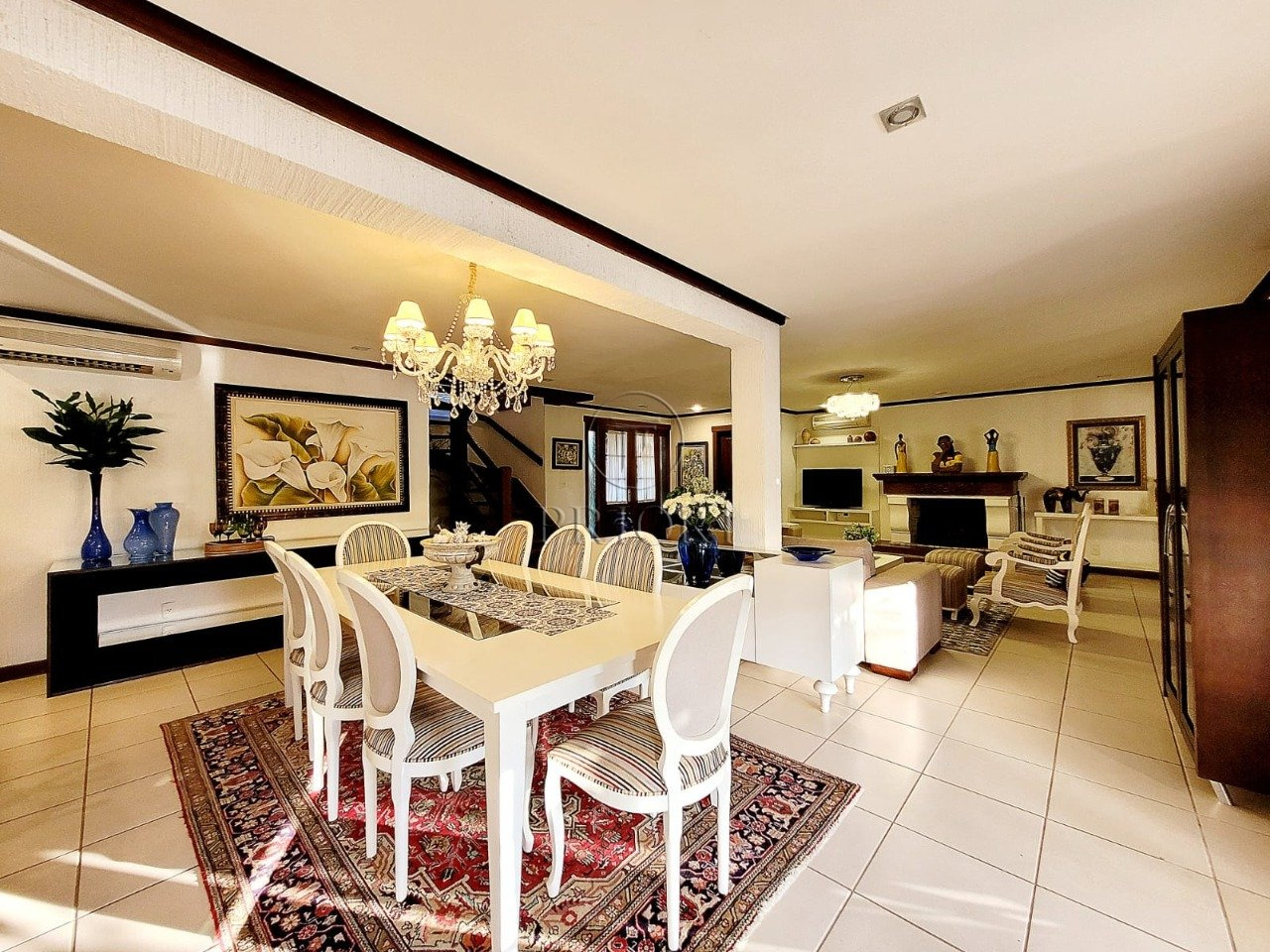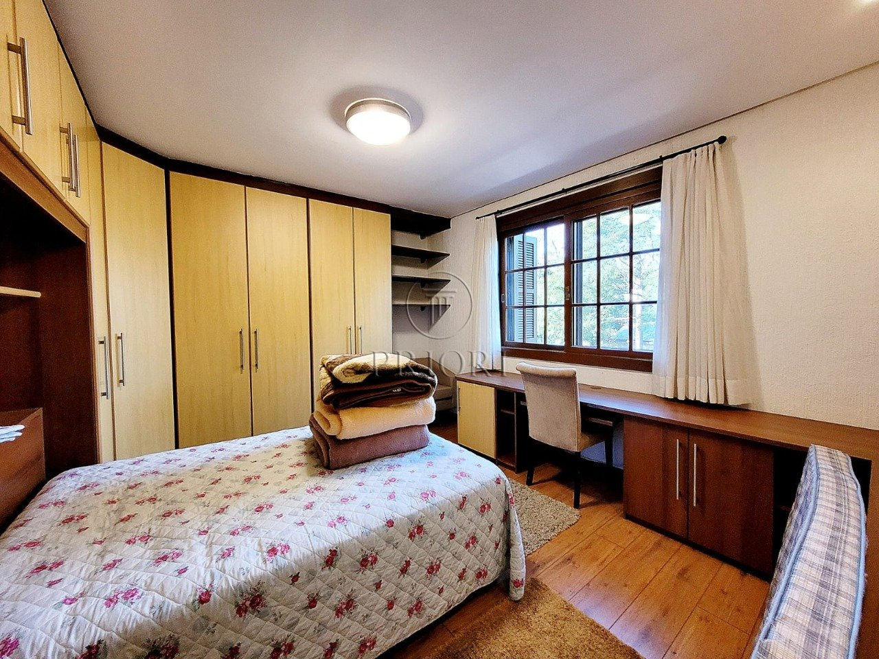 Já o pavimento superior dispõe de três amplos e ensolarados dormitórios com suítes, climatizados e armários planejados sob medida.
