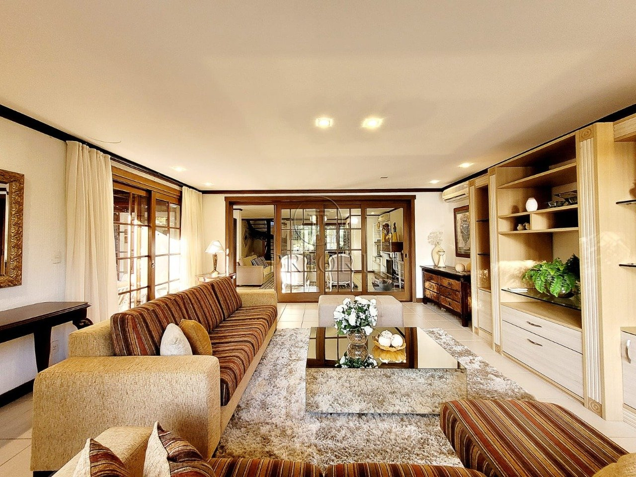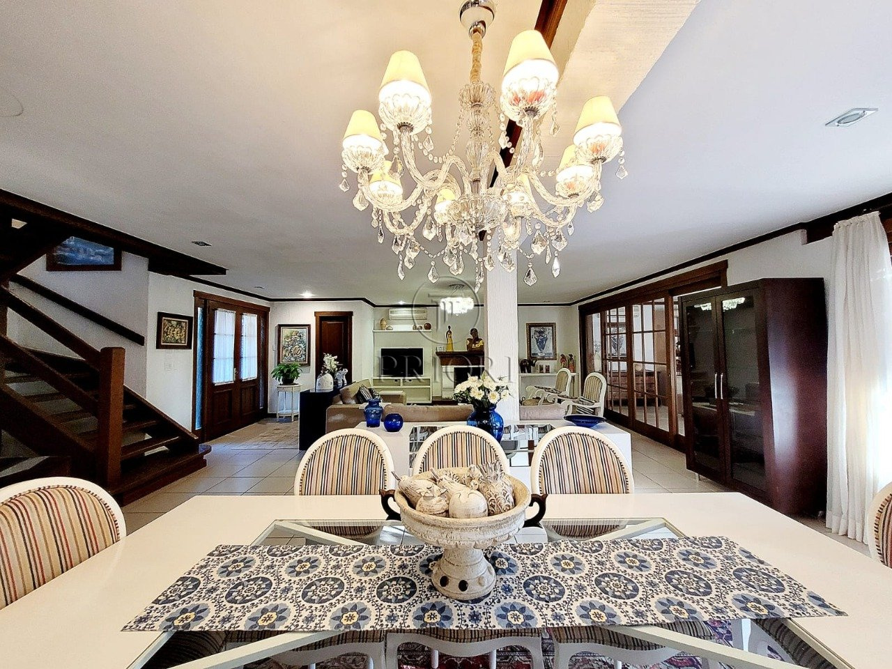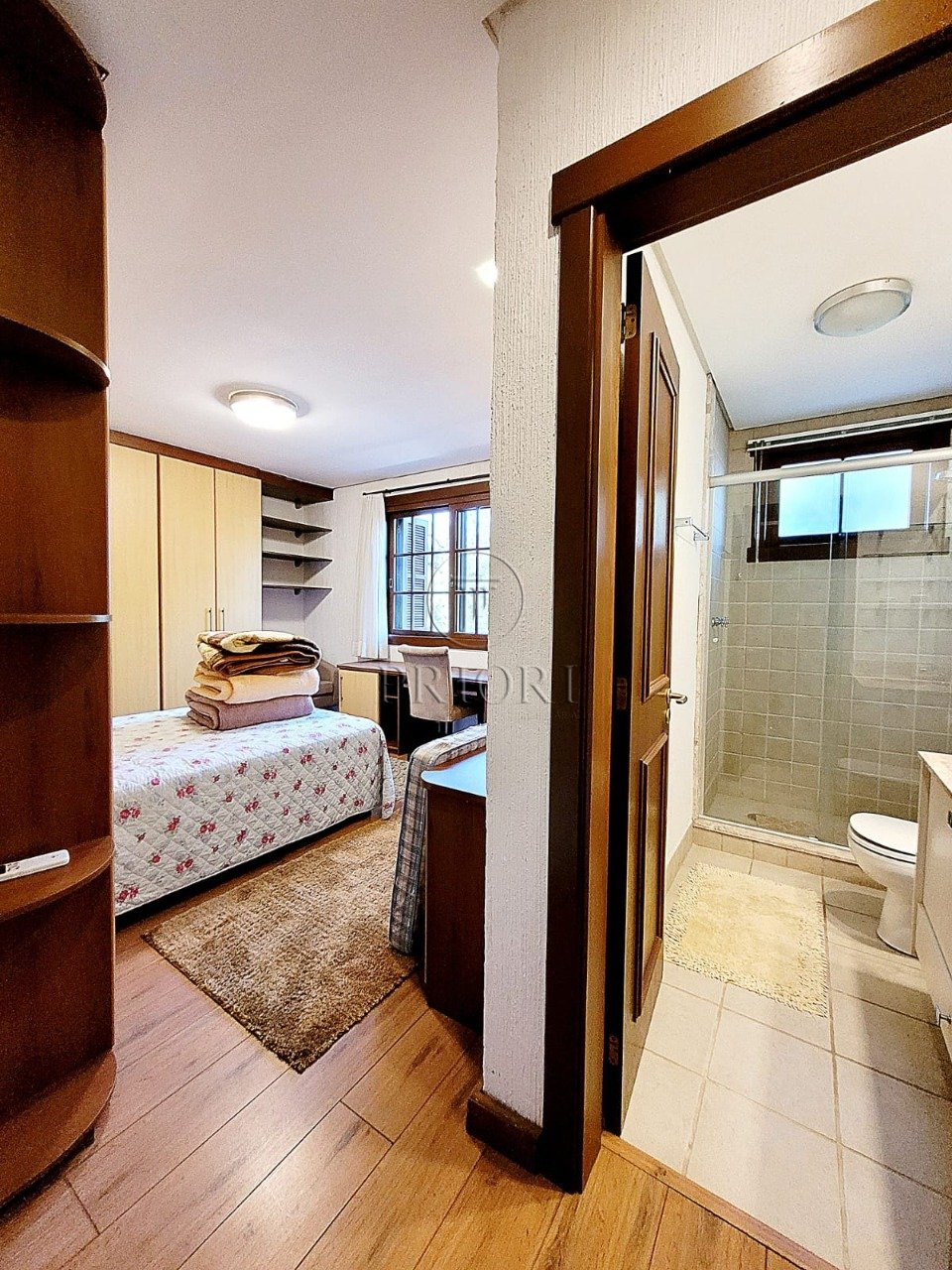 Já o pavimento superior dispõe de três amplos e ensolarados dormitórios com suítes, climatizados e armários planejados sob medida.