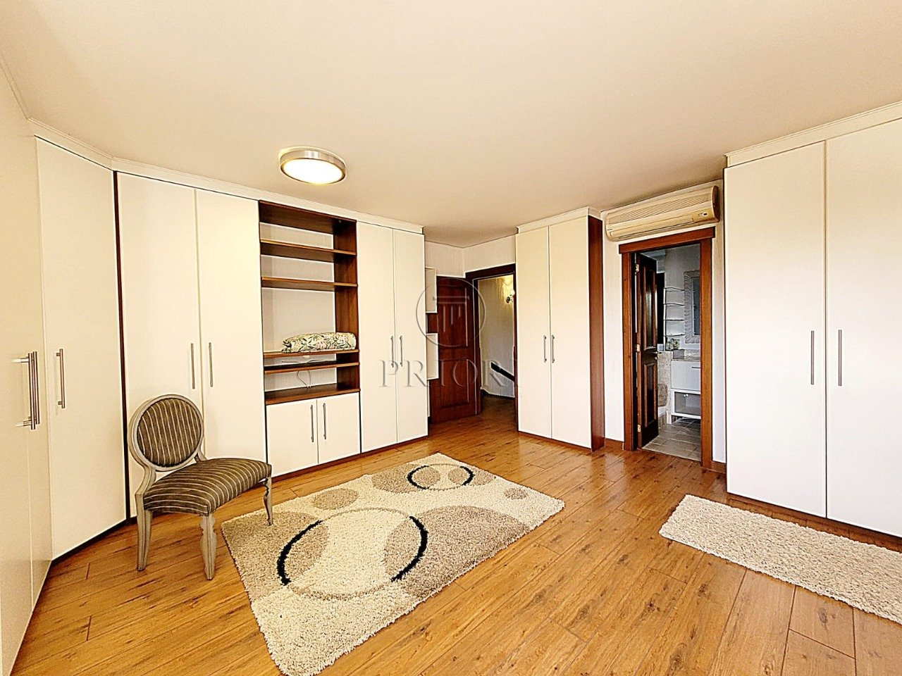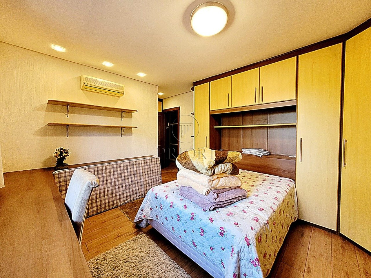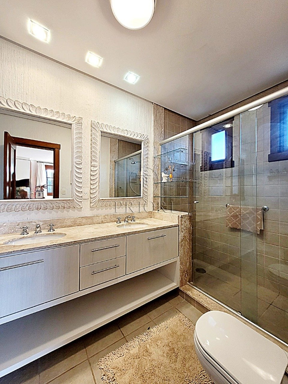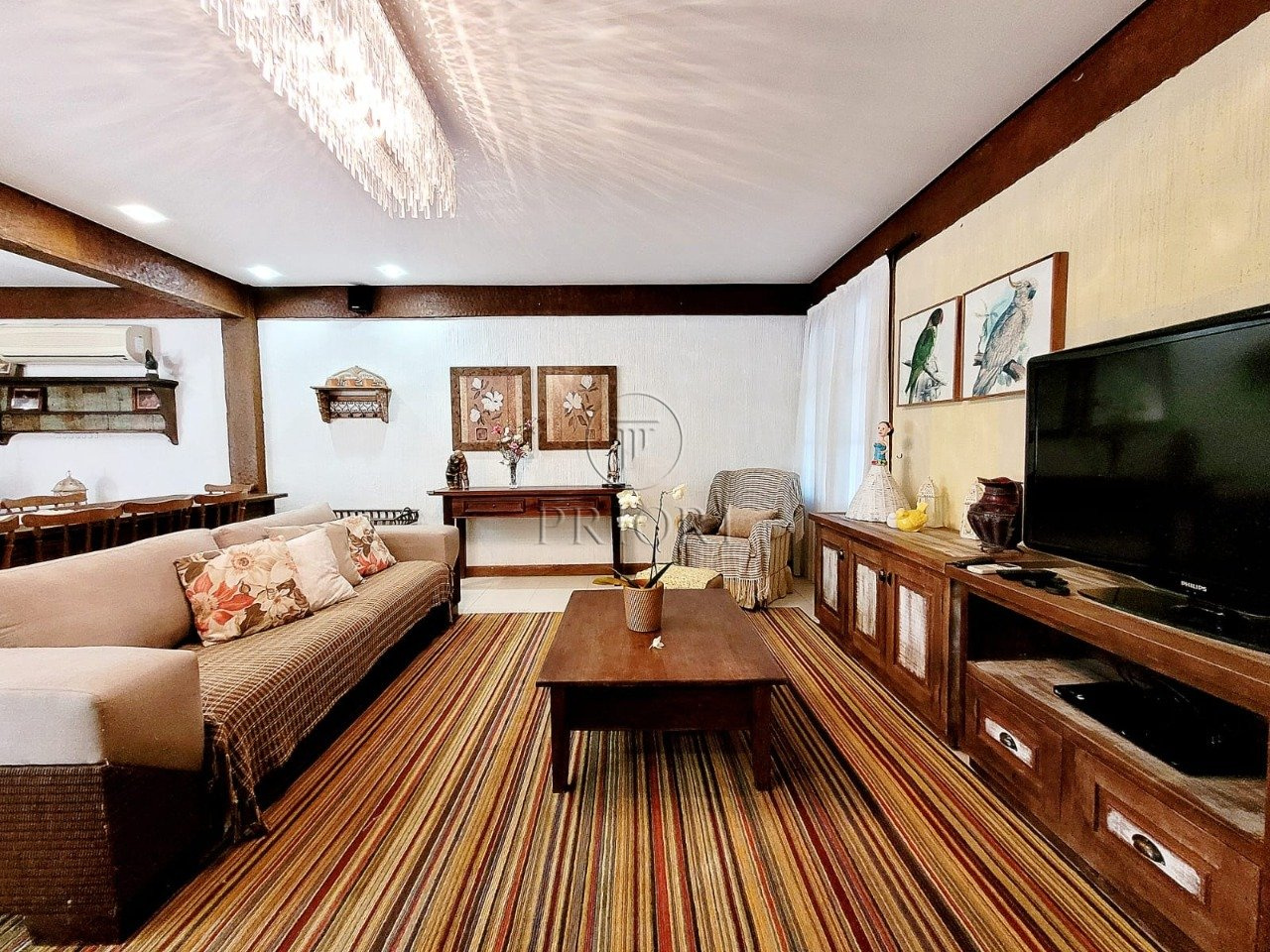Já o pavimento superior dispõe de três amplos e ensolarados dormitórios com suítes, climatizados e armários planejados sob medida.