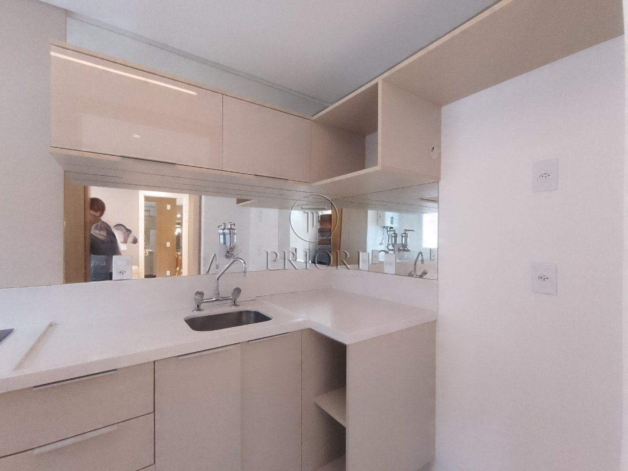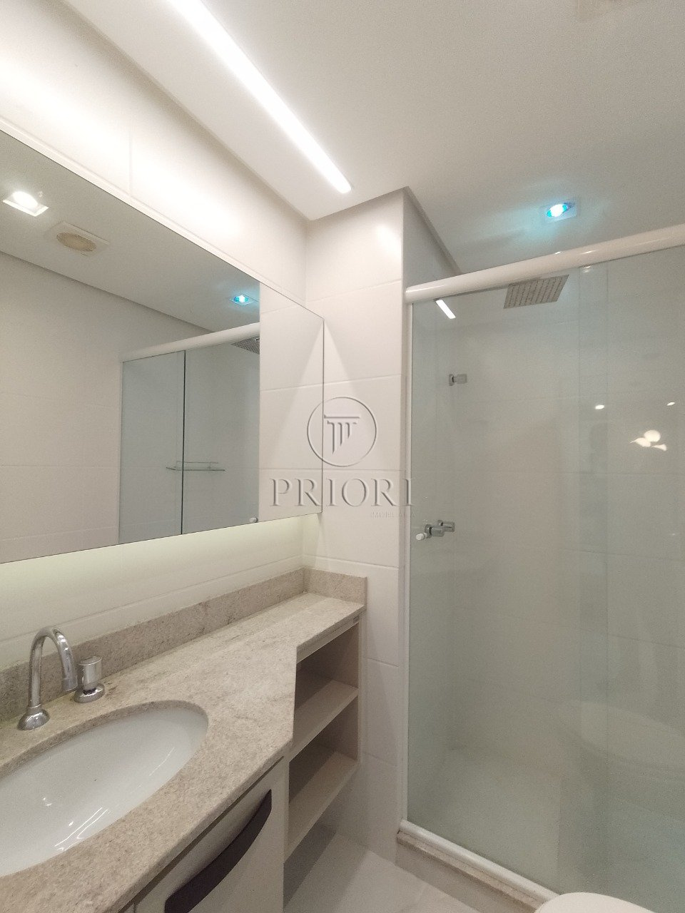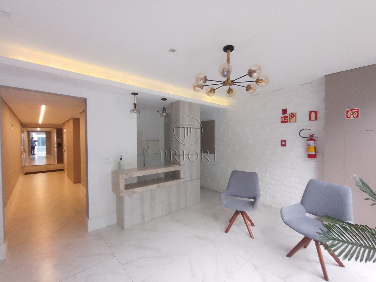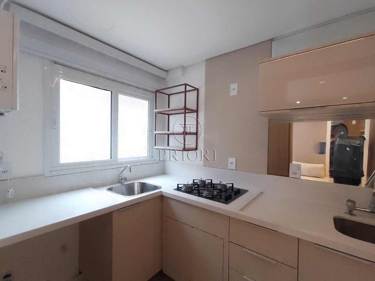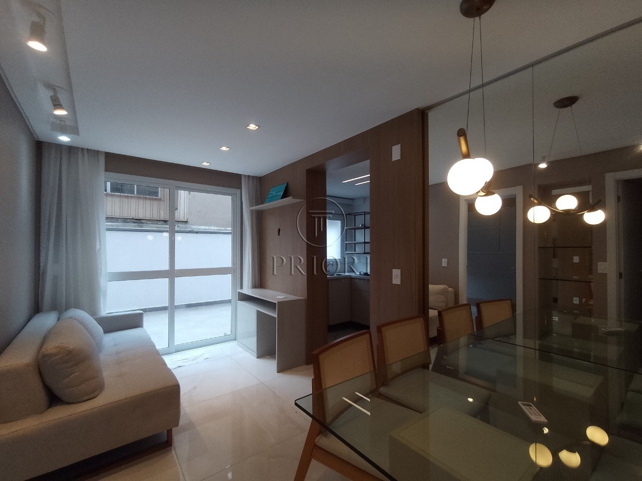 Imóvel decorado e climatizado em condições excelentes, com piso em porcelanato, medindo 60 m² privativos, um dormitório com armários planejados, living para dois ambientes, cozinha planejada com cooktop, banheiro social com chuveiro a gás, um amplo dormitório com armários, excelente área externa e uma vaga de garagem coberta.