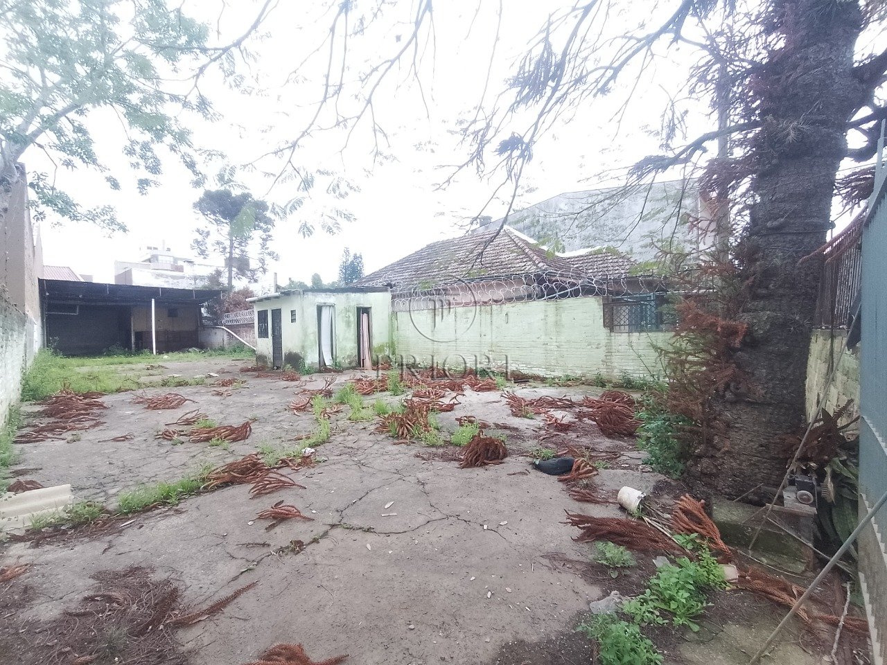 O terreno dispõe de 320m² de área total, 2 banheiros, parte coberta aos fundos, poste de luz e pontos de água.
