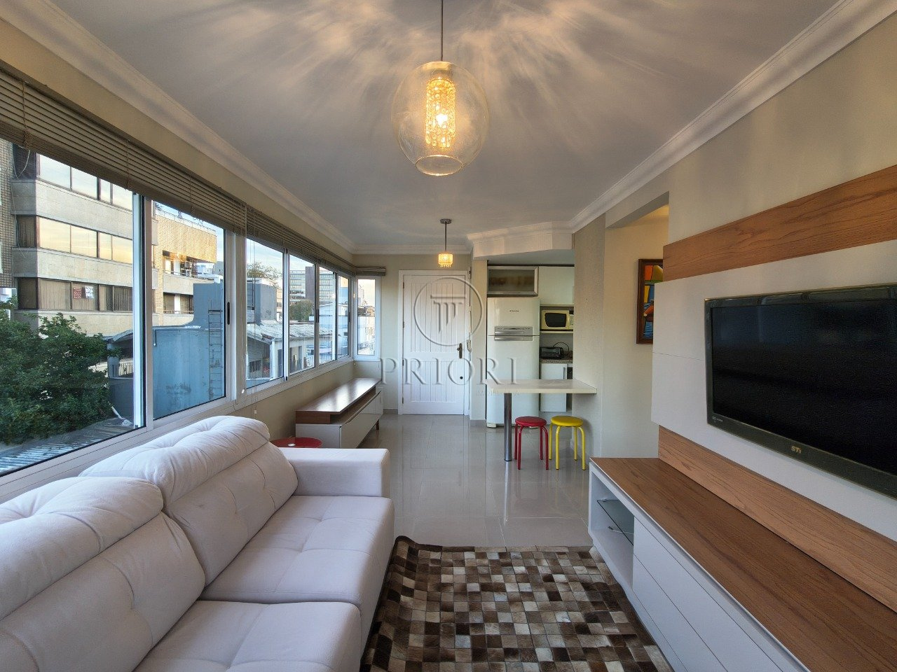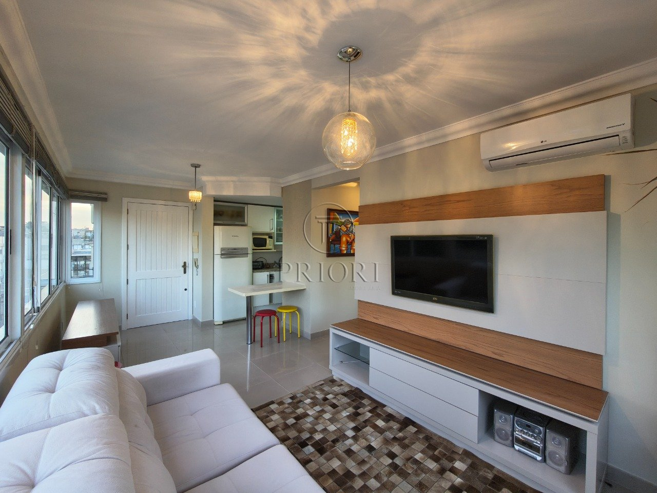 O imóvel dispõe de climatização em todos os ambientes e 45m² de área privativa, amplo living arejado e ensolarado com dois ambientes, cozinha planejada com churrasqueira e área de serviço individualizada com aquecedor a gás, área de circulação com um dormitório com banheiro social/suíte.