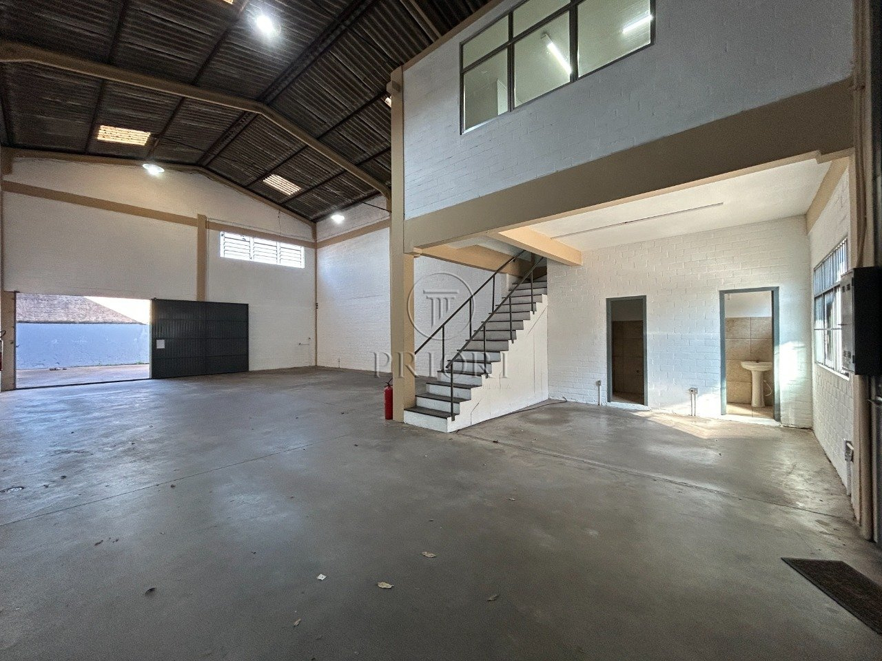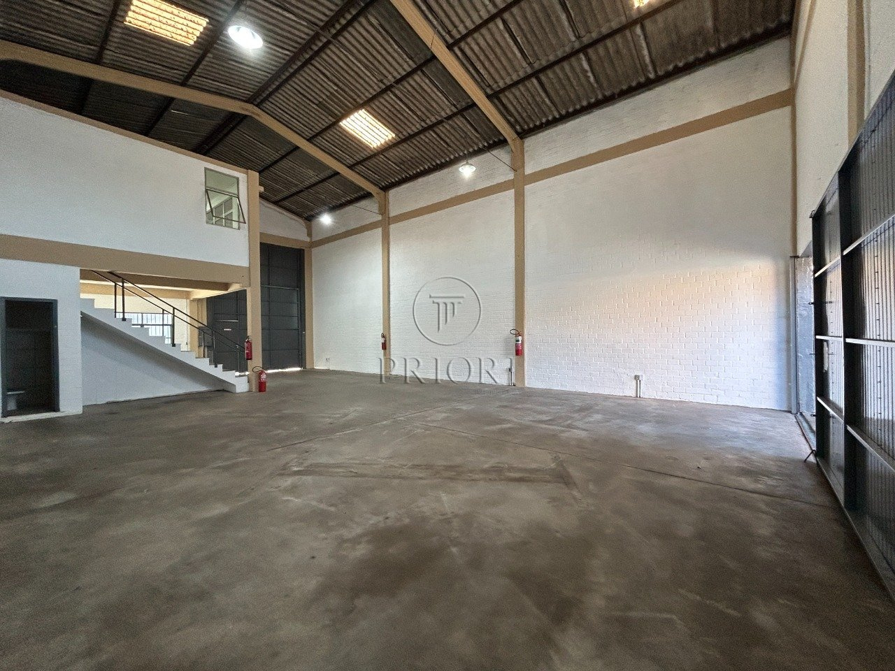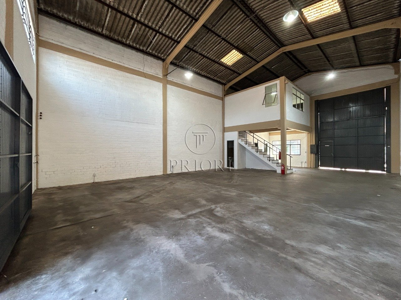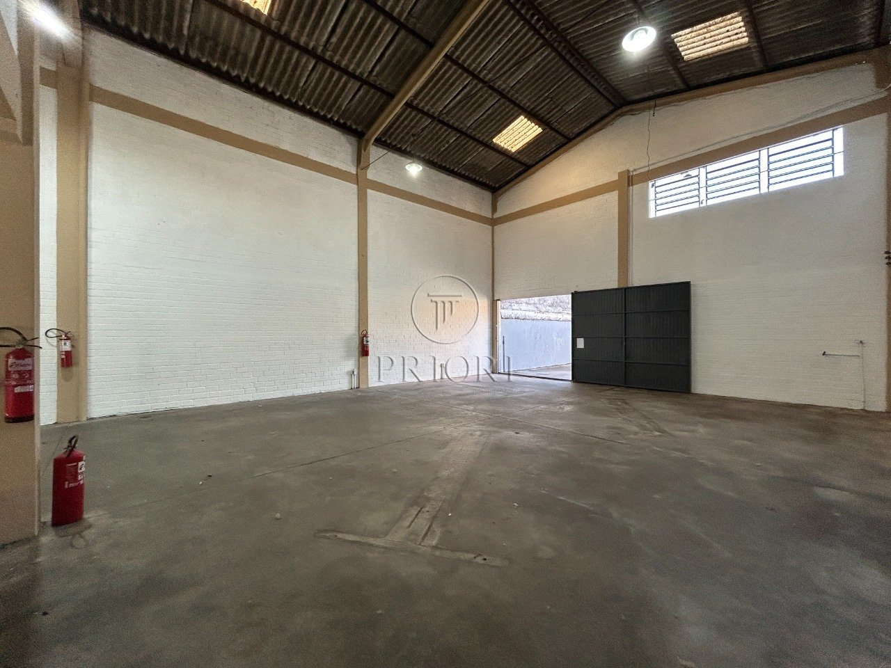 Pé direito de 6,50m com um alto portão para entrada, permitindo acesso até mesmo de grandes caminhões.