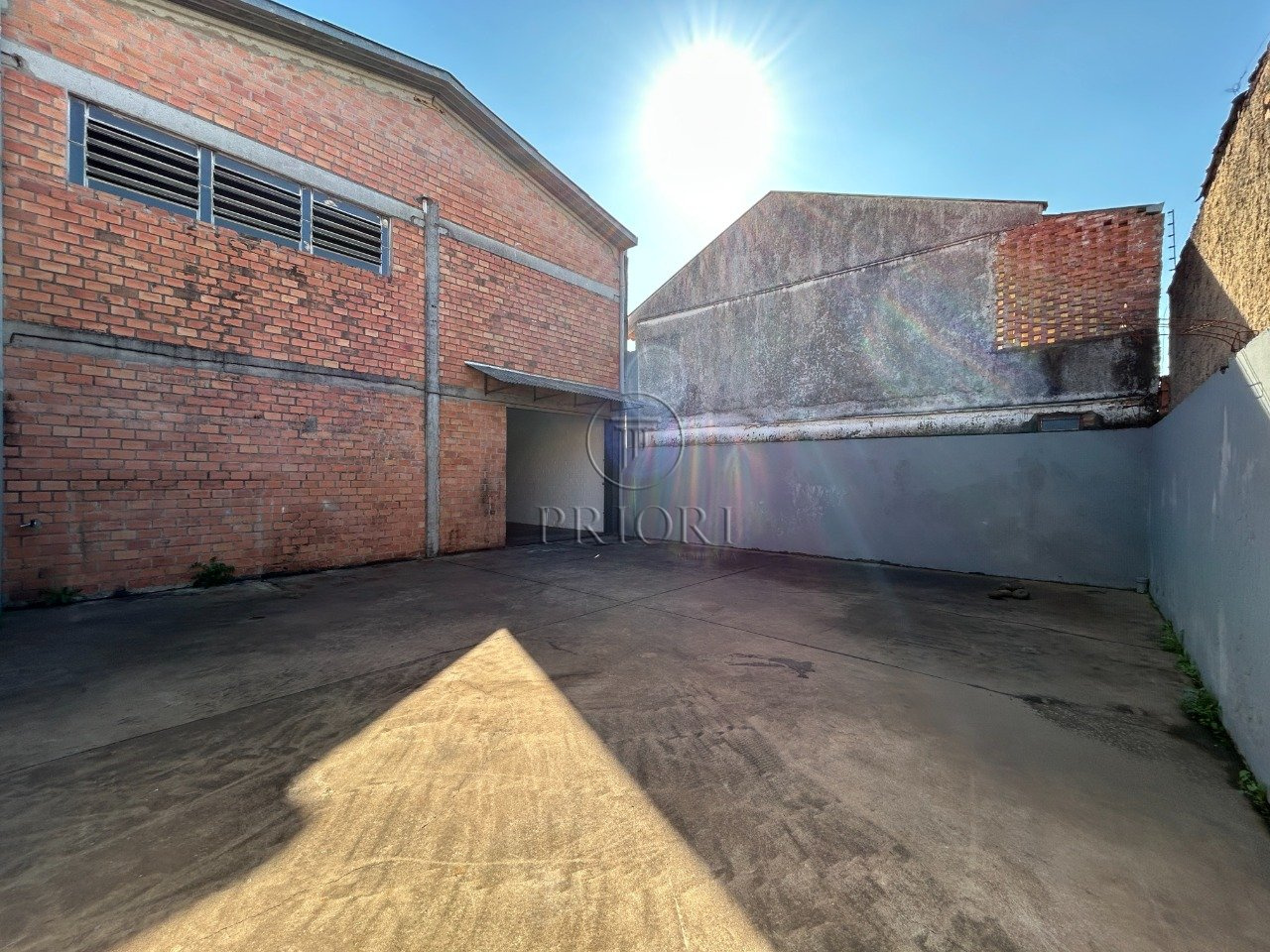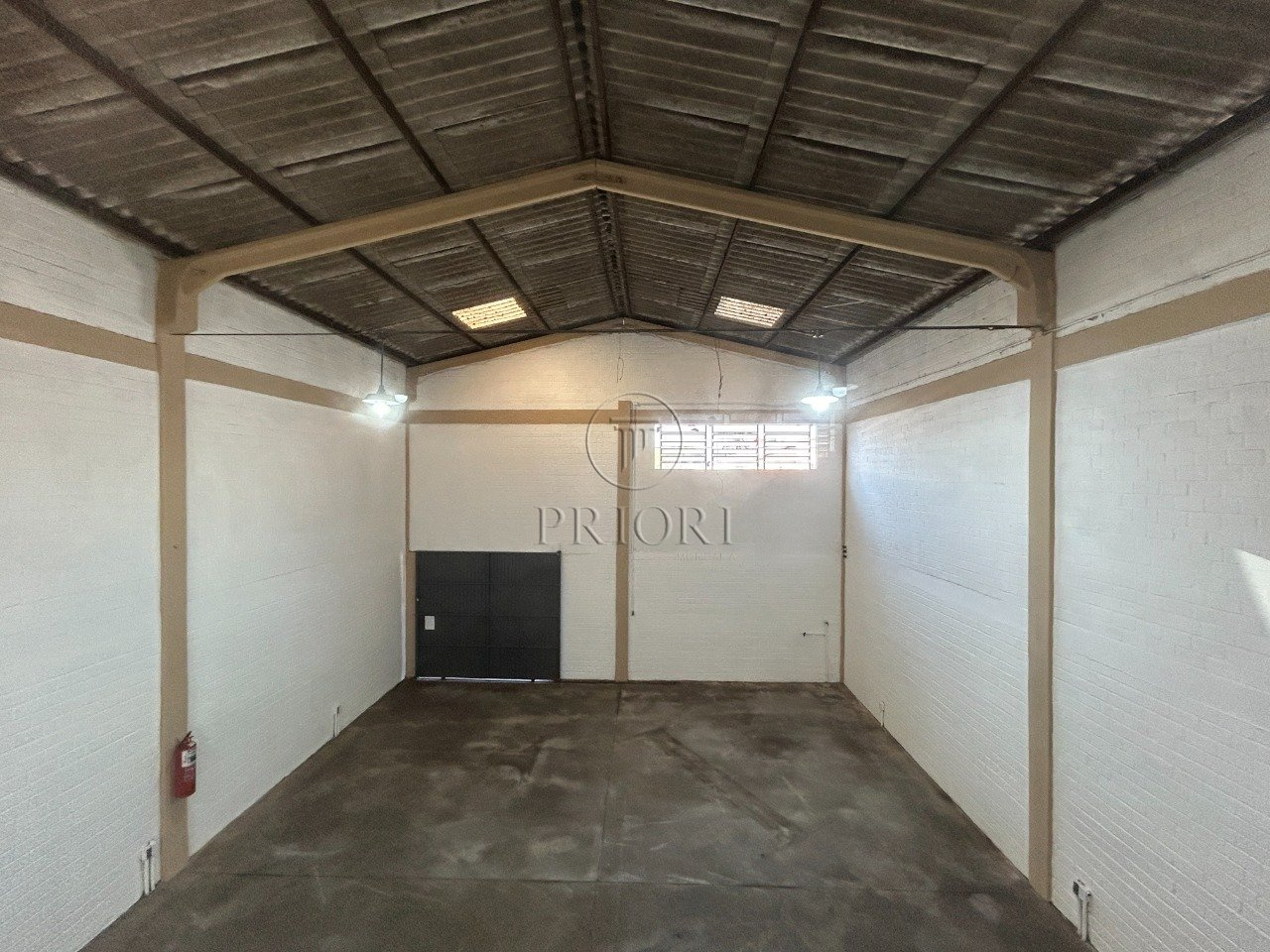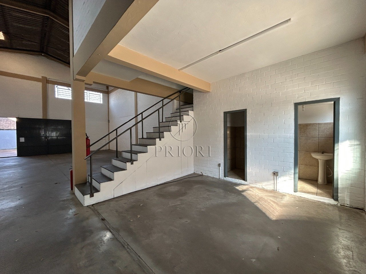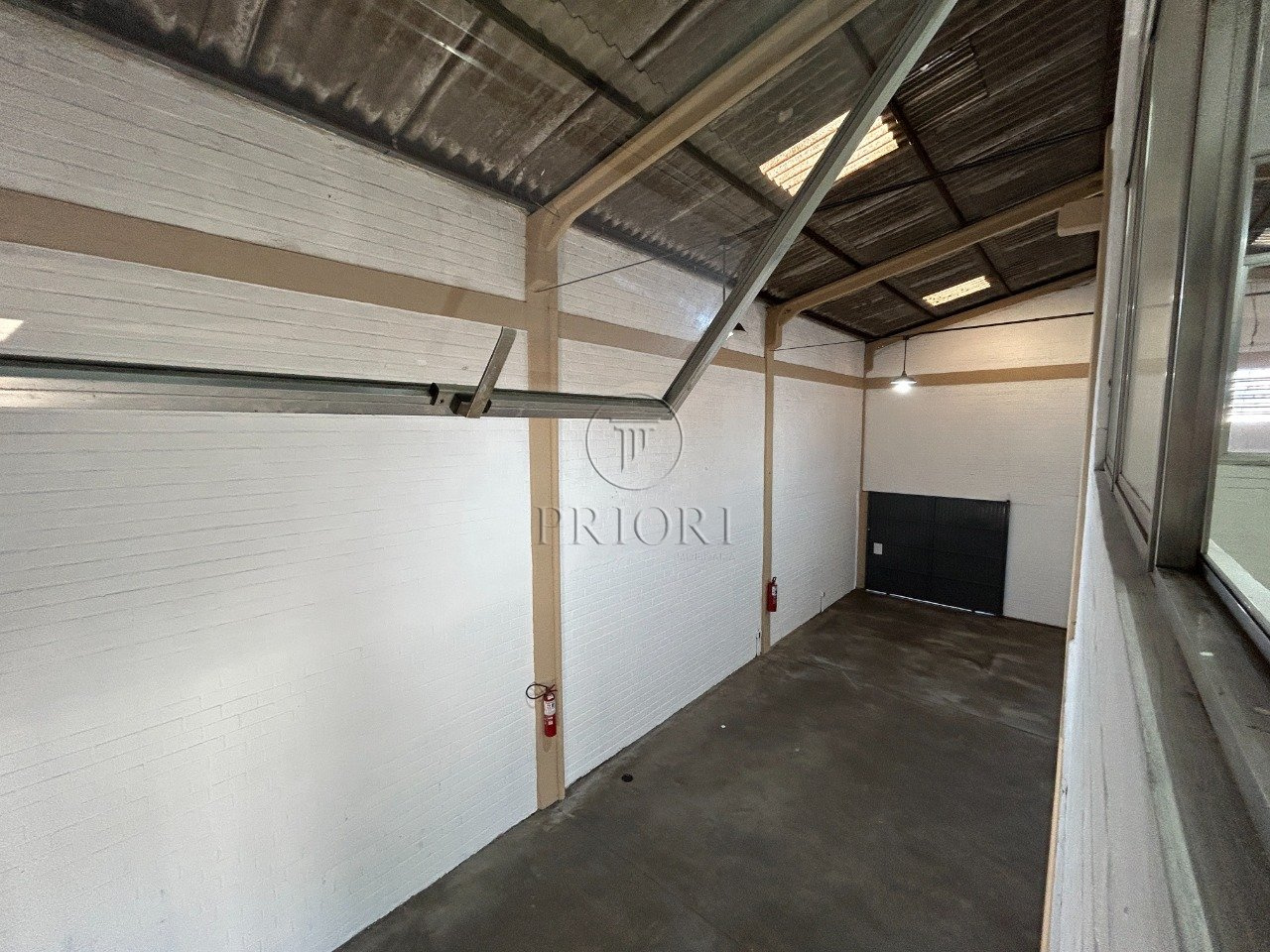 Pé direito de 6,50m com um alto portão para entrada, permitindo acesso até mesmo de grandes caminhões.
