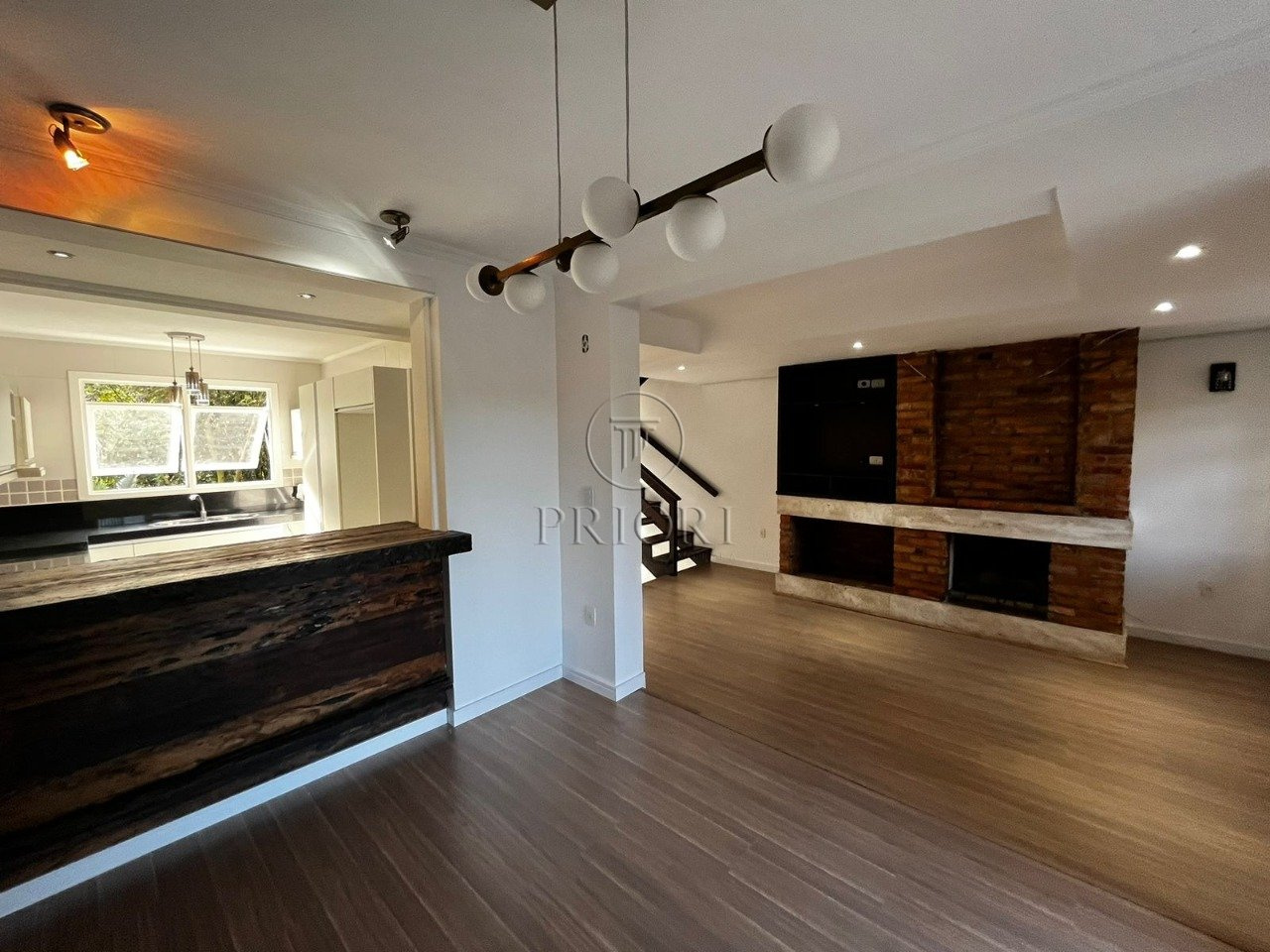 Primeiro andar com entrada com fechadura eletrônica e muita iluminação natural. Ampla sala com dois ambientes, lareira, varanda com churrasqueira e lavabo. Ampla cozinha integrada com a sala, toda em pedra natural (São Gabriel) e com armários planejados.