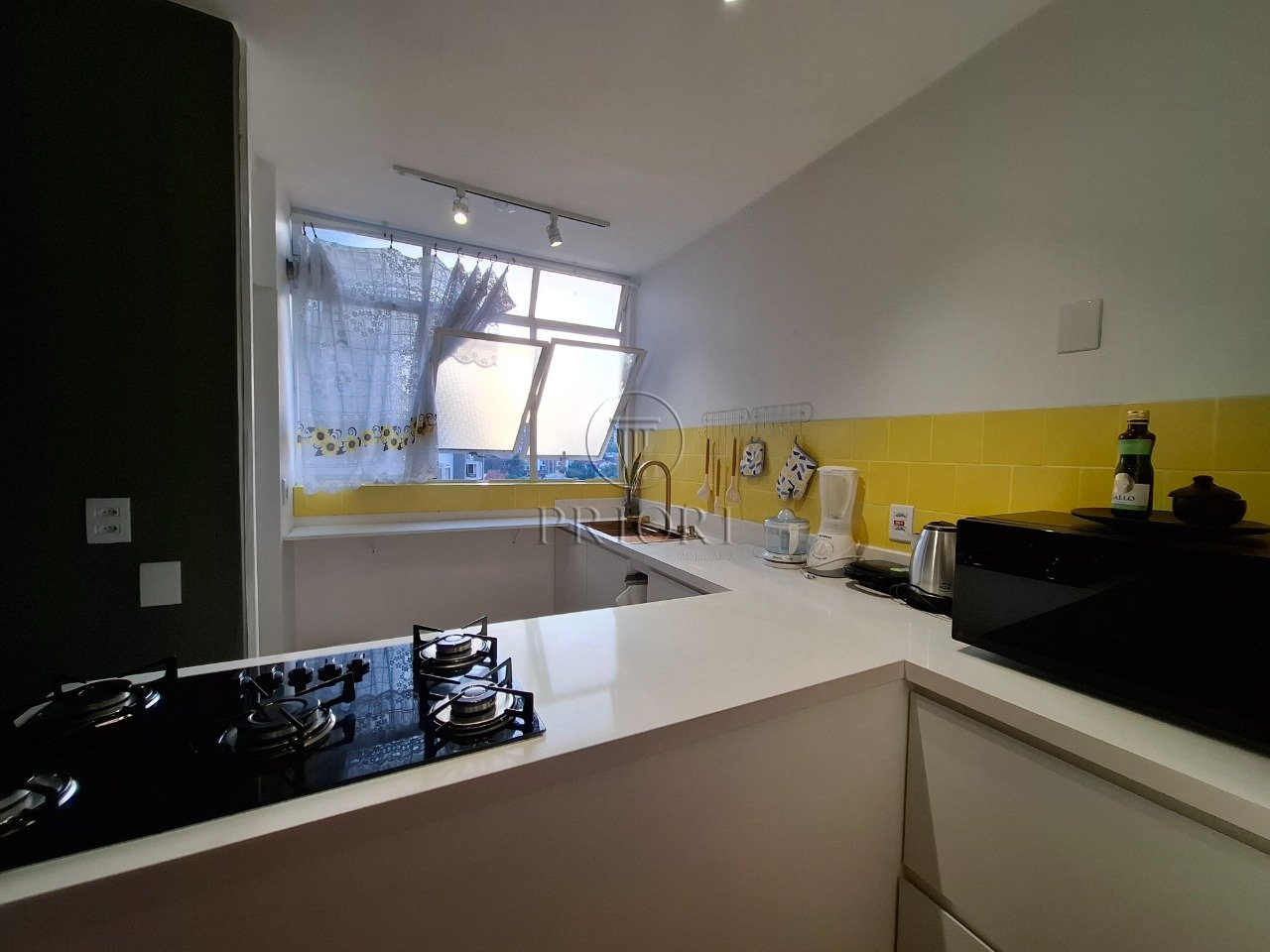O imóvel dispõe de living estendido, dois amplos dormitórios e um banheiro social. Além disso, o apartamento possui cozinha planejada e banheiro auxiliar.