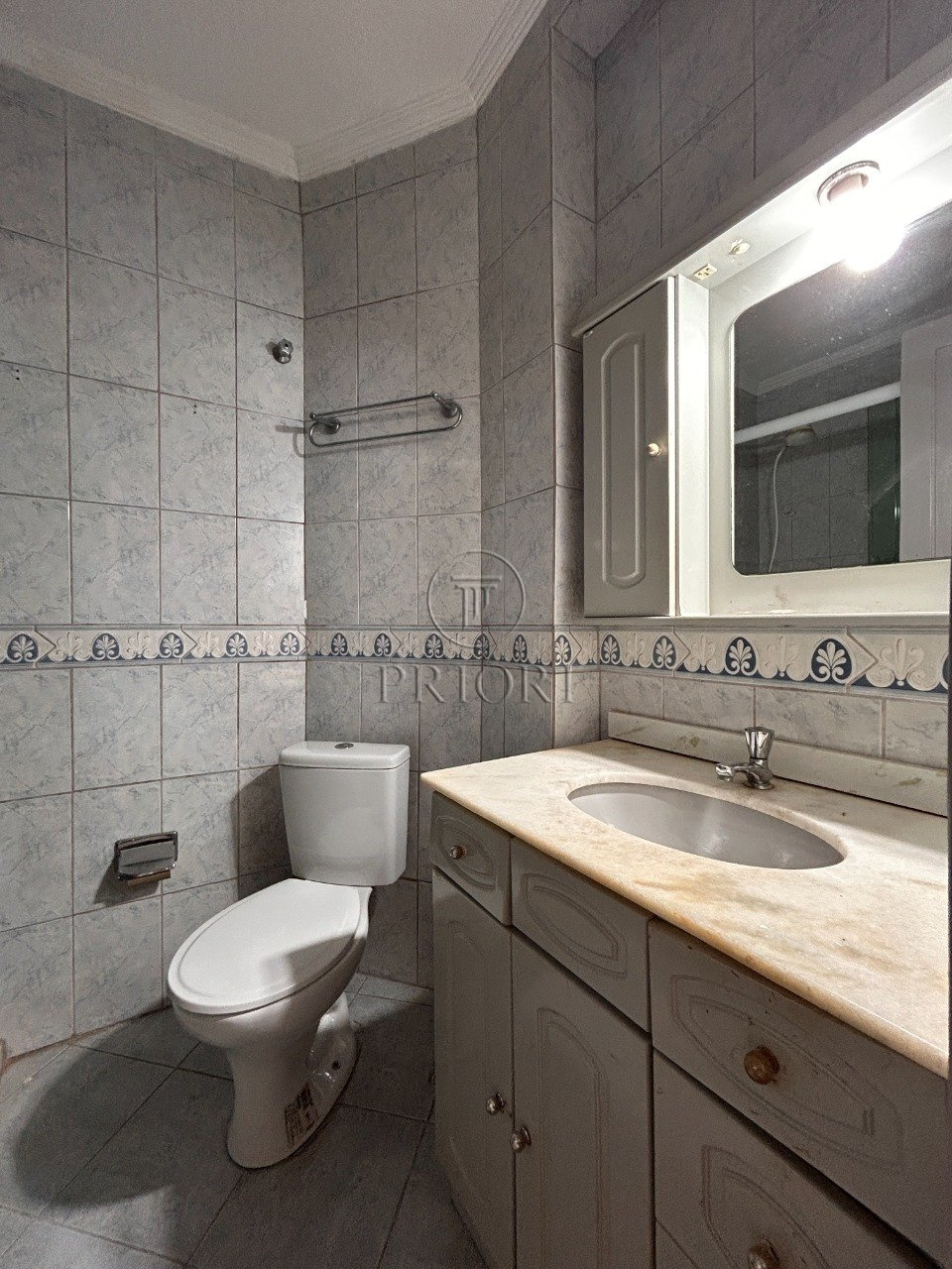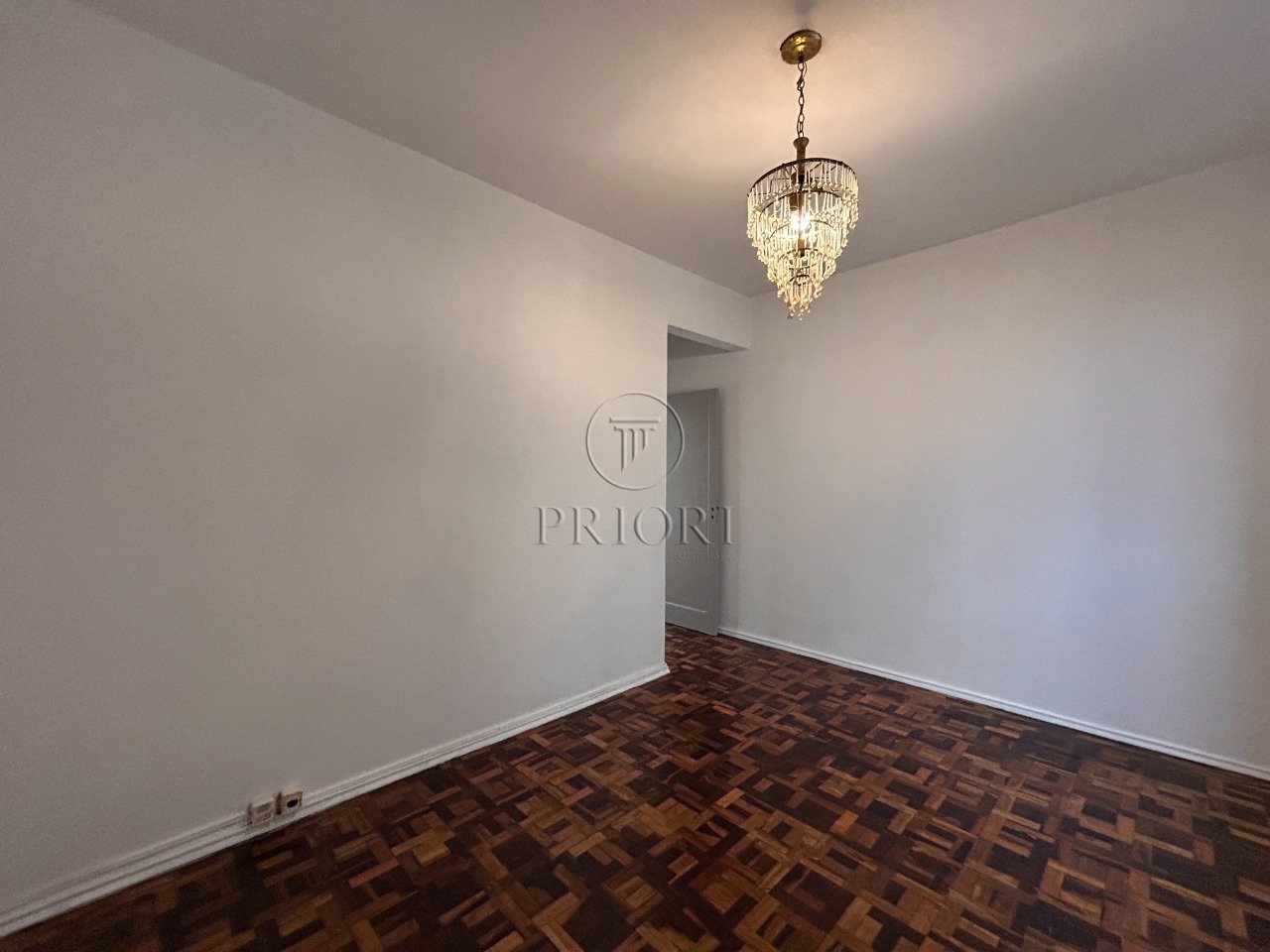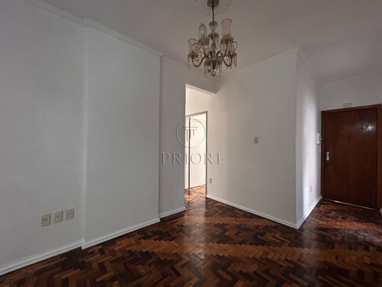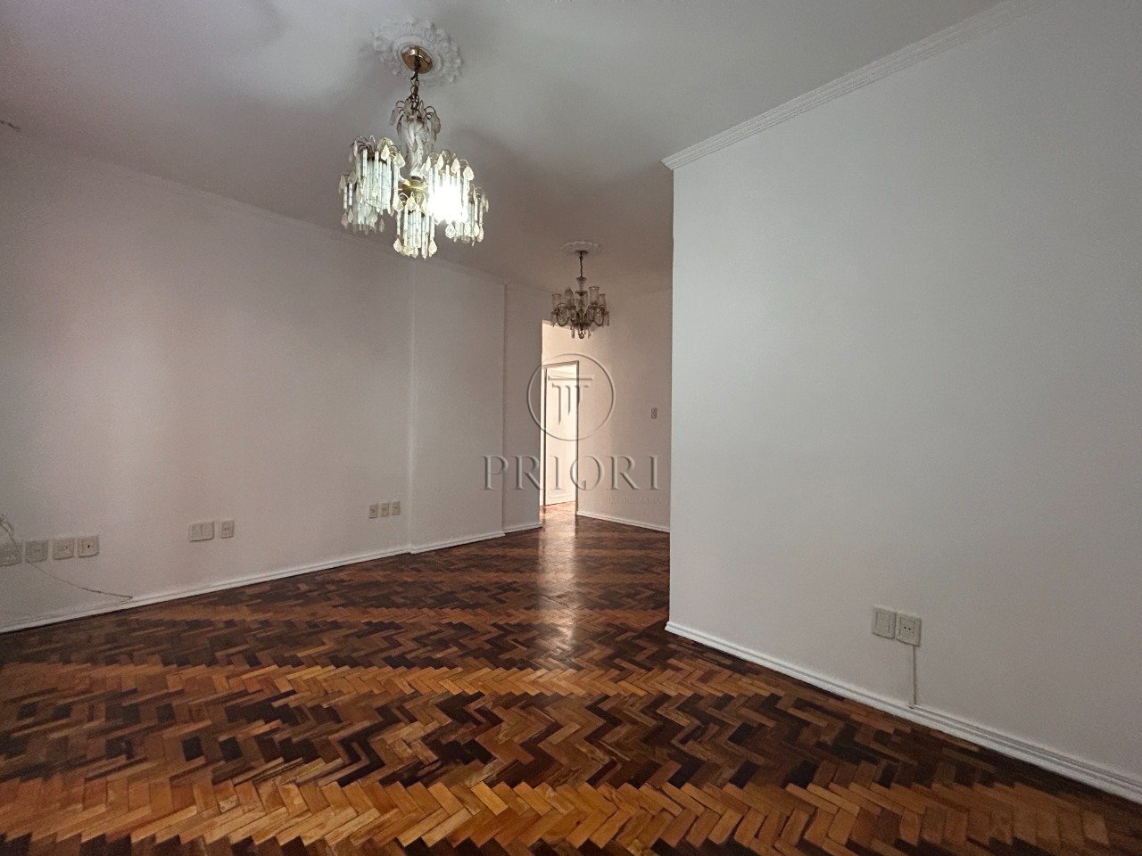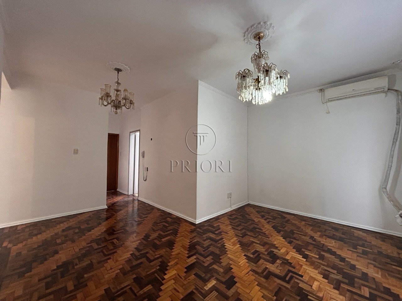 Apartamento de 82m² privativos, distribuídos em amplo living climatizado de dois ambientes decorado com lindos lustres, cozinha, área de serviço, banheiro auxiliar, três dormitórios sendo um deles com armário e um banheiro social.