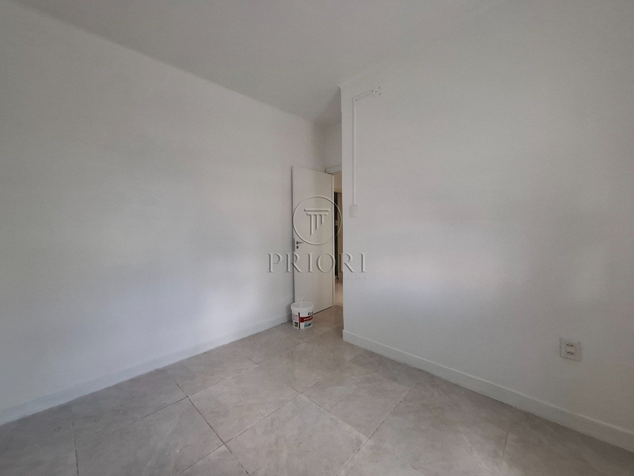 Apartamento reformado medindo 85m², piso frio, aberturas grandes, ampla cozinha, área de serviço individualizada, cozinha com armário e fogão, 3 dormitórios de tamanho médio/grande e banheiro social.