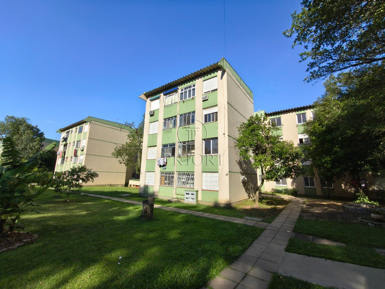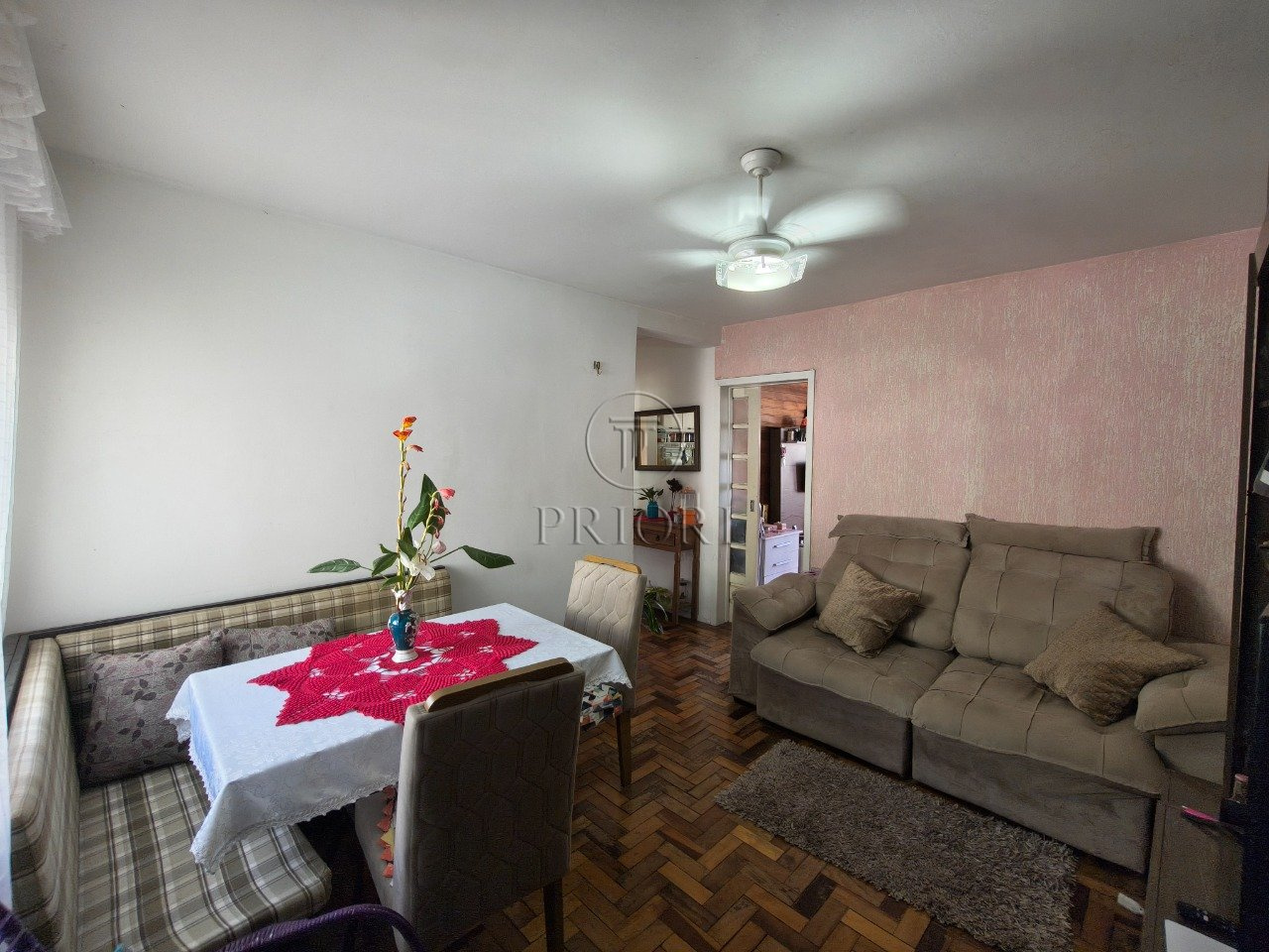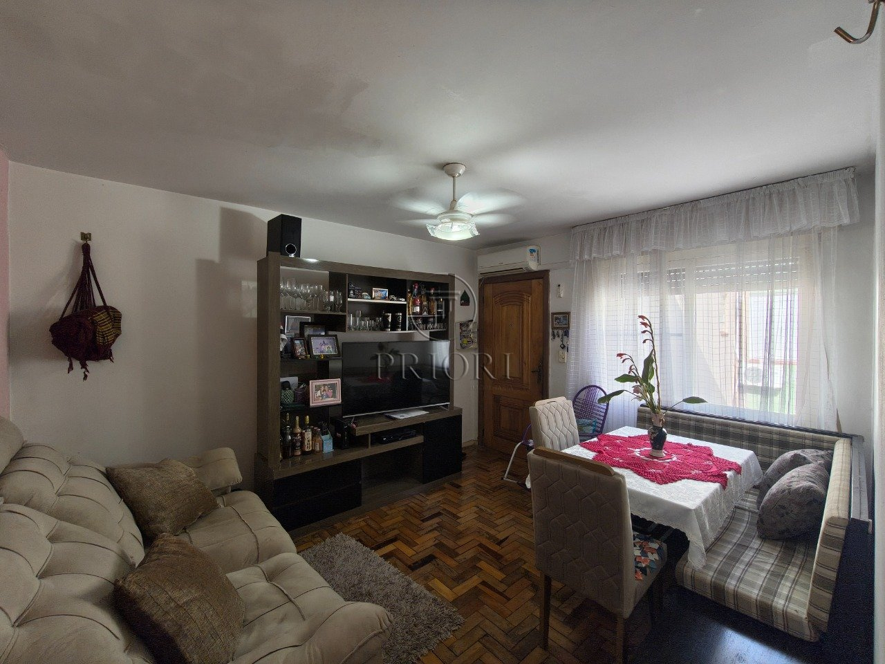 O imóvel dispõe de amplo living para dois ambientes, área de circulação com banheiro social reformado e chuveiro a gás, cozinha ampla com área de serviço integrada e dois amplos dormitórios (planta original é de 3 dormitórios).