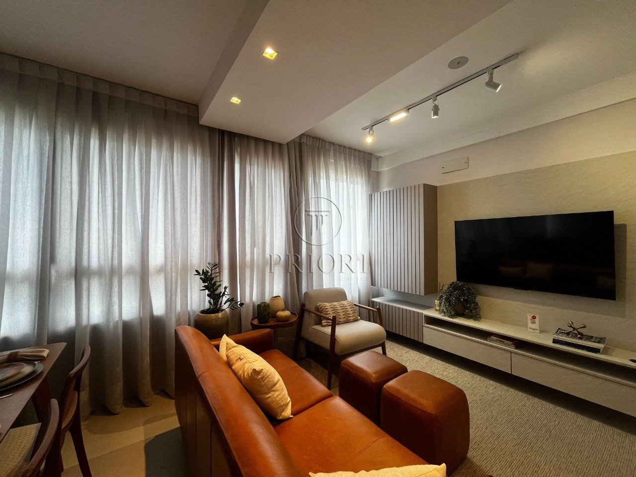 Apartamento com 70m² de área privativa, totalmente decorado com 2 dormitórios, sendo um suíte, com amplo living divididos em sala estar sala de jantar, espaço gourmet com churrasqueira, cozinha integrada com a área de serviço, banheiro social e vaga de garagem.