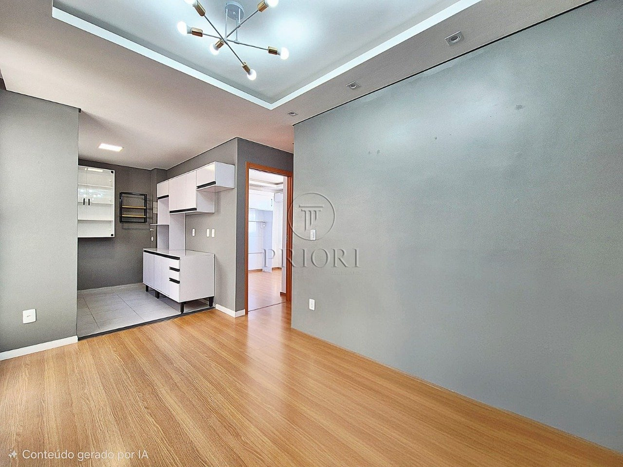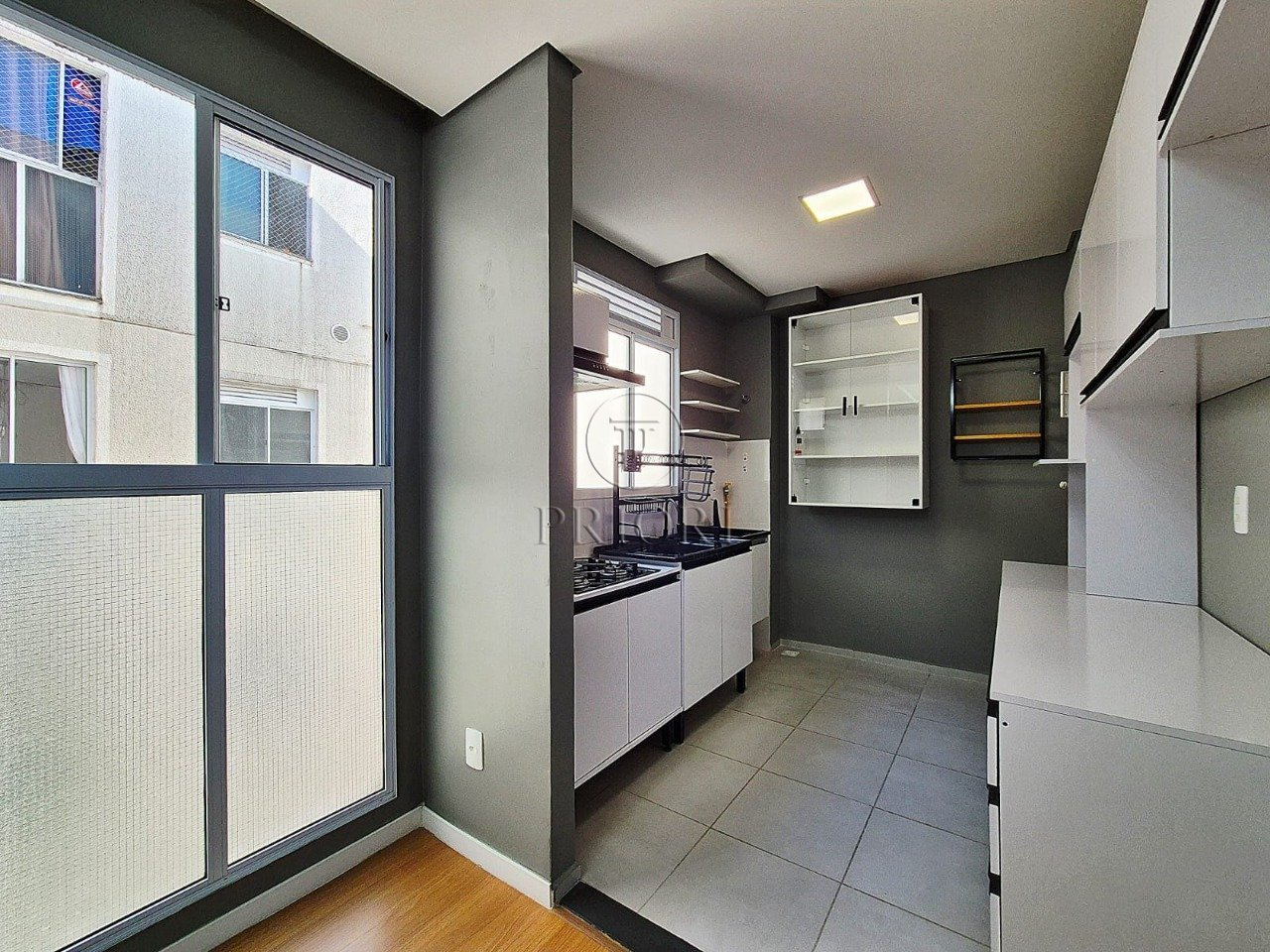 O imóvel dispõe de dois dormitórios, ambos bem ensolarados, sendo um climatizado e com armários planejados sob medida. Banheiro social bem arejado e com ventilação natural, azulejos e piso frio impecáveis. Living com aberturas grandes possibilitando maior luminosidade, total privacidade e silêncio, rebaixamento em gesso e luminárias diferenciadas. Cozinha estilo americana com total integração ao living, montada e equipada com armários aéreos, sob medida e alguns eletrodomésticos.