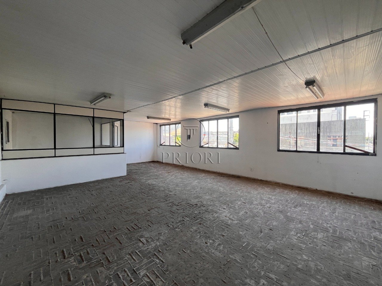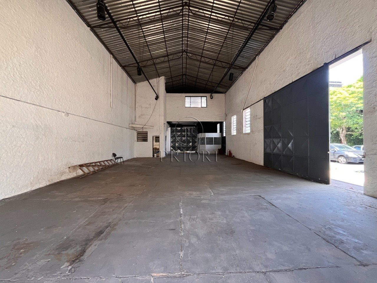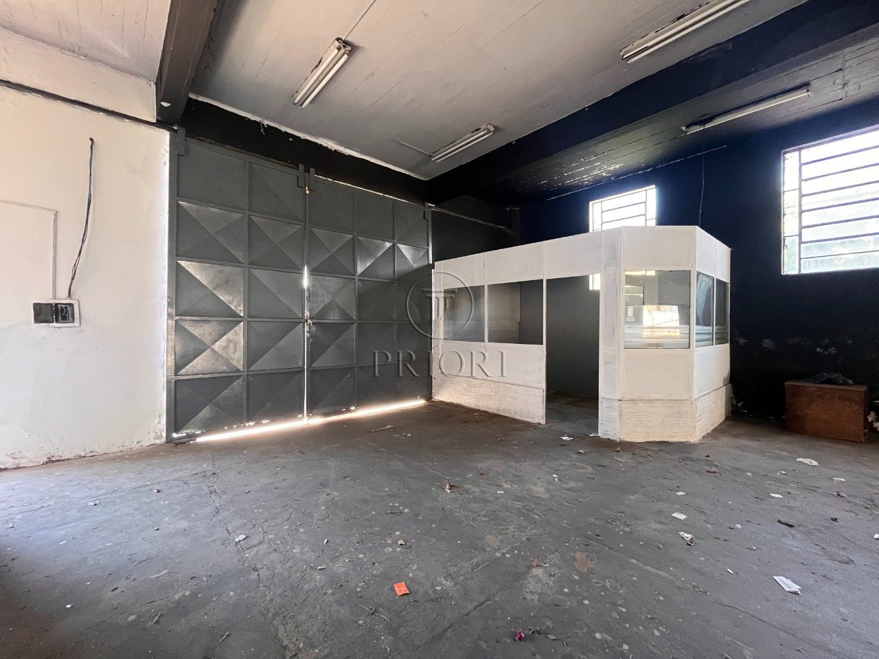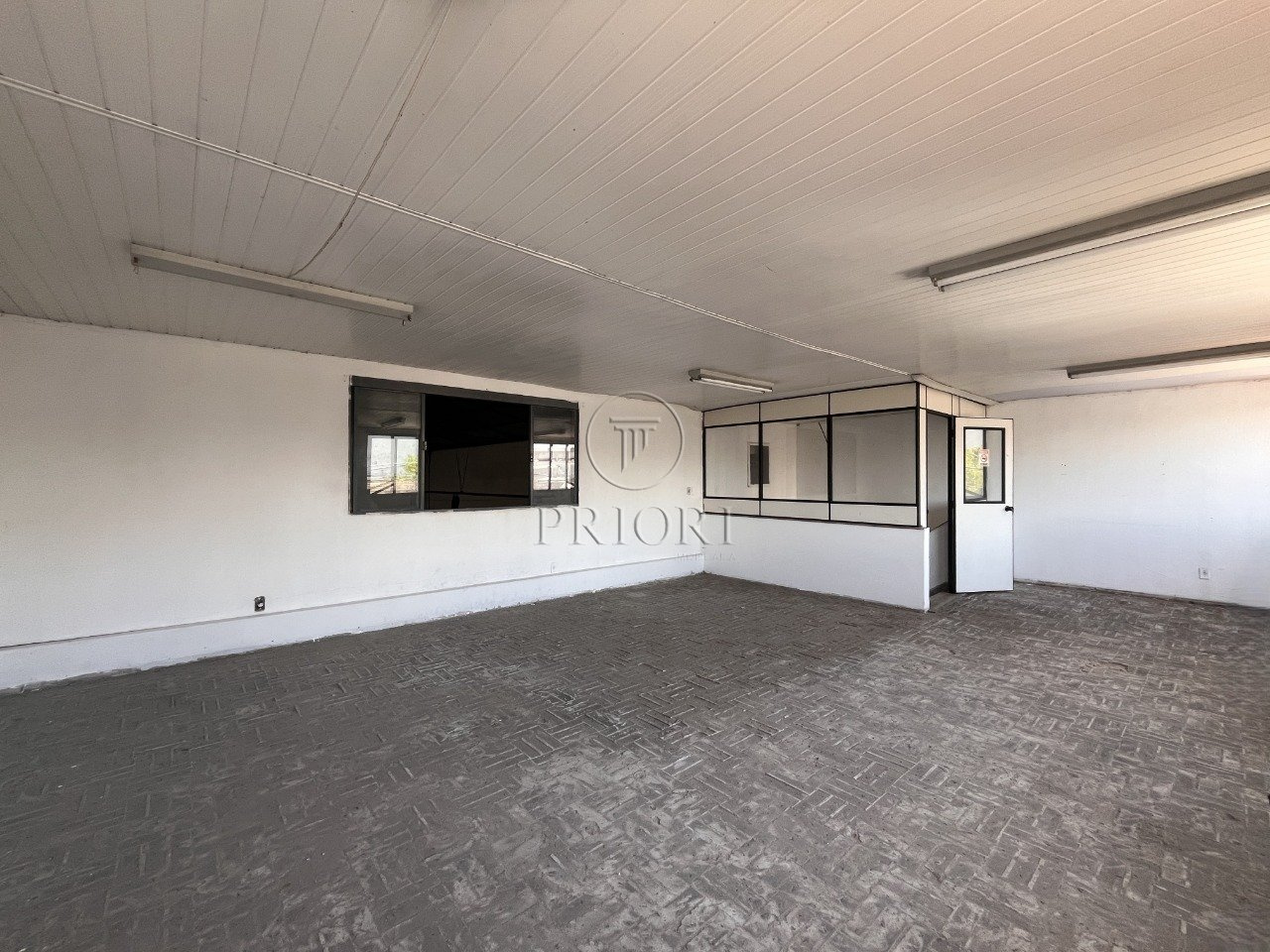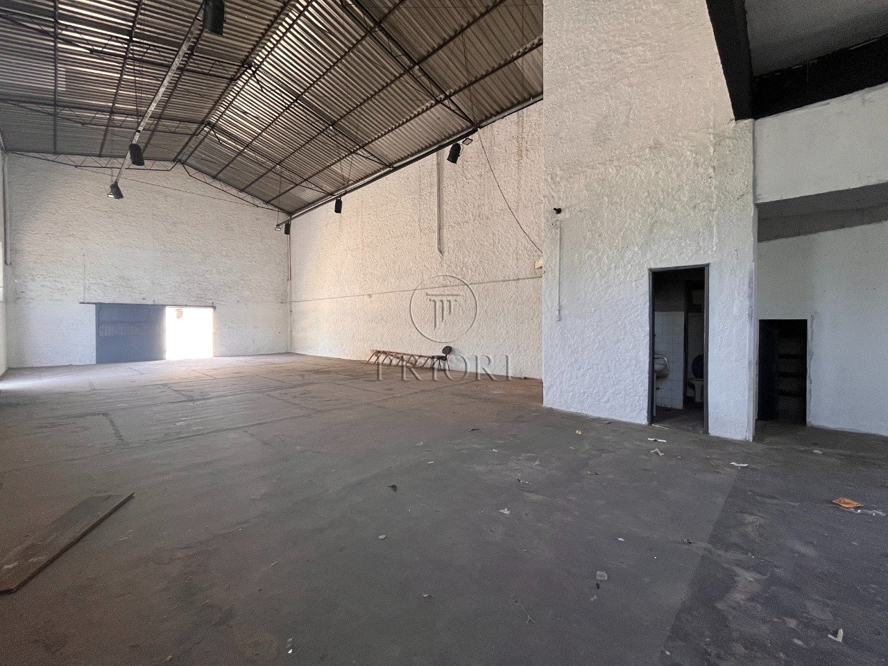Depósito com 318m² de área privativa, pé direto alto, acesso para caminhões, banheiro e mezanino.