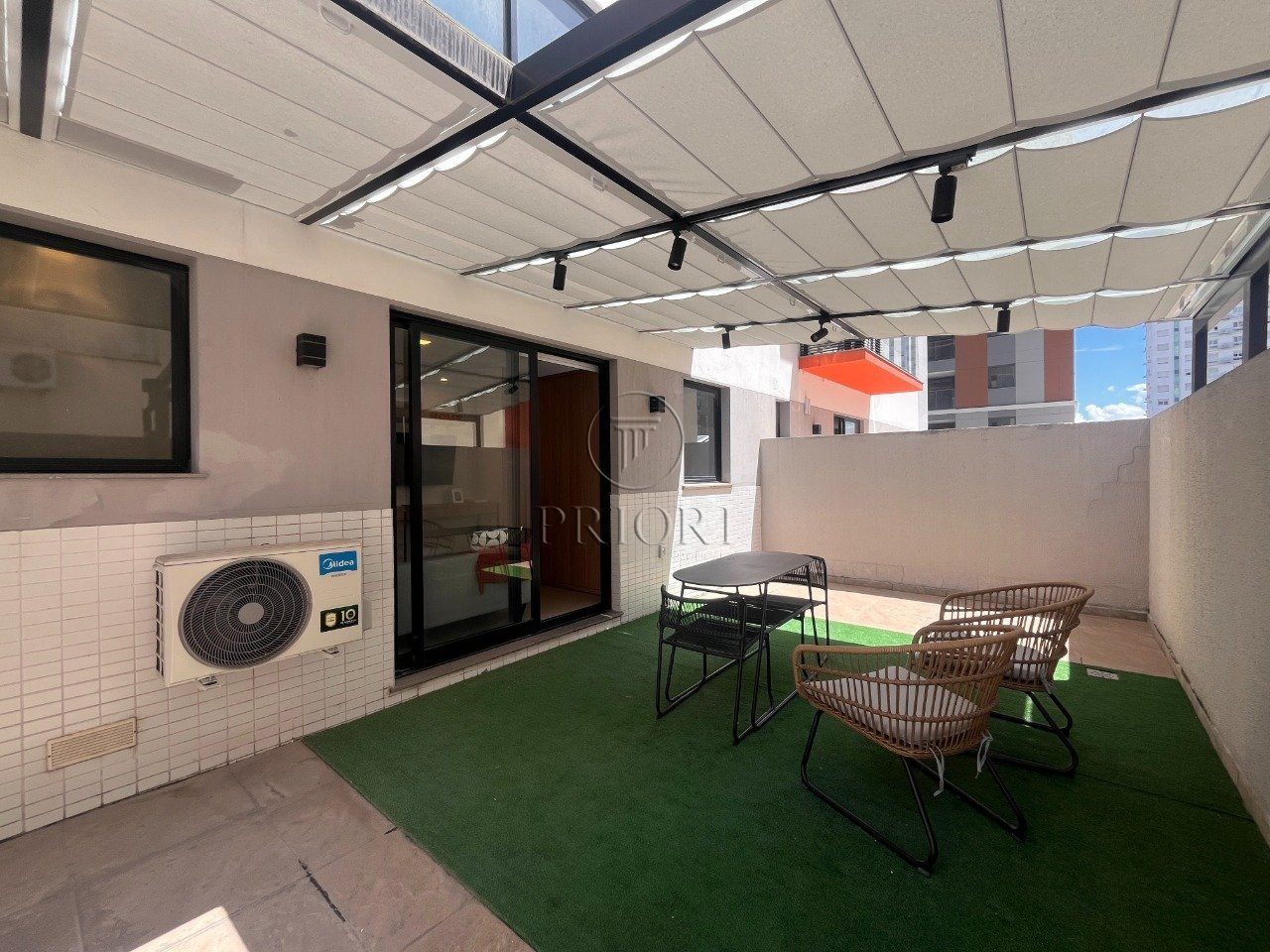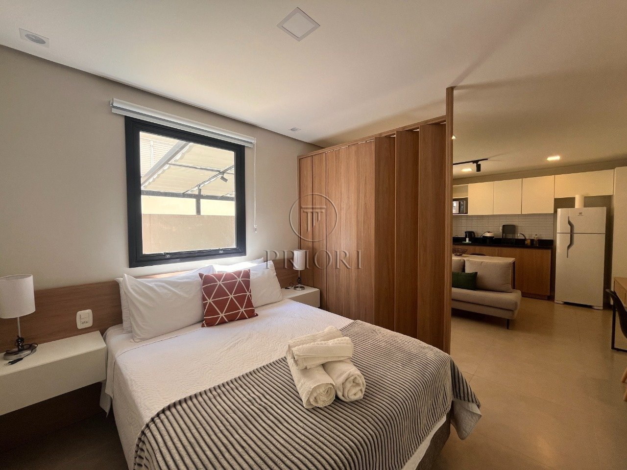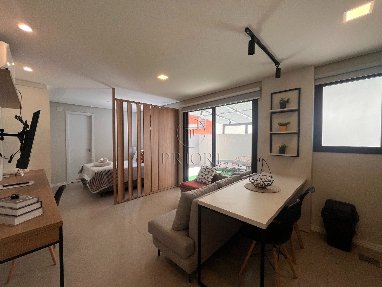 Loft totalmente mobiliado. com 64m² de área privativa, sendo 34m² de Garden, cozinha, living, dormitório e banheiro. Apartamento é equipado com junker e dispõem de vaga de garagem rotativa.