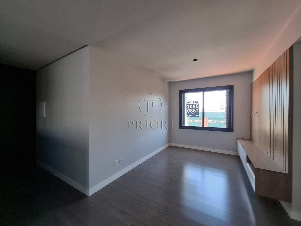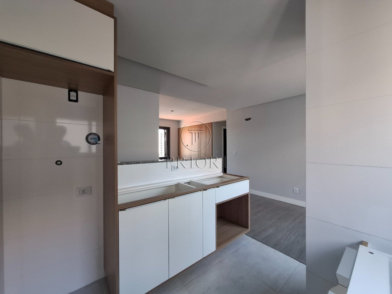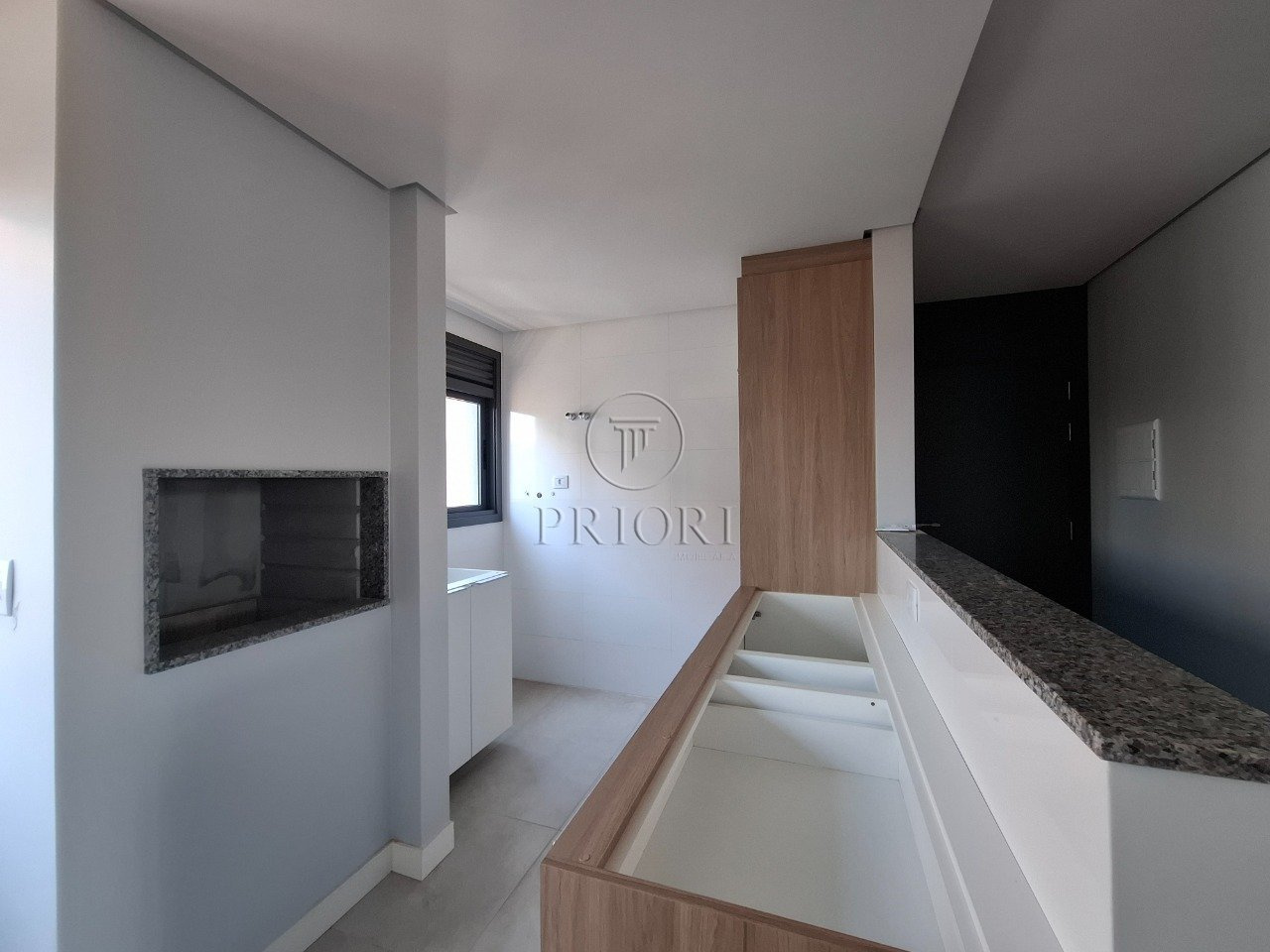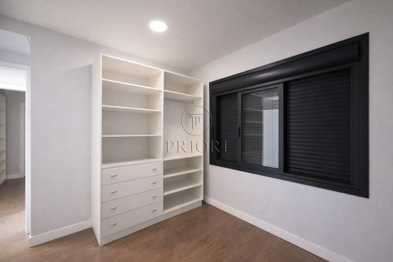 O imóvel dispõe de living para 2 ambientes, cozinha americana planejada com churrasqueira e área de serviço integrada, 2 dormitórios sendo um suíte, ambos com armários e persianas automatizada, além de espera para climatização em todo o apartamento.