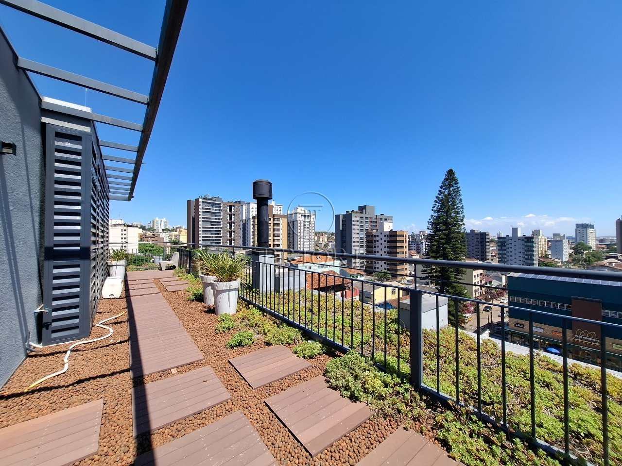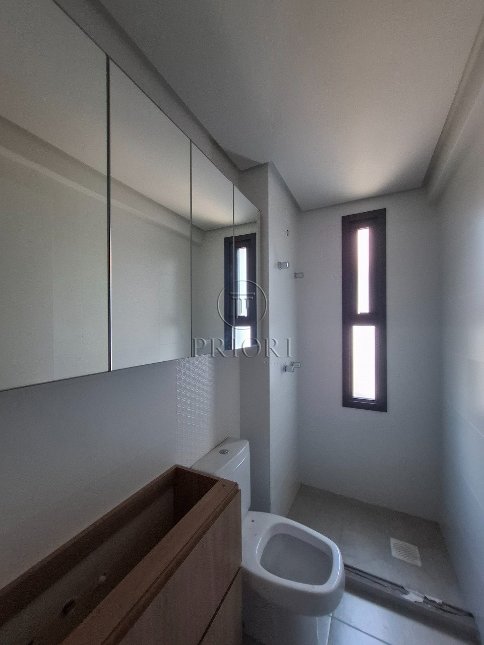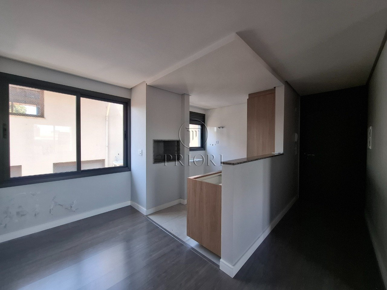 O imóvel dispõe de living para 2 ambientes, cozinha americana planejada com churrasqueira e área de serviço integrada, 2 dormitórios sendo um suíte, ambos com armários e persianas automatizada, além de espera para climatização em todo o apartamento.