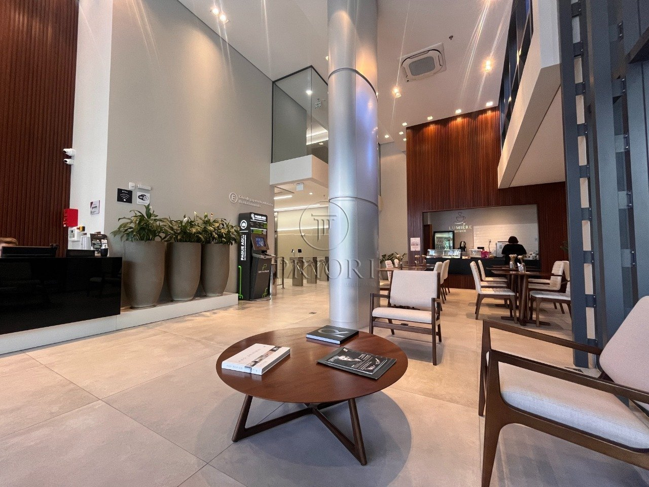 Condomínio com elevador, cafeteria, estacionamento, portaria presencial.