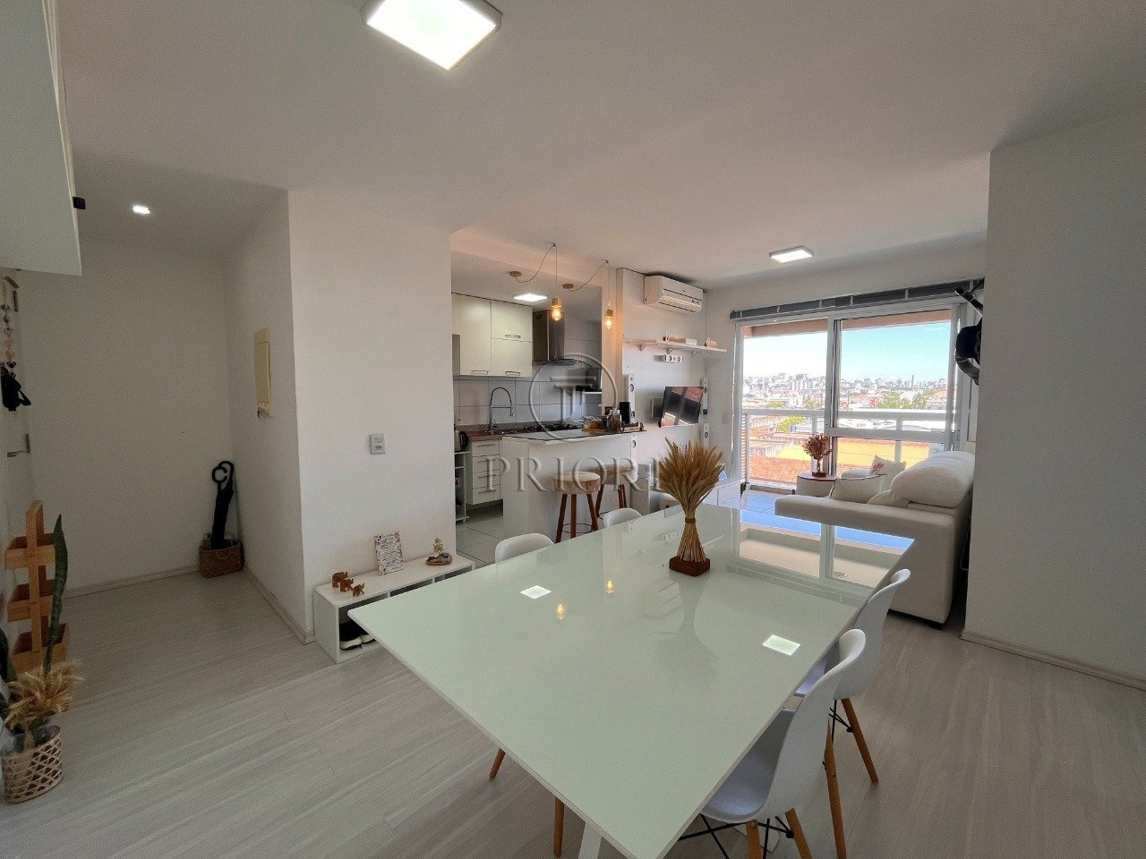 Apartamento de 2 dormitórios, sendo 1 suíte, living aconchegante com sacada, sala de jantar, cozinha com passo pratos, área de serviço, banheiro social e com junker.
