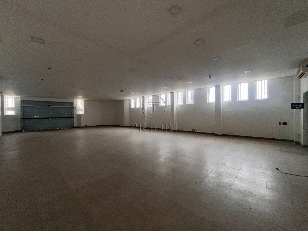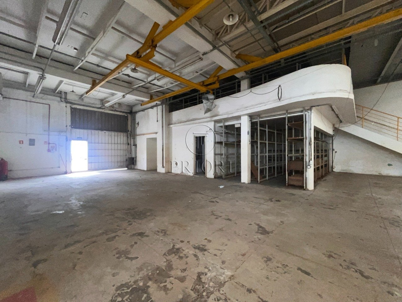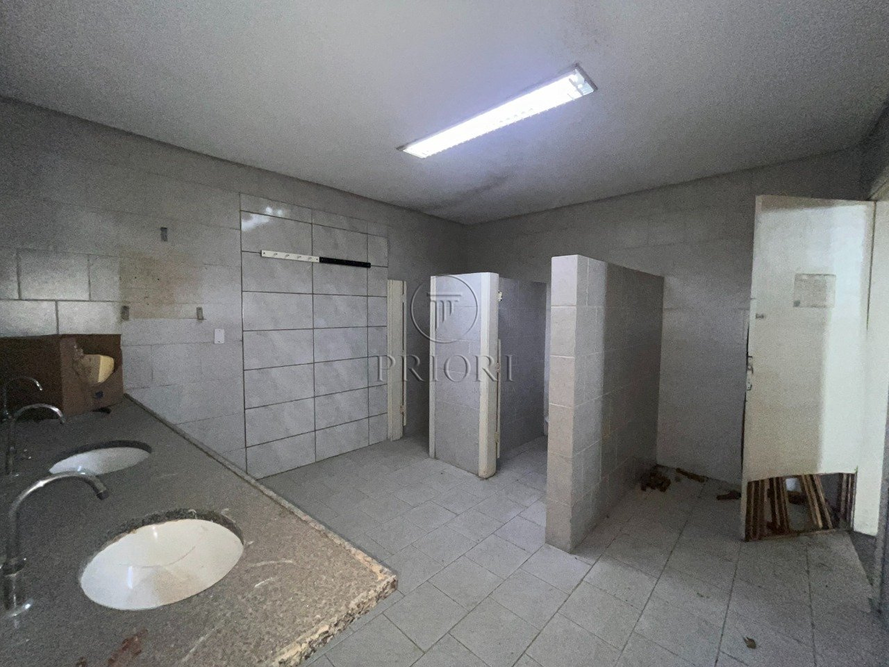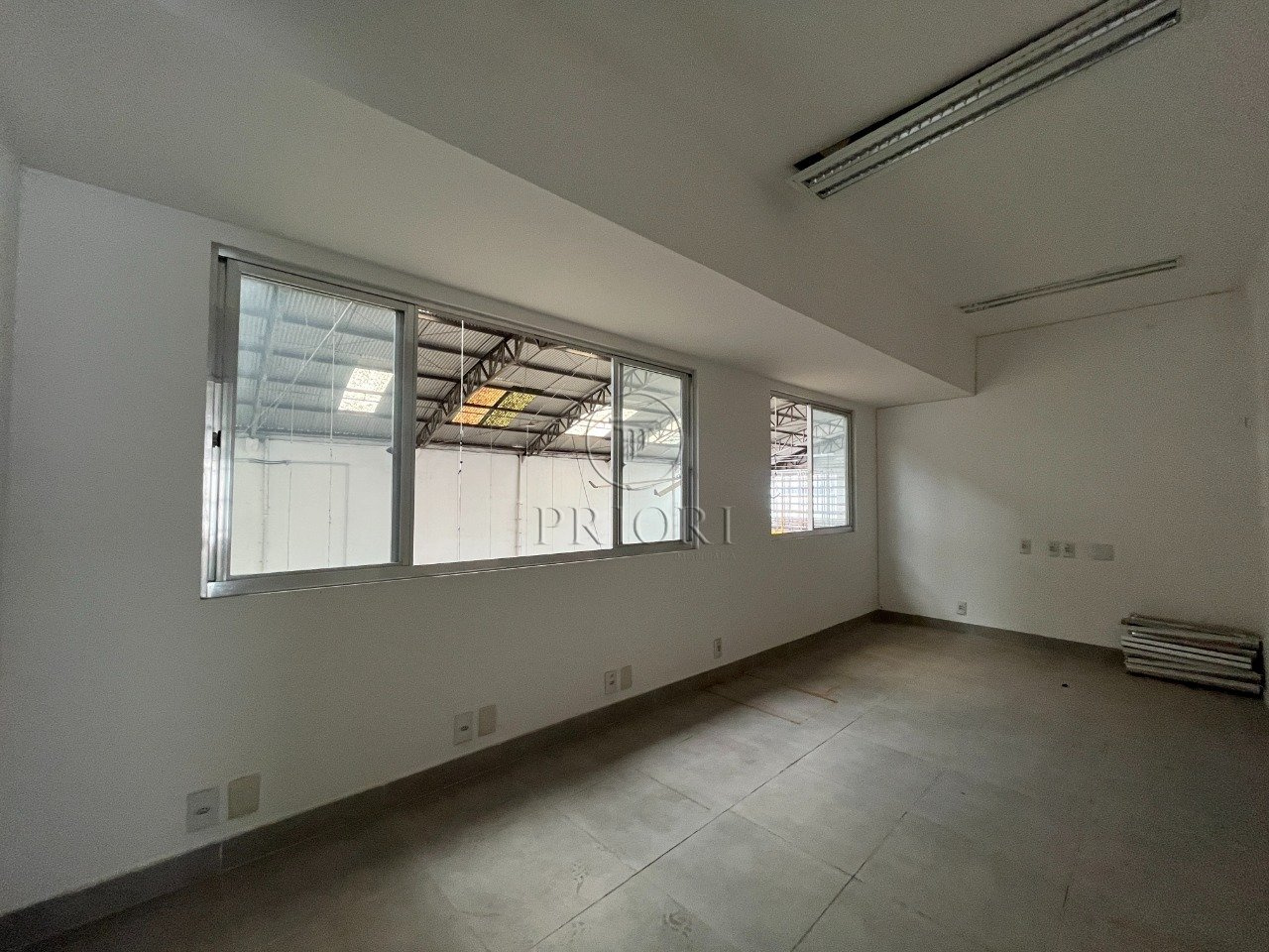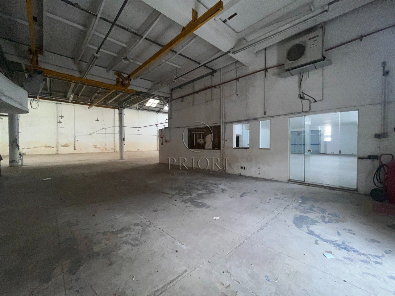 Depósito com 1400m² de área privativa, pé direto alto, mezanino com espaço para armazenamento e salas para escritórios, banheiros e vestiários, refeitório e cozinha.