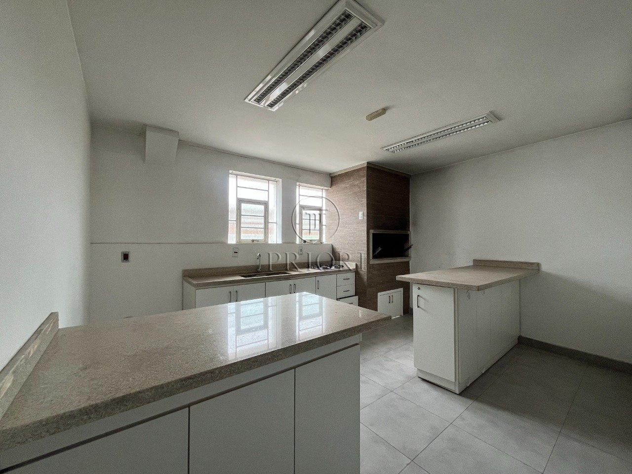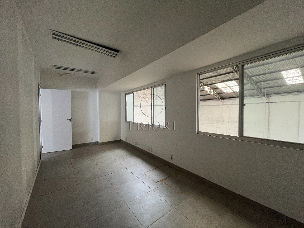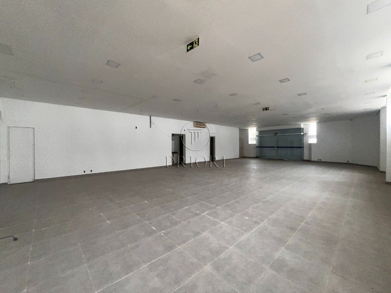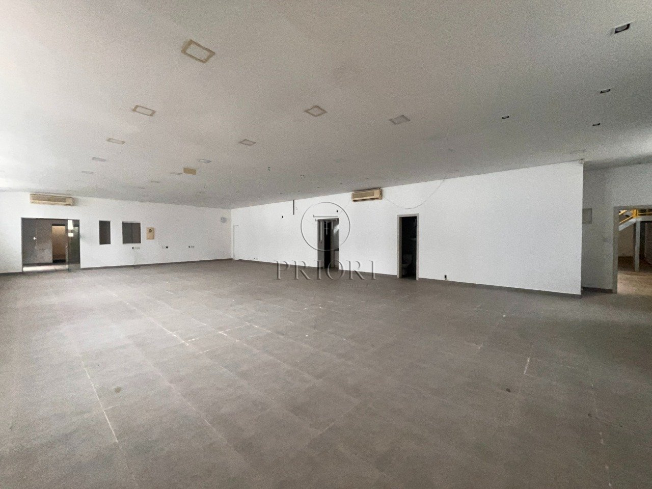 Depósito com 1400m² de área privativa, pé direto alto, mezanino com espaço para armazenamento e salas para escritórios, banheiros e vestiários, refeitório e cozinha.