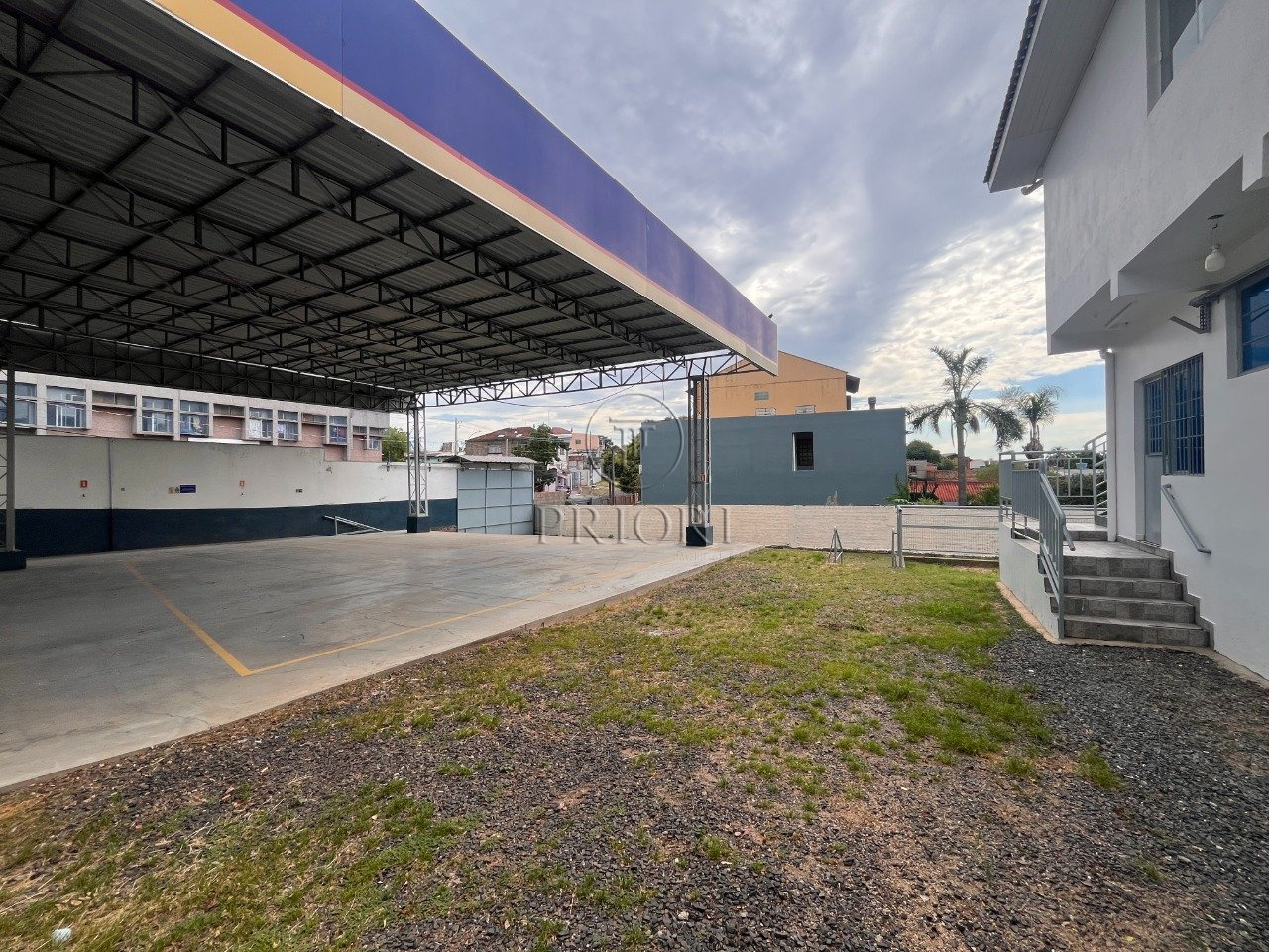 Depósito com 1100m² de área privativa, possui área adaptada para armazenamento de gás, prédio com 2 pavimentos, sendo 1 loja com lavabo e porta cortina de ferro, e no 2 andar possui 2 salas, vestiários e cozinha, o prédio também possui em escritório.