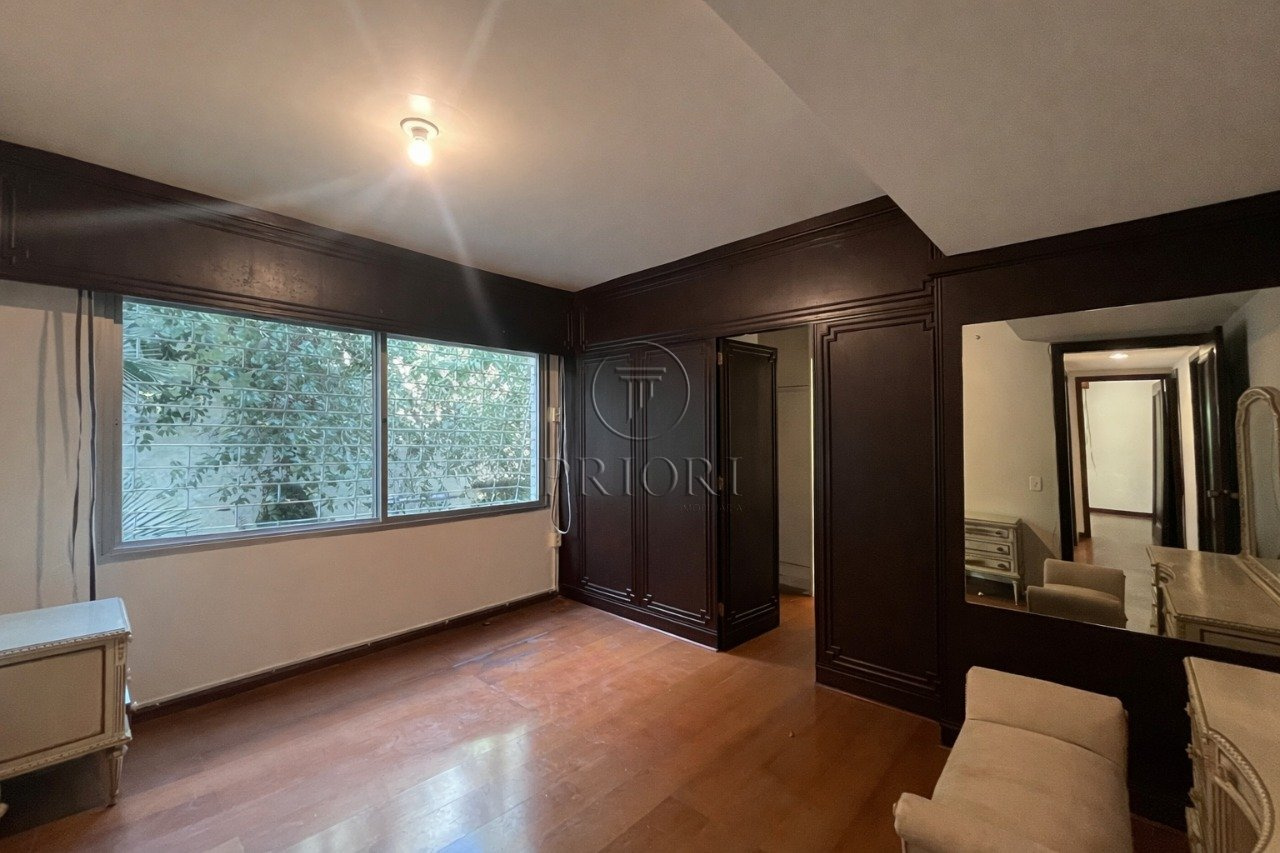 Apartamento com 150m² de área privativa, hall de entrada com lavabo, living amplo integrado com a sala de jantar, cozinha, área de serviço separada com porta auxiliar, dependência de empregada e banheiro, área intima para acesso aos 3 dormitórios, sendo 1 suíte máster e banheiro social, ar condicionado central no imóvel, junker e vaga de garagem.
