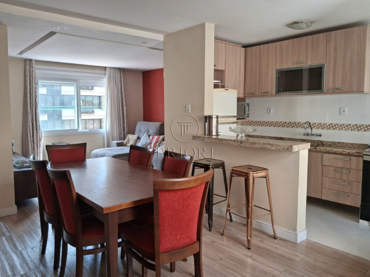 O imóvel dispõe de 120m², living para dois ambientes climatizado, cozinha americana planejada, dois banheiros sendo um lavabo e um social e dois amplos dormitórios sendo um com split.
