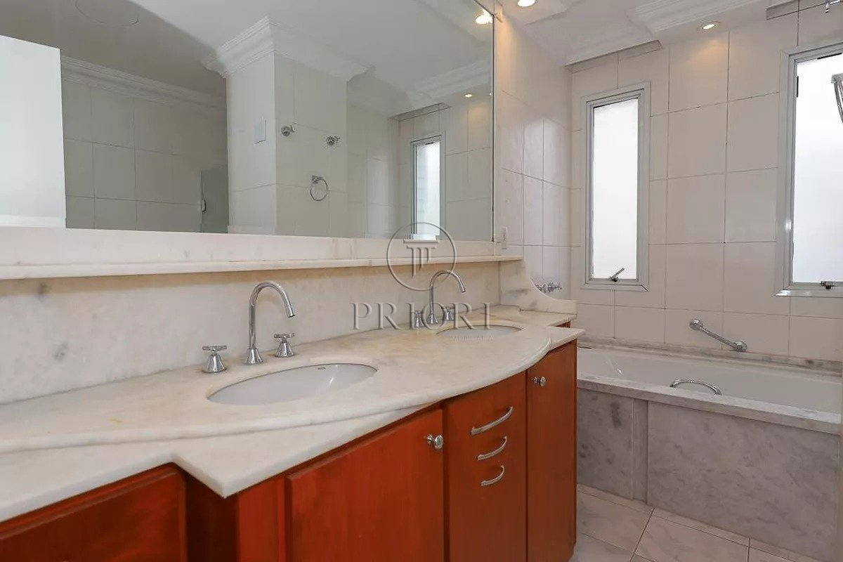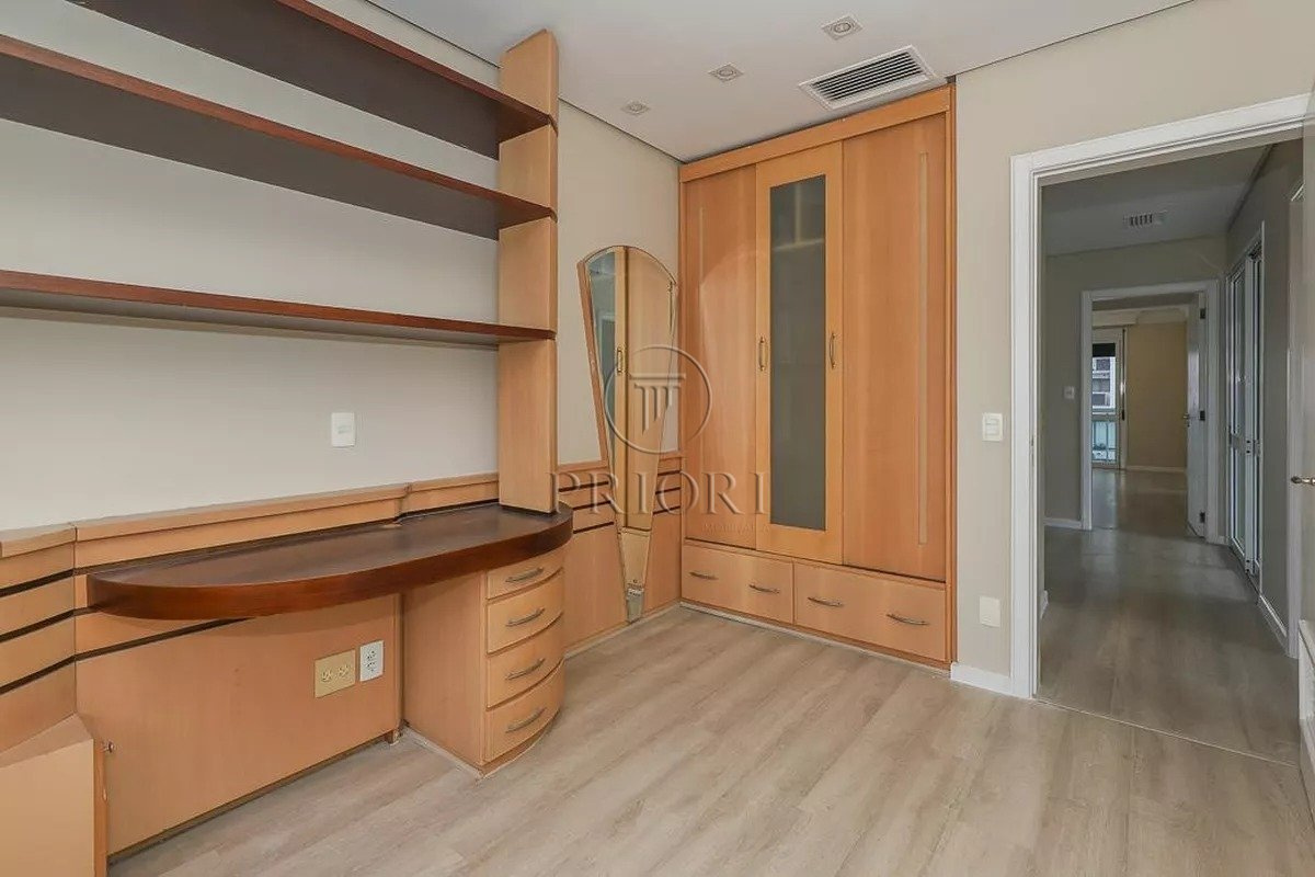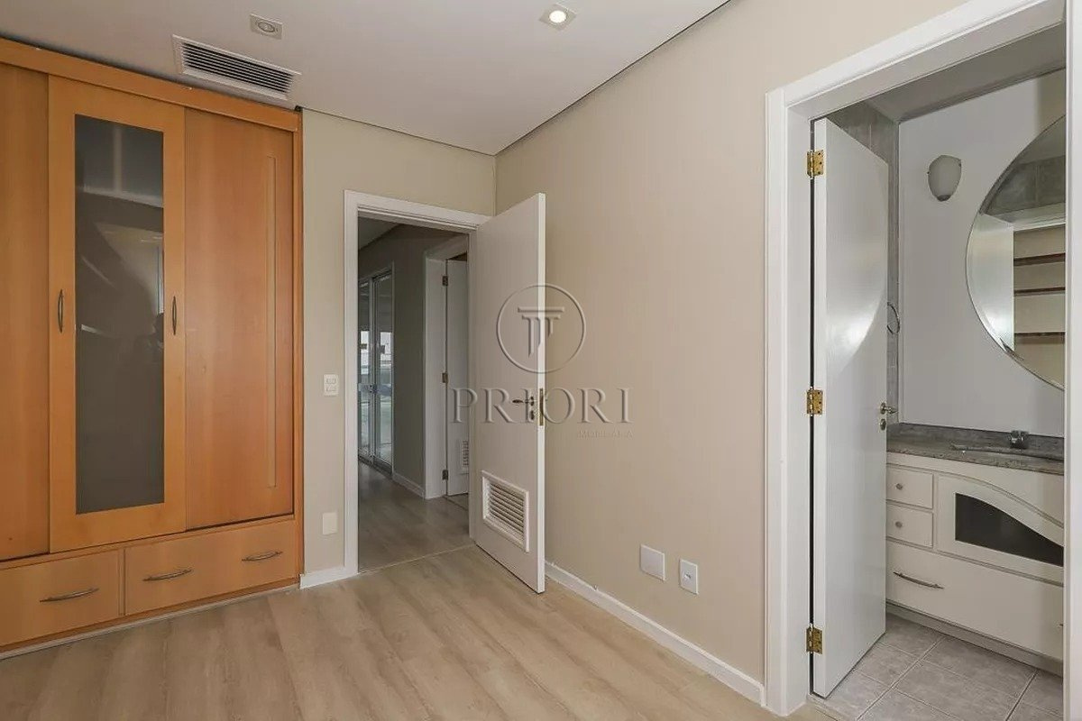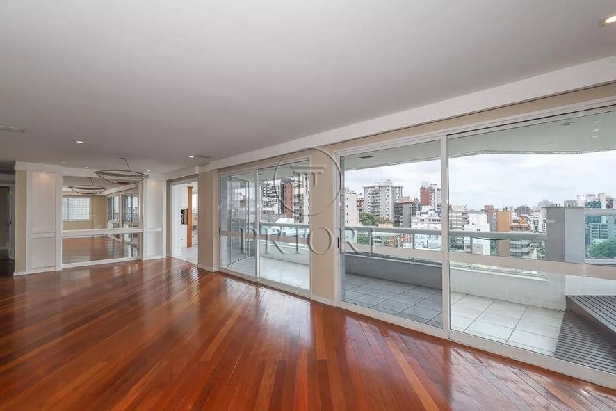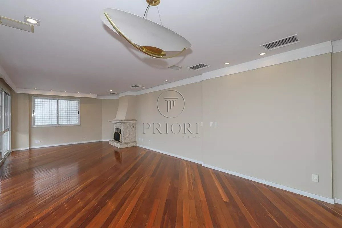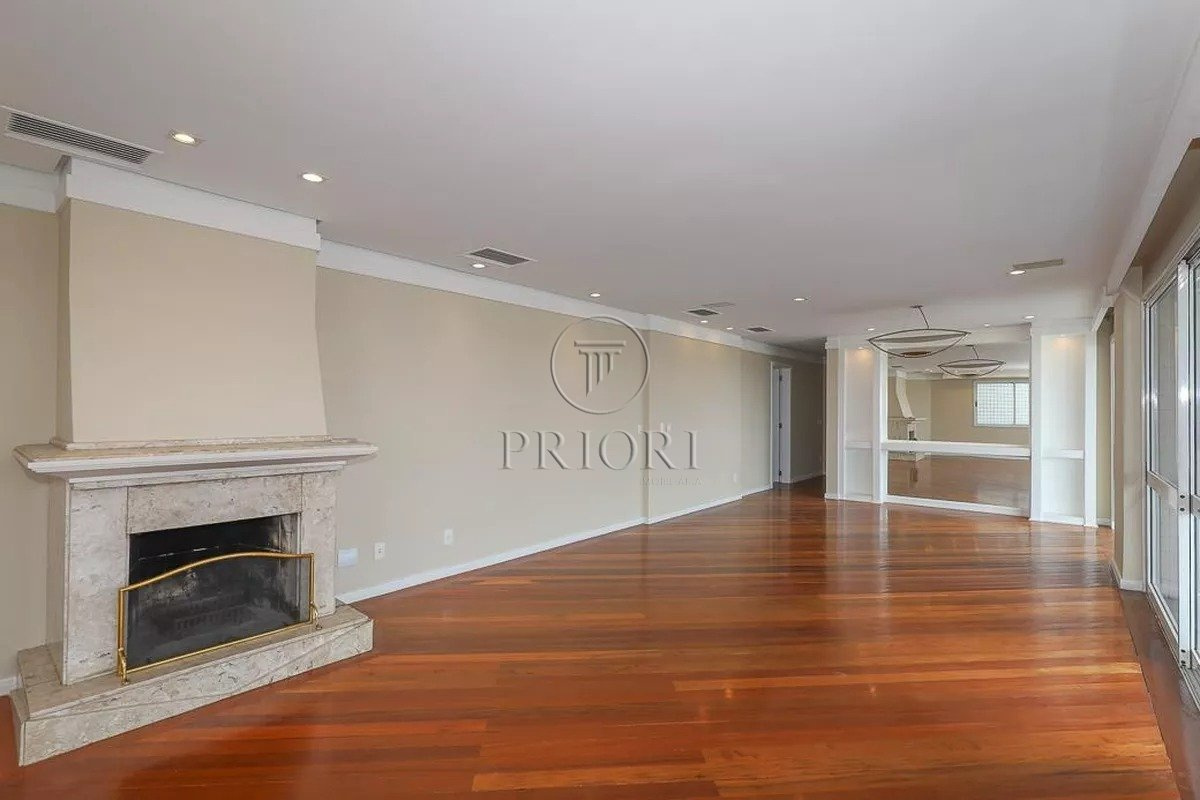 Apartamento com 228m² privativos, distribuído em 3 suítes, sendo uma com closet, lavabo e mais 3 banheiros. Área social ampla com living, sala de jantar, lareira e estar íntimo, integrada à sacada com churrasqueira, deck e jacuzzi, com vista panorâmica.