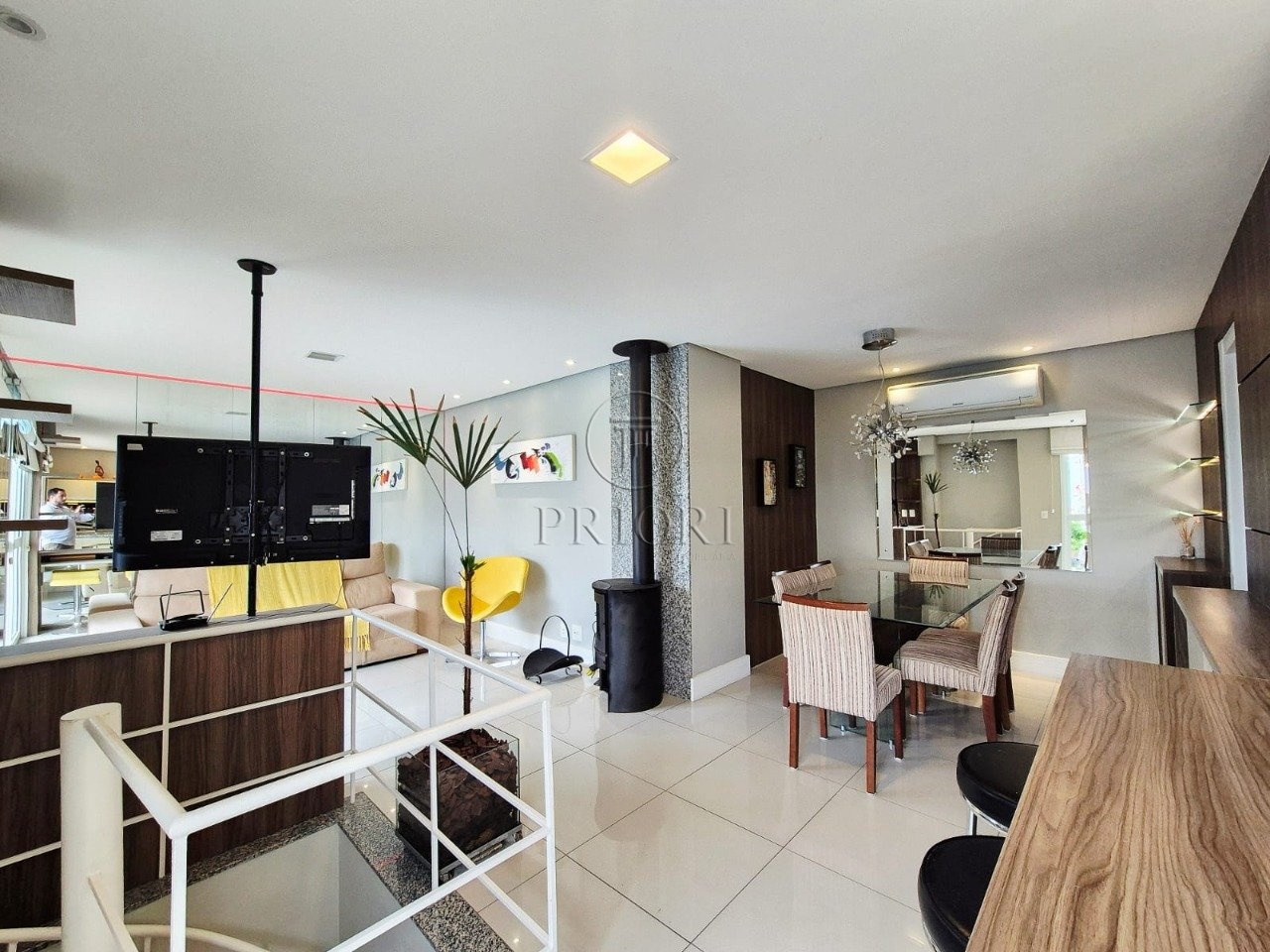 Já a parte superior é composta por um amplo living para dois ambientes e um belíssimo espaço com churrasqueira, ideal para reunir a familia e amigos aos finais de semana. banheiro social bem arejado e ventilado.