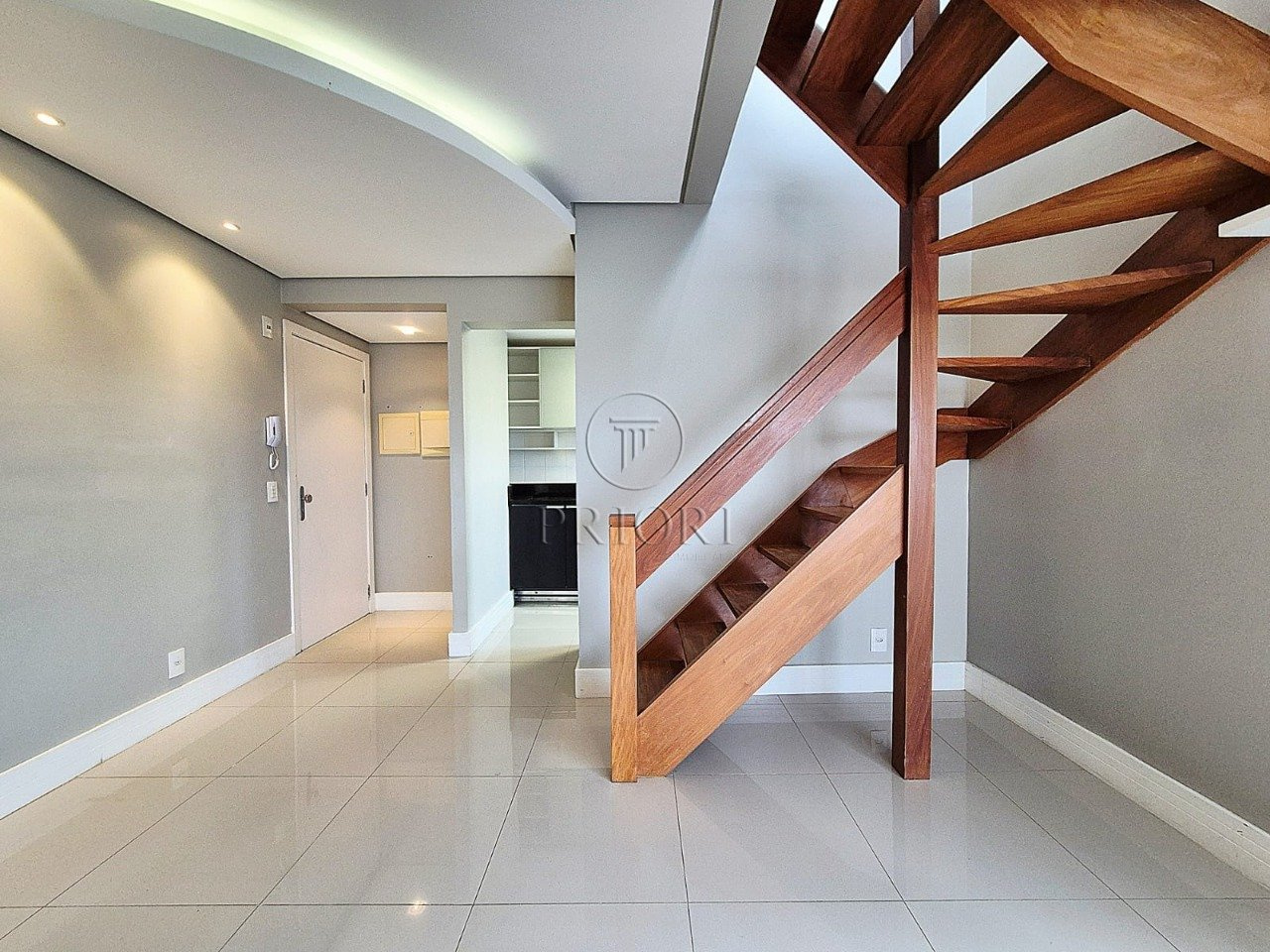 A parte inferior dispõe de um dormitório bem amplo, ensolarado, climatizado e com armários planejados sob medida. Banheiro social bem arejado e ventilado, azulejos e piso frio em perfeito estado de conservação. Living para dois ambientes bem definidos, aberturas grandes possibilitando maior luminosidade, total privacidade e silêncio, vista perene e definida, cortinas automazadas, sanca em gesso com iluminação diferenciada. Cozinha montada e equipada com armários planejados sob medida e área de serviço integrada.