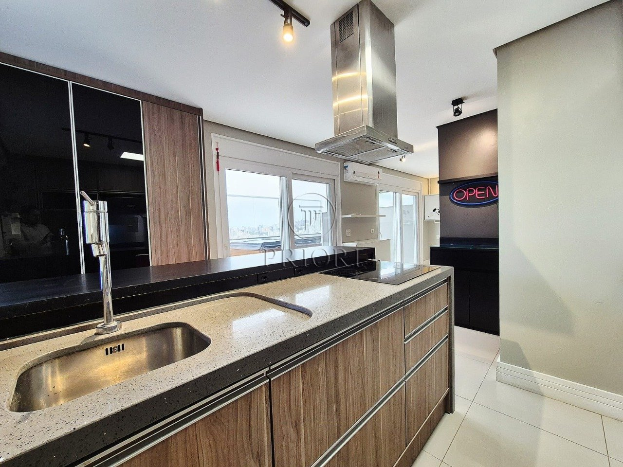 Já a parte superior é composta de uma bela cozinha americana em ilha, montada e equipada com armários planejados sob medida e eletrodomésticos. Banheiro social com banheira de hidro. Sala de estar, ideal para montar um escritório ou receber a familia e amigos aos finais de semana. A cereja do bolo é composta de um imenso terraço com piscina e churrasqueira privativa.