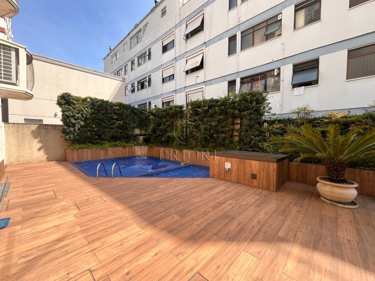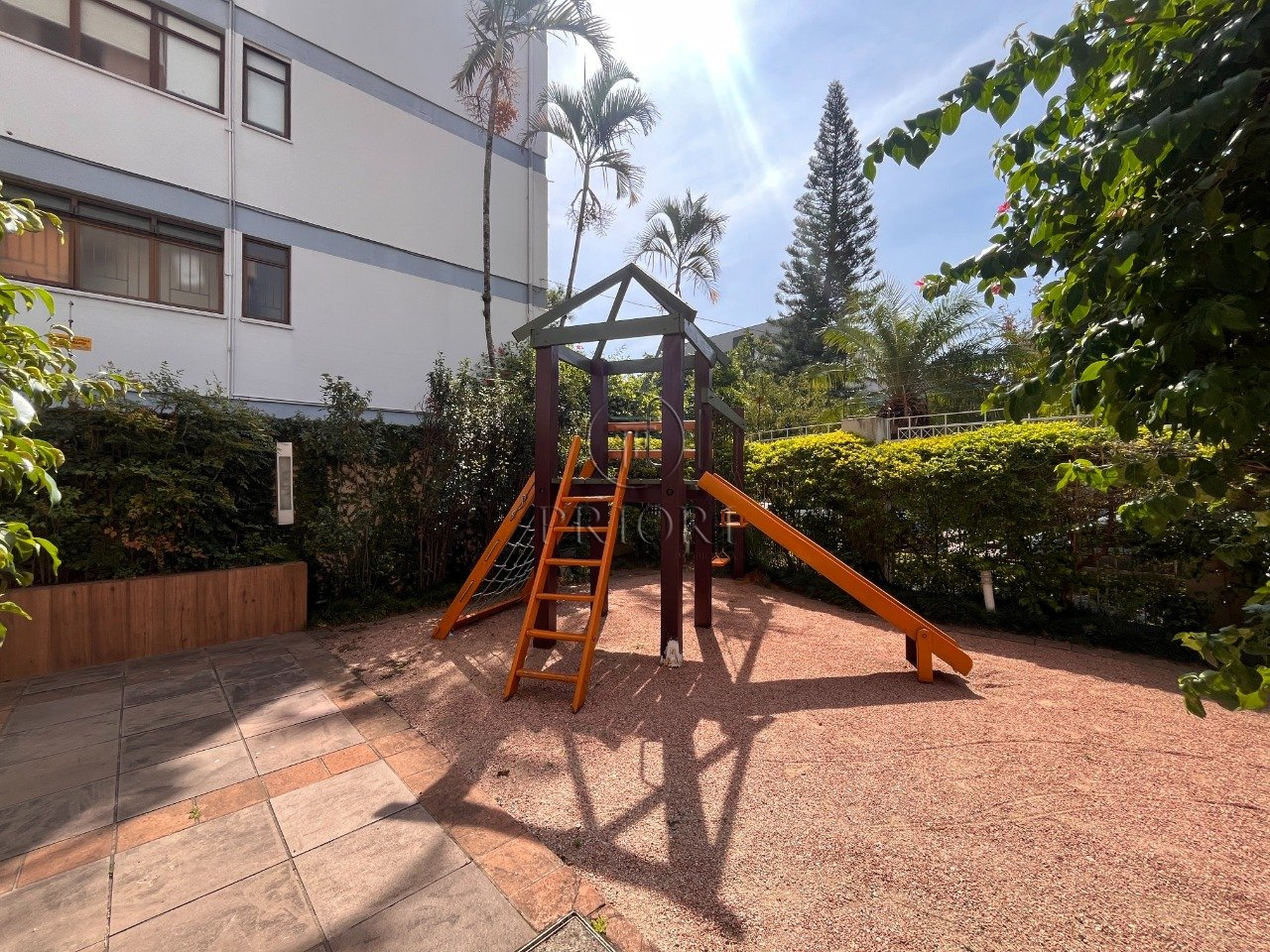 Condomínio com portaria 24h presencial, elevador social e de serviço, piscina, salão de festas e playground.