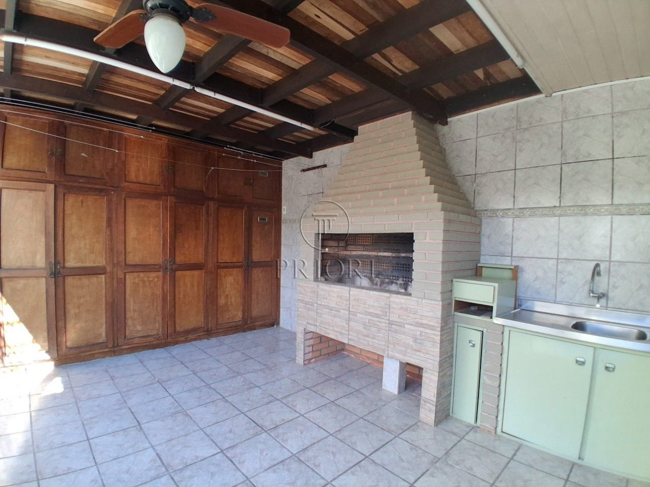 Nos fundos, há um espaço fechado com churrasqueira, banheiro e área livre, com possibilidade de uso como salão de festas ou adaptação para dormitório.