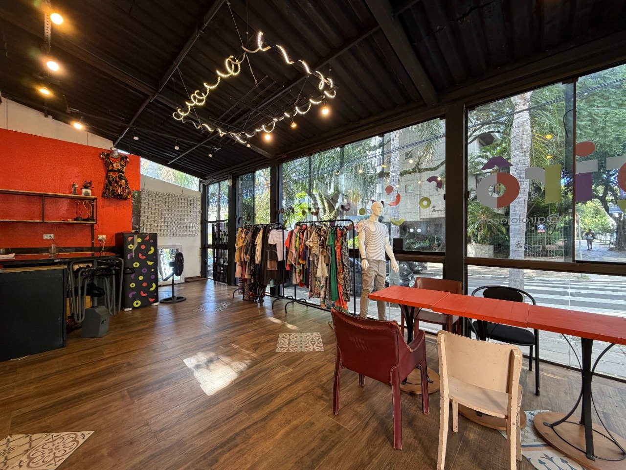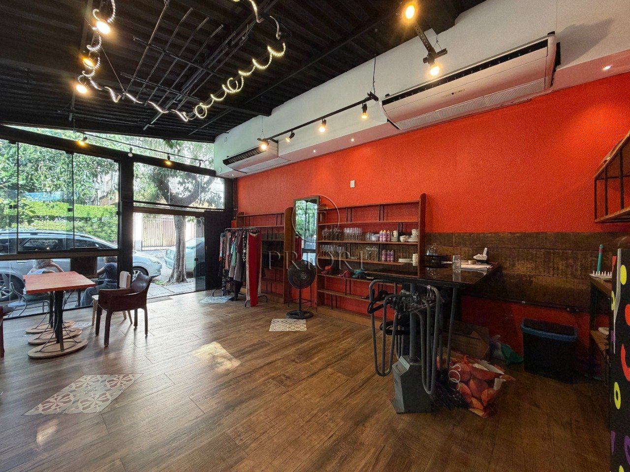 Loja com 50m² de área privativa com espaço interno amplo, cozinha, lavabo e ar condicionado.