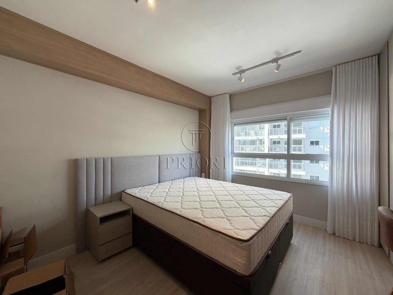 Loft com 26m² de área privativa, totalmente mobiliado, pronto para morar, com ar condicionado e vaga de garagem rotativa.