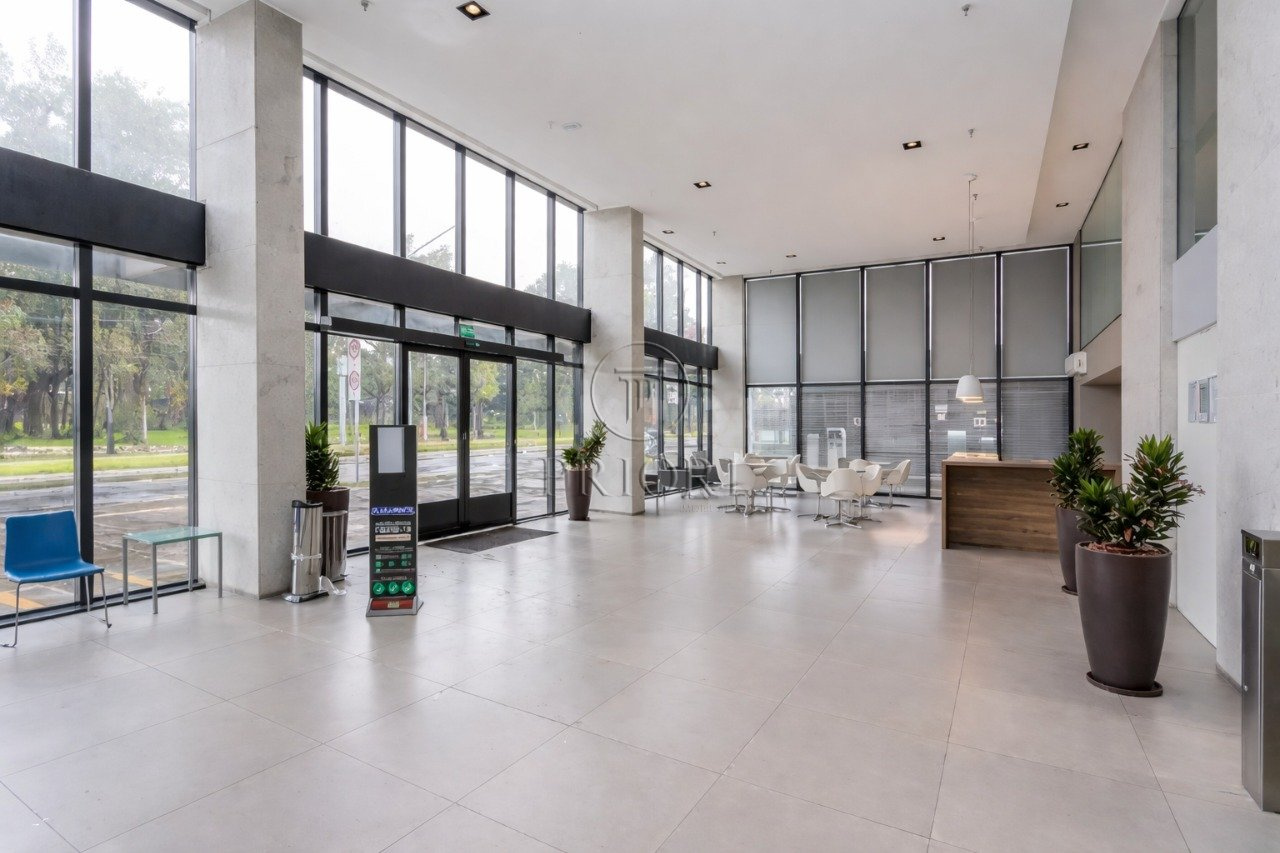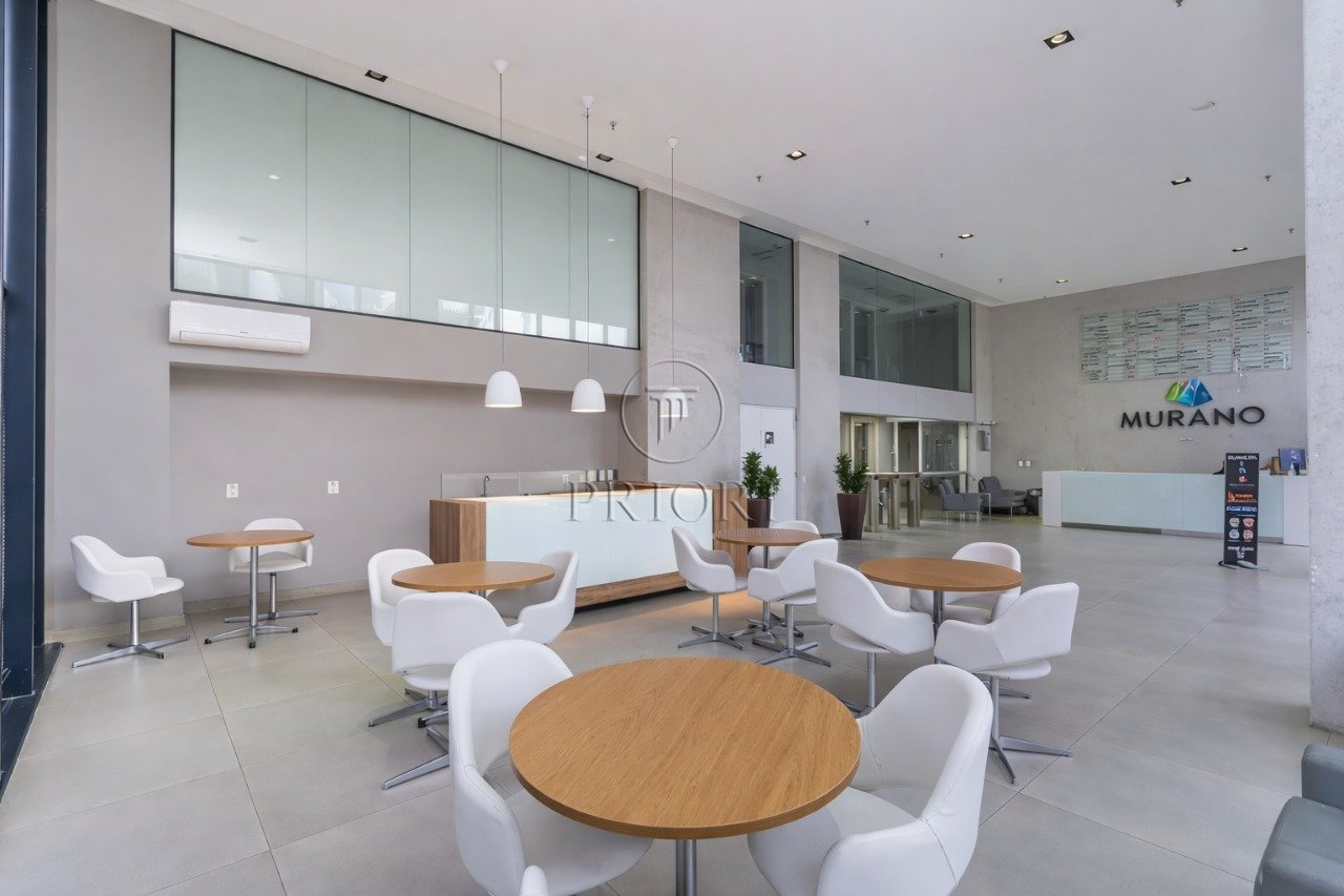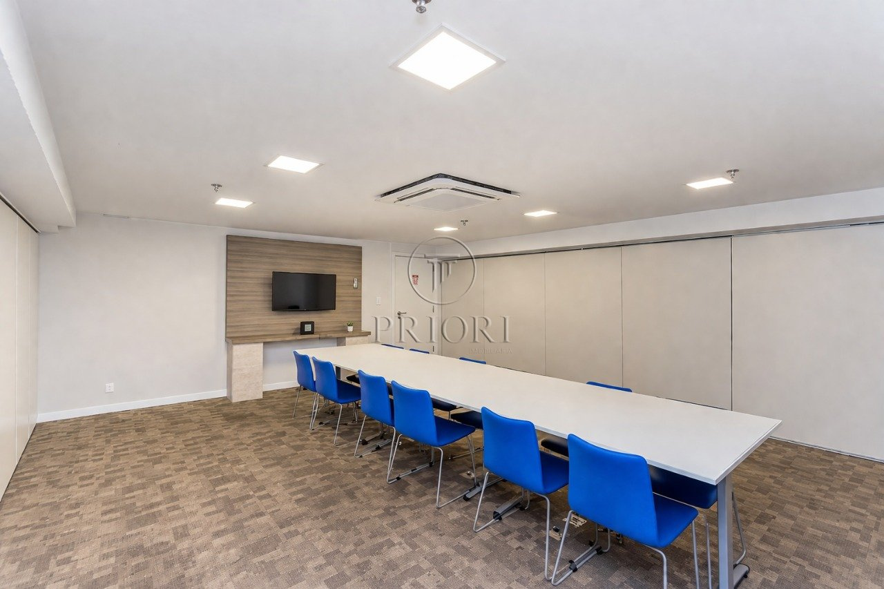 Sala com 34,50m² de área privativa, lavabo, cozinha, espera para ar condicionado Split, vista panorâmica e 2 vagas de garagem rotativas.