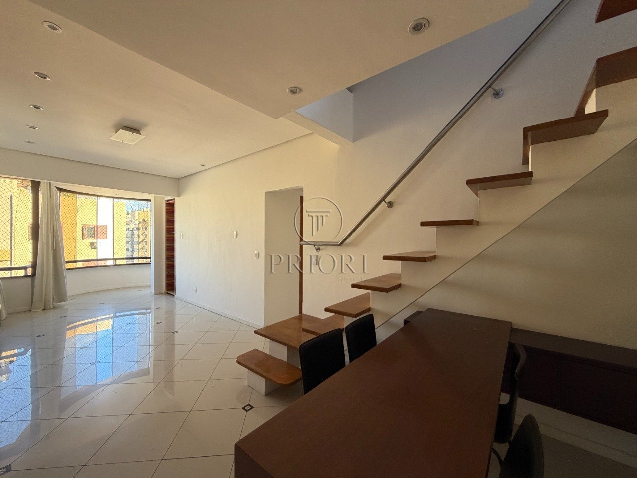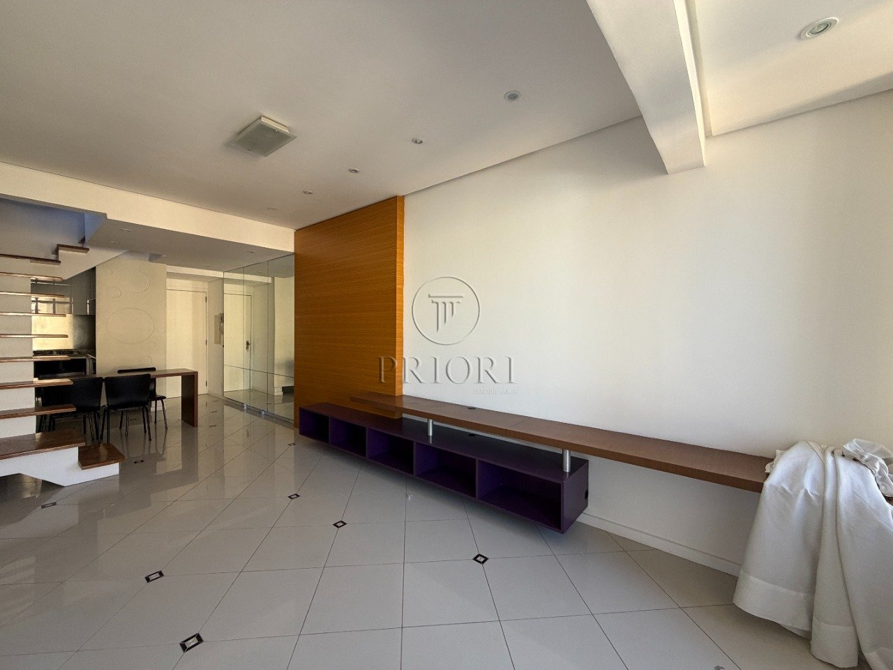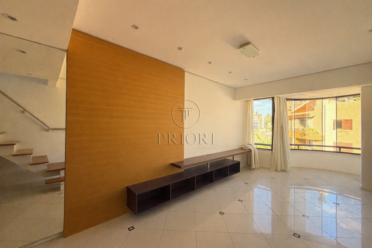 Cobertura com 142m² de área privativa, no primeiro andar temos um living aconchegante, cozinha, área de serviço separa, 2 dormitórios com ar condicionado e banheiro social.