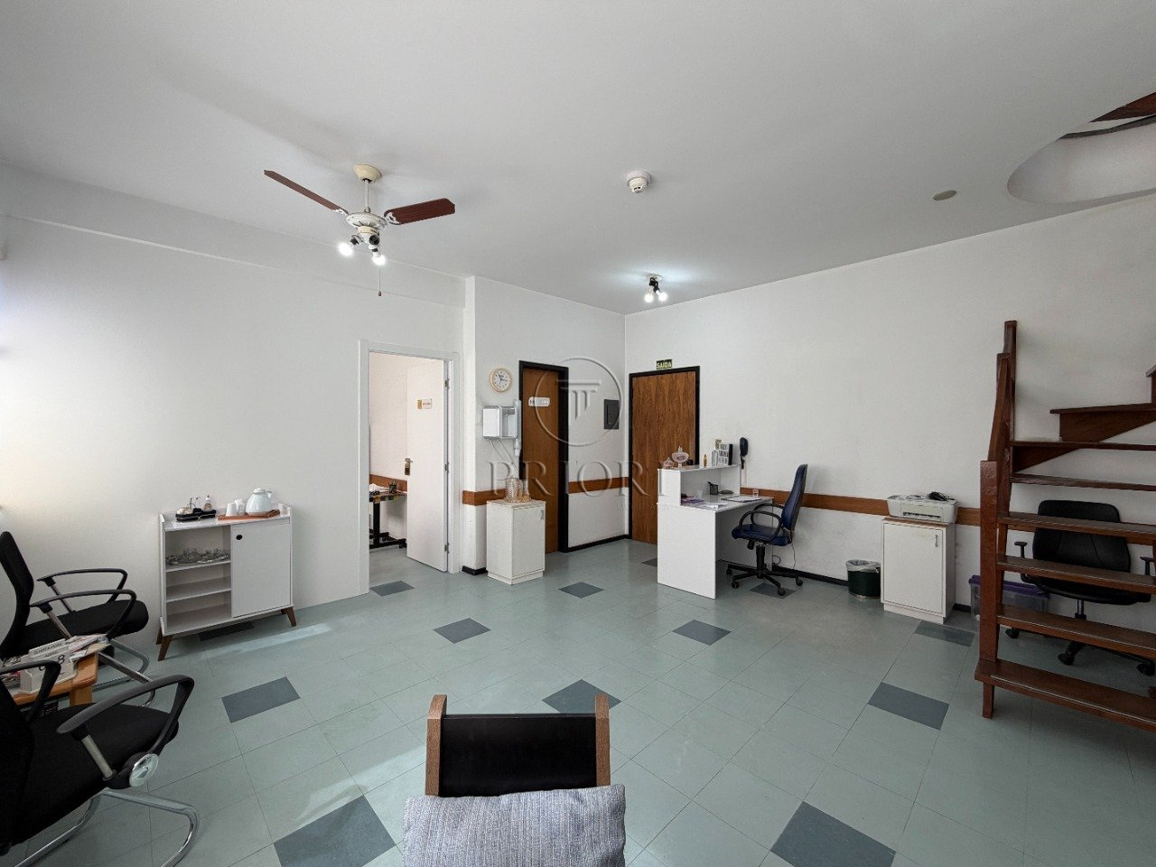 Sala comercial com 112m² de área privativa, o primeiro andar dispõem de uma recepção, 1 escritório com ar condicionado e lavabo