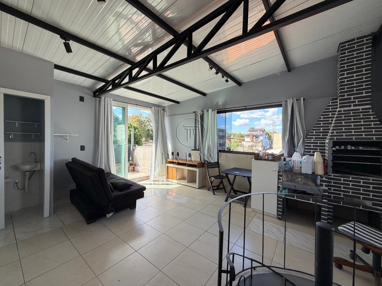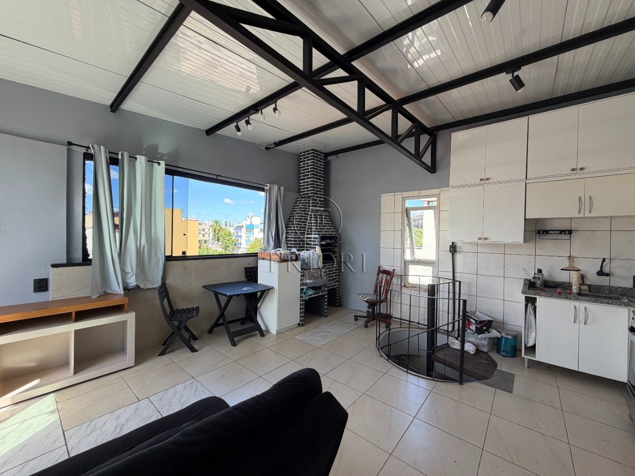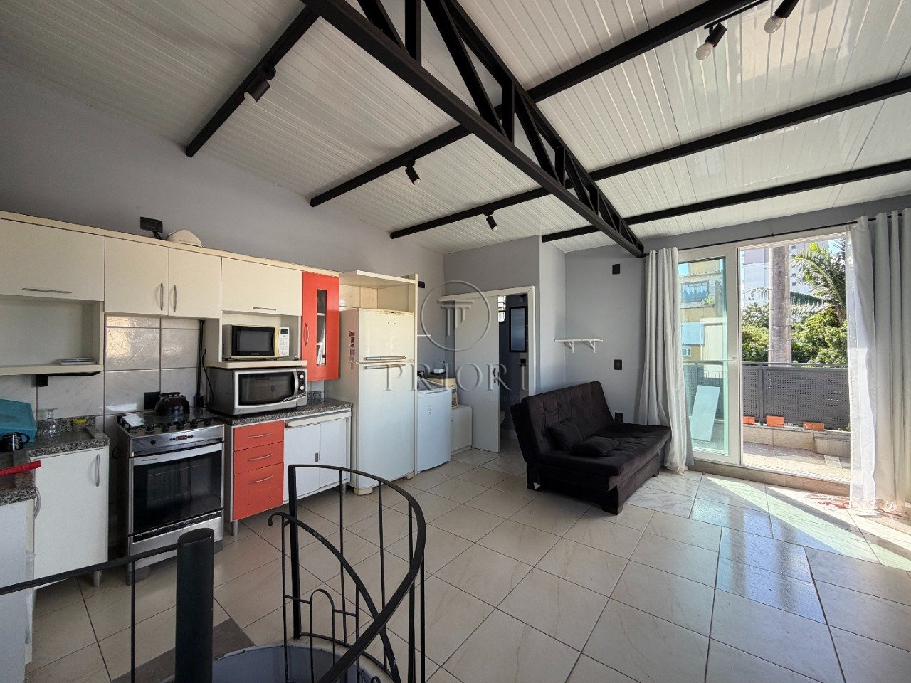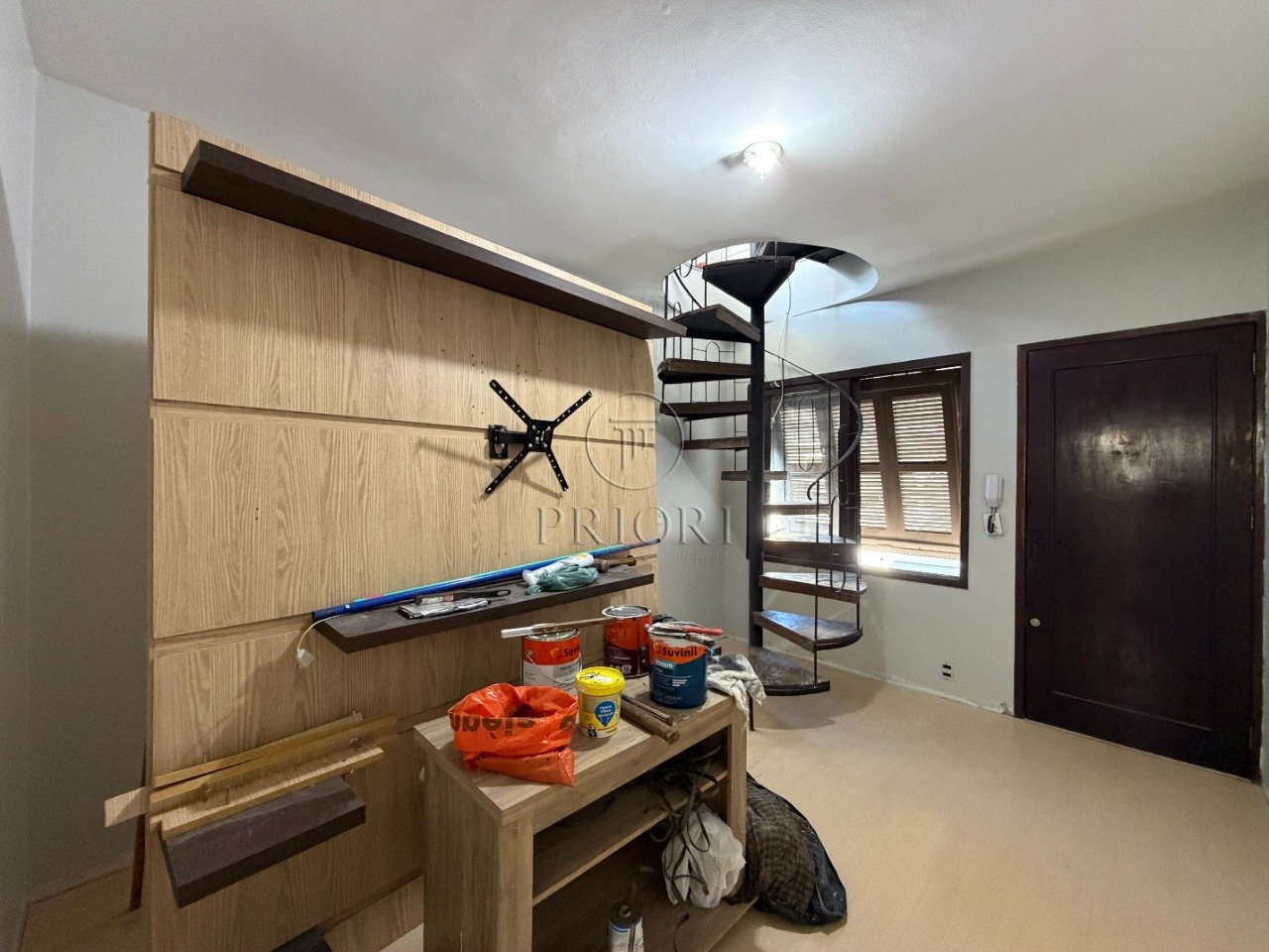 Cobertura duplex dispõem no primeiro andar um living aconchegante, 2 dormitórios, sendo 1 com sacada e ambos com ar condicionado, banheiro social.