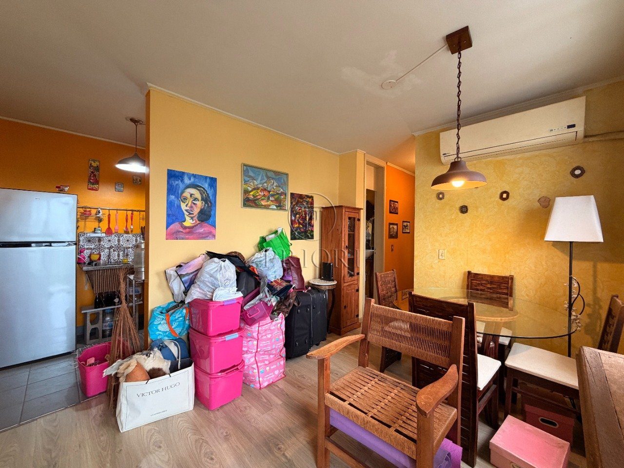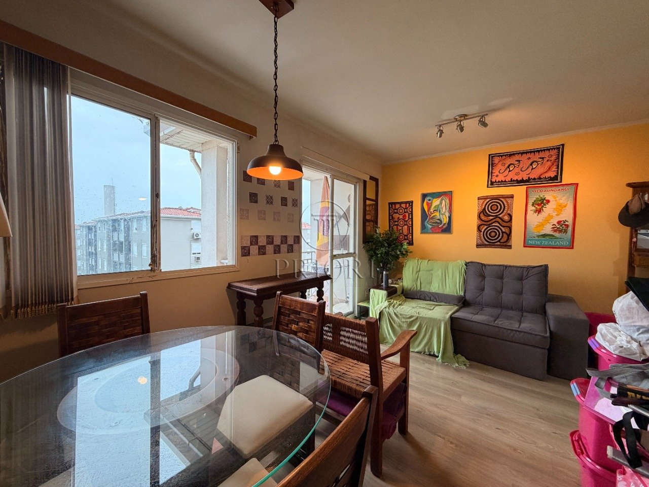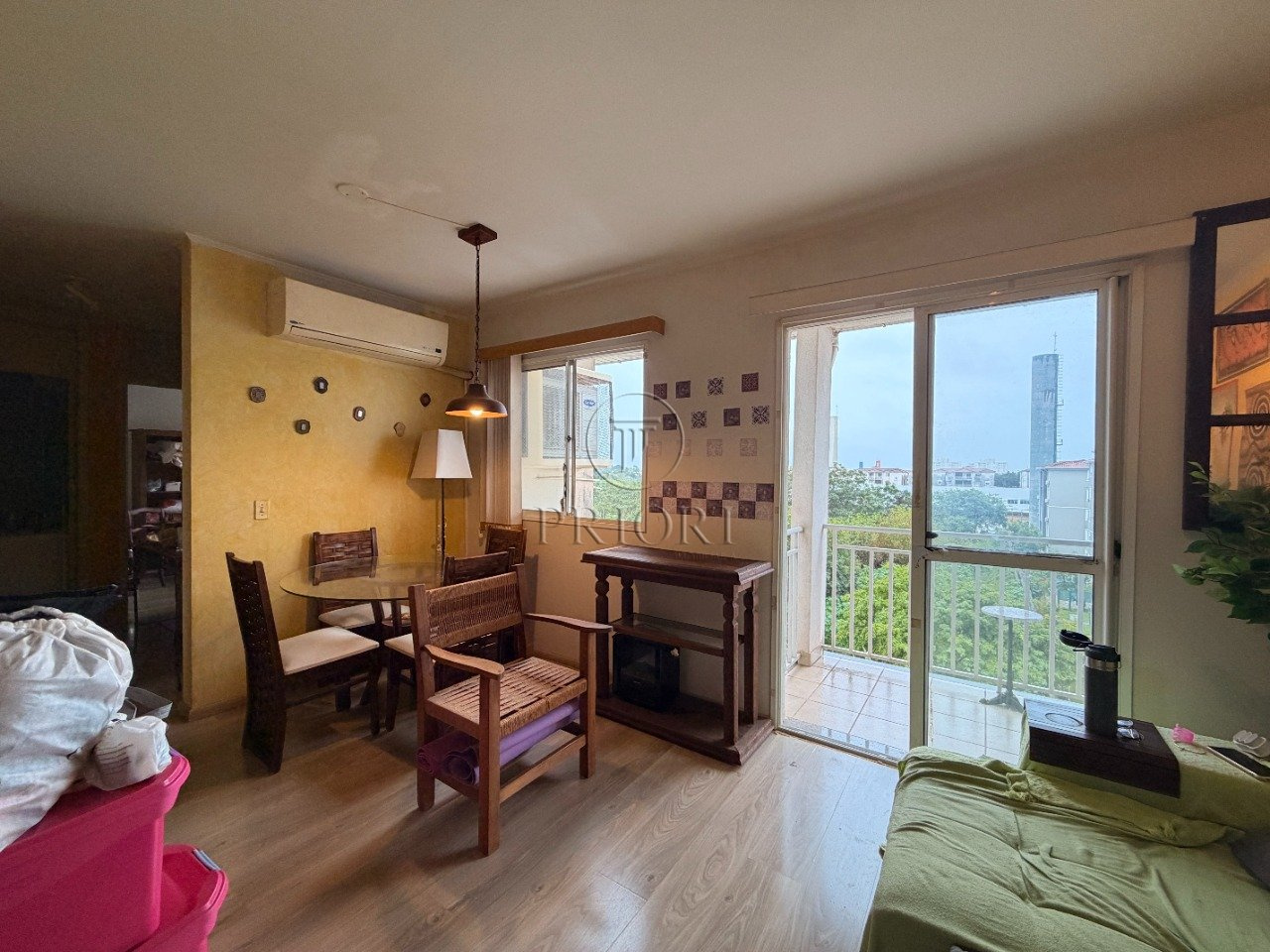 Apartamento com 69m² de área privativa, living com sacada integrada a sala de jantar, cozinha, área de serviço, 3 dormitórios, sendo 2 com ar condicionado split e 1 suíte, banheiro social, junker e vaga de garagem.