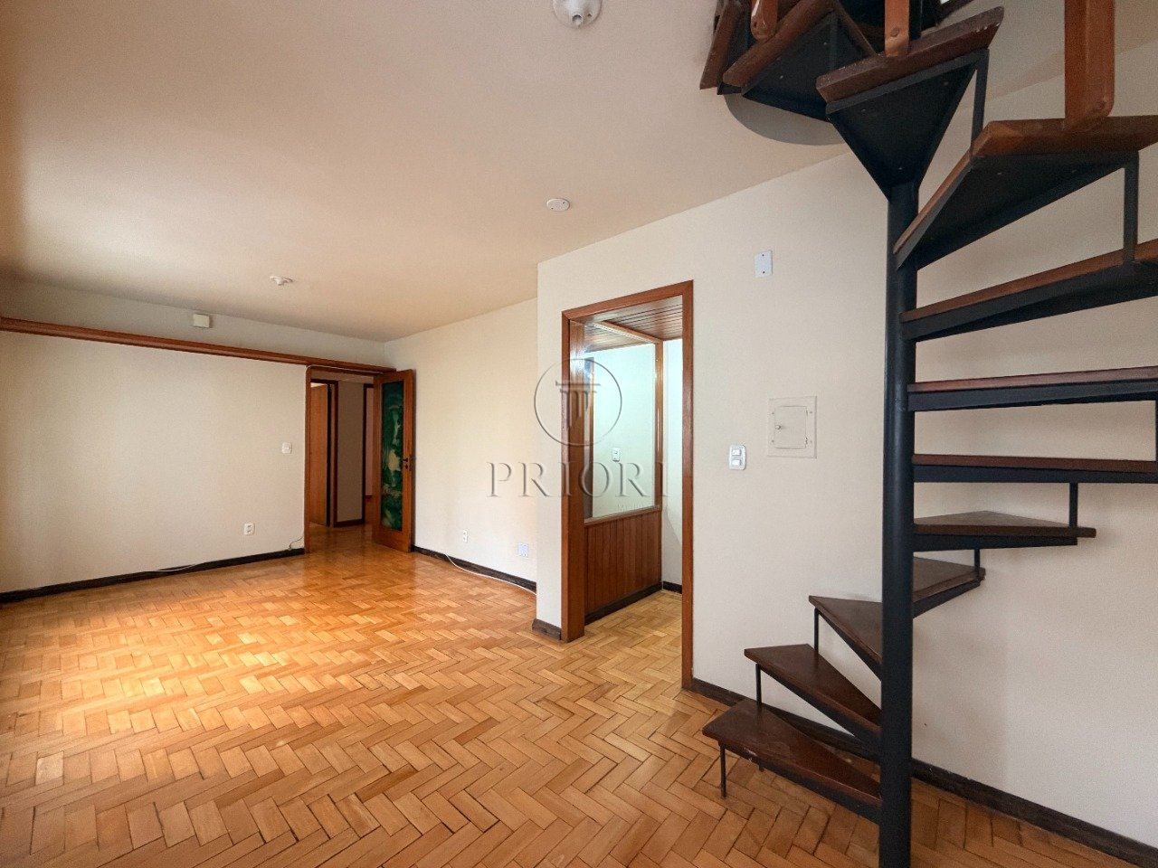 Cobertura com 150m² de área privativa, living amplo, cozinha, 3 dormitórios. sendo 1 suíte, no segundo pavimento temos uma sala com lareira, espaço gourmet com churrasqueira, lavabo, área de serviço com despensa, 1 terraço privativo e vaga de garagem.