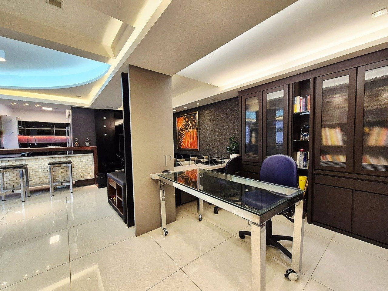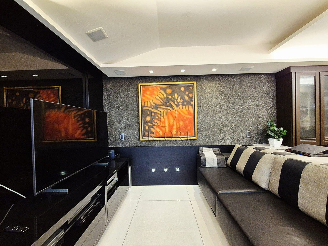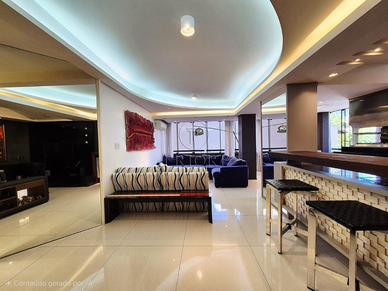O imóvel dispõe de três dormitórios sendo um com suíte master e dois com closet, todos muito amplos e ensolarados. Banheiro social finamente decorado, azulejos e piso frio com perfeito acabamento. Living para três ambientes, espelhado, com escritório, armários e os demais mobiliários. Lavabo. Cozinha estilo americana com total integração ao living com churrasqueira privativa, armários planejados sob medida e os demais eletrodomésticos necessários. Área de serviço independente com lavadora de roupas, aquecedor e tanque.