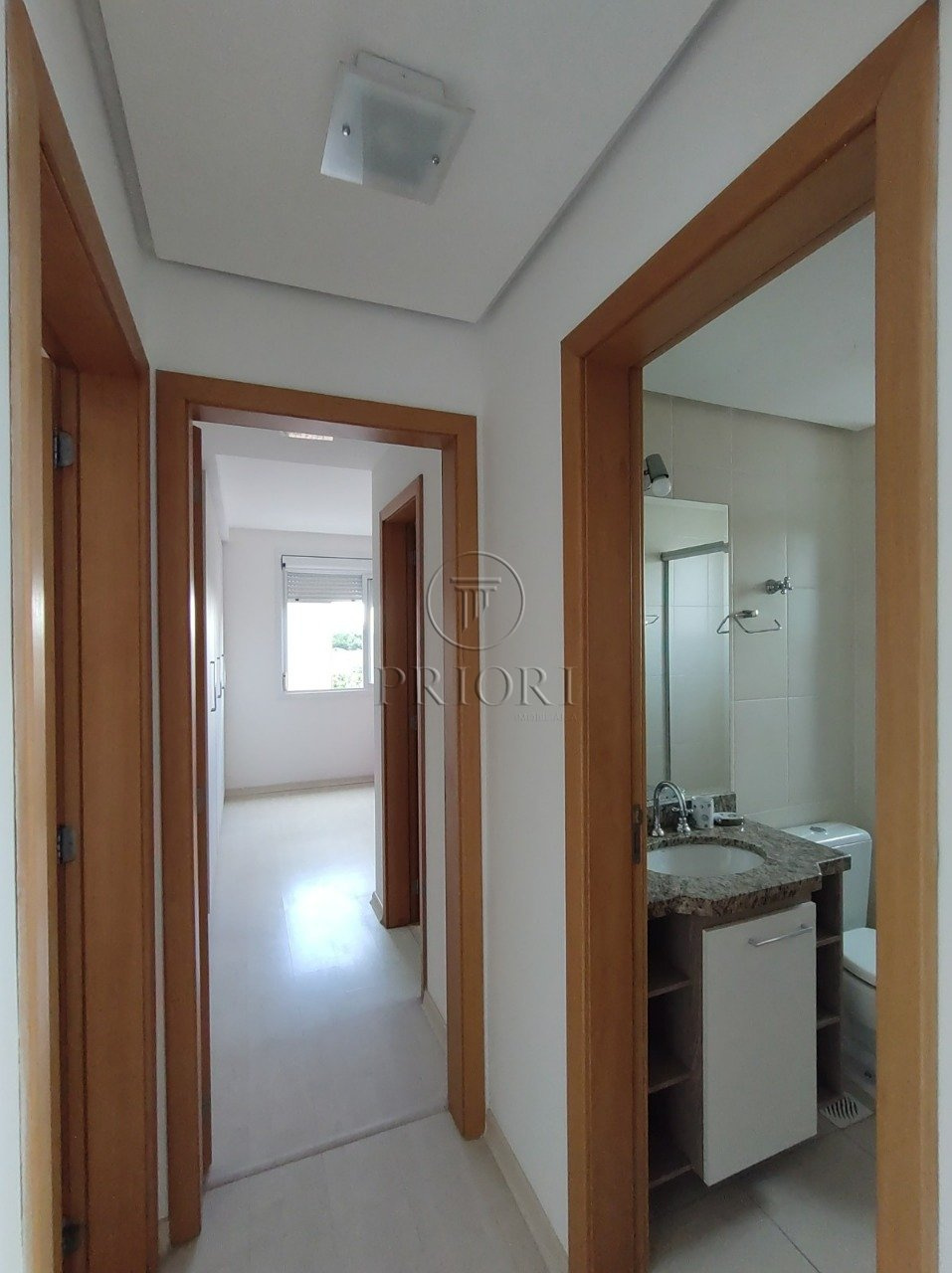 Excelente apartamento em andar alto com linda vista, composto por dois amplos dormitórios com ar condicionado, camas e roupeiros, sendo um suíte, banheiro social, living espaçoso, cozinha ampla com móveis planejados e churrasqueira, área de serviço integrada com aquecedor a gás e tanque, além de uma vaga de garagem privativa.