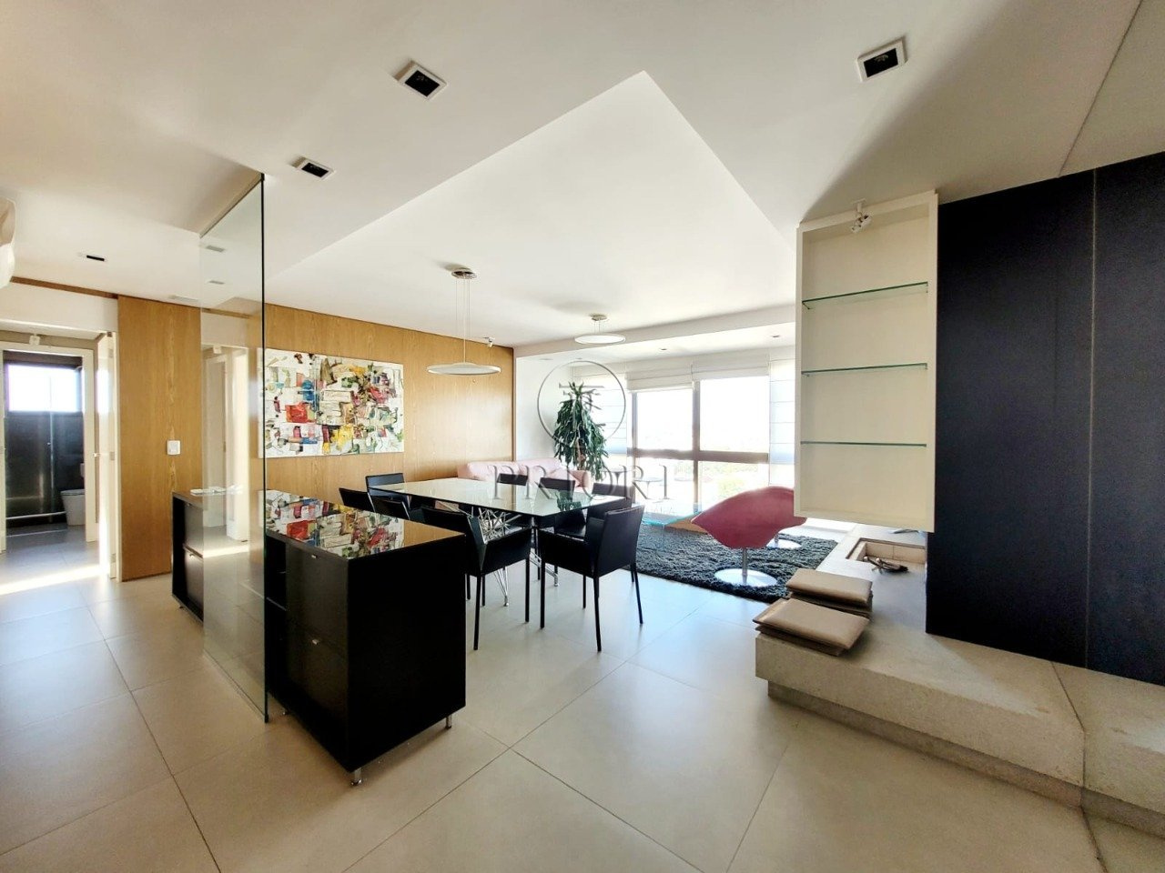O imóvel dispõe de três dormitórios sendo um com suíte, bem amplos e ensolarados e totalmente climatizados, piso laminado. Living para dois ambientes bem definidos, aberturas grandes proporcionando maior luminosidade, total privacidade e silêncio, vista perene e definitiva, telas de proteção, lareira, sistema de som diferenciado, piso em porcelanato. Cozinha americana com total integração ao living, churrasqueira privativa, montada e equipada com armários planejados sob medida e os demais eletrodomésticos necessários. Área de serviço independente com lavadora/secadora de roupas e banheiro auxiliar.